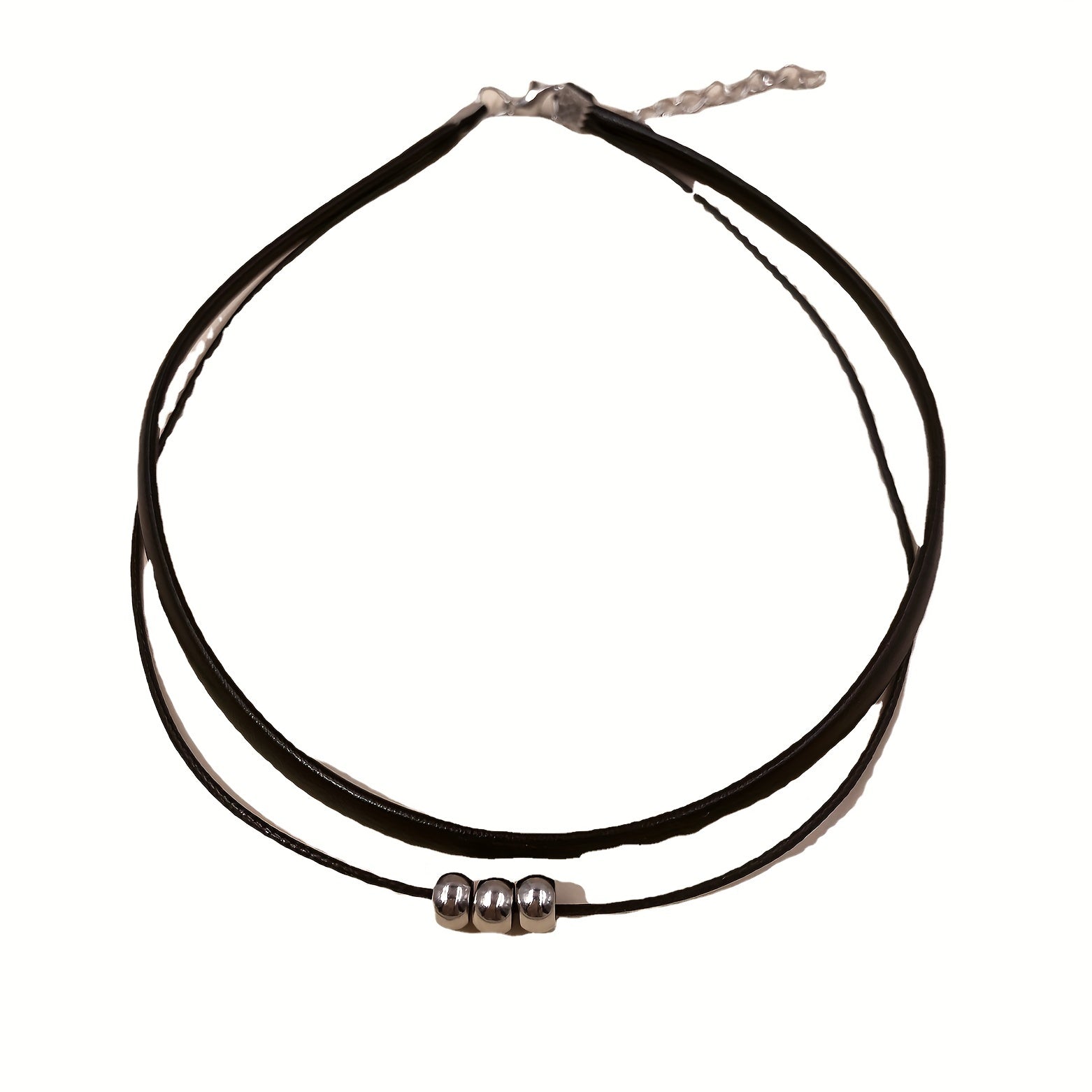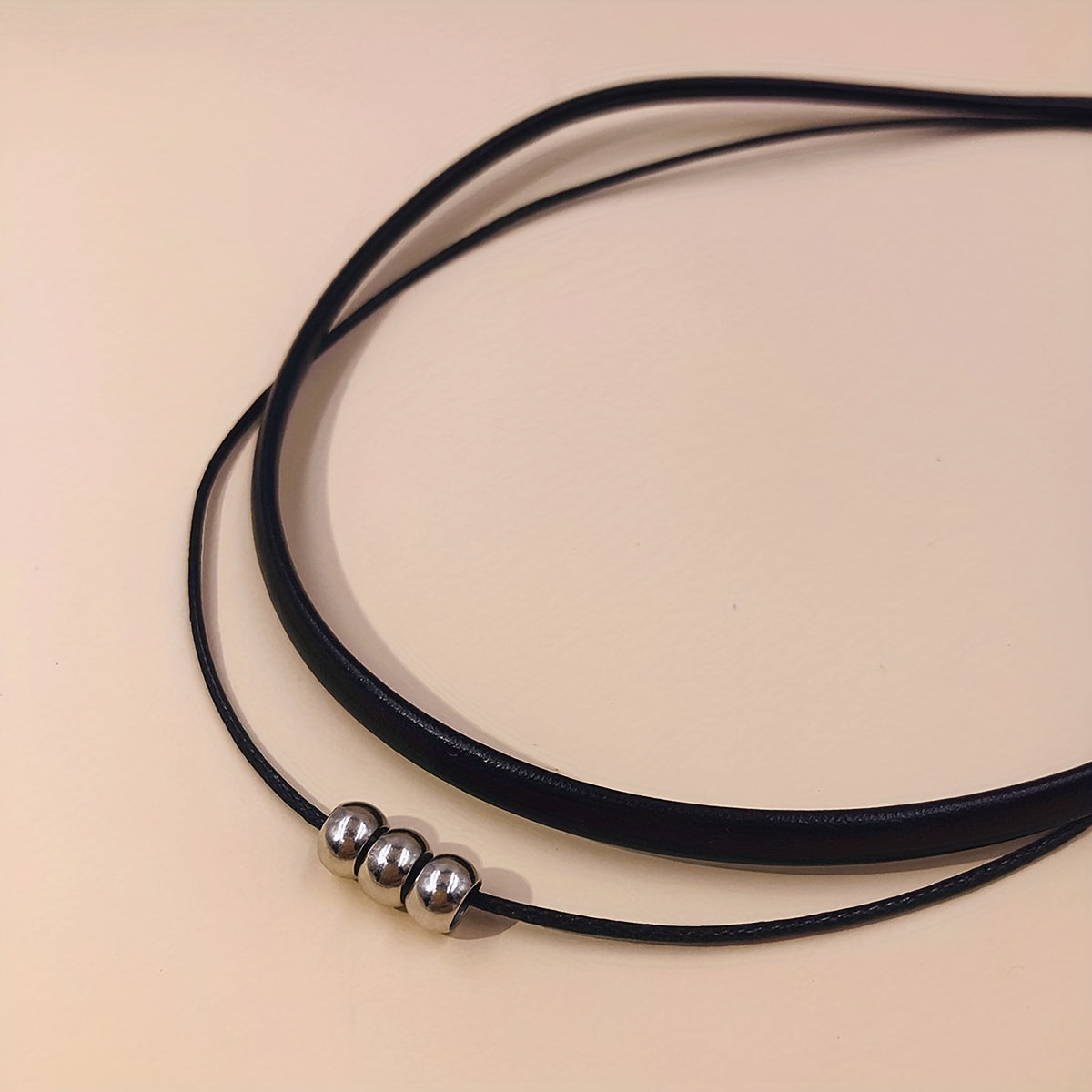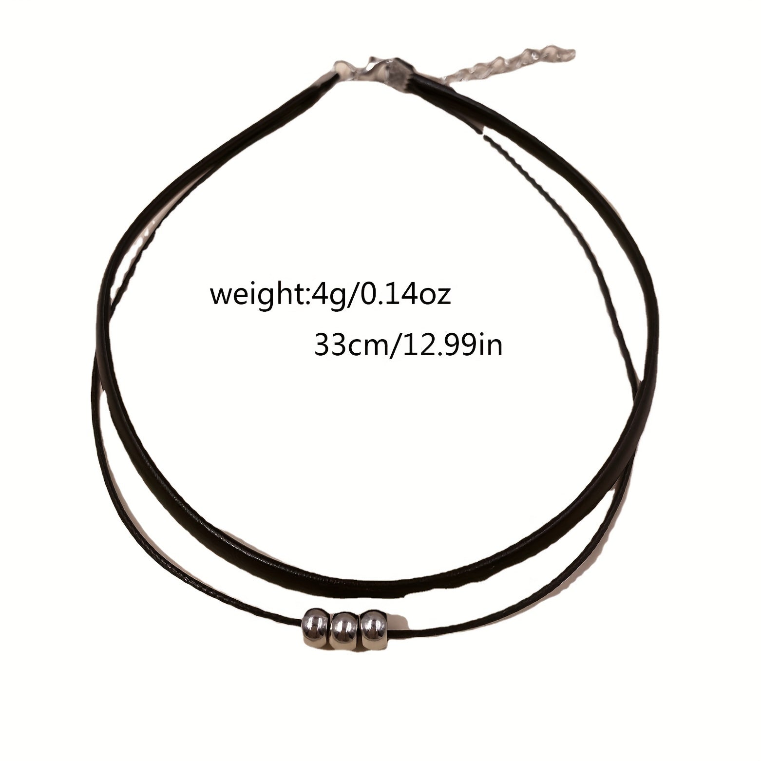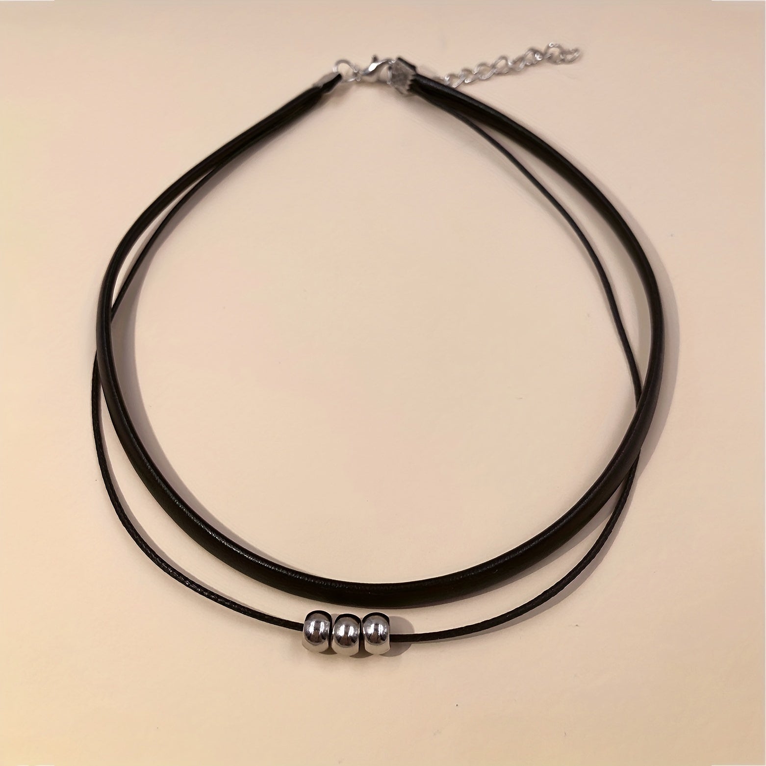 Elevate your style with this double layer choker necklace featuring a minimalist design. Made from PU leather and wax rope with silvery beads, this necklace adds a touch of sophistication to any outfit.