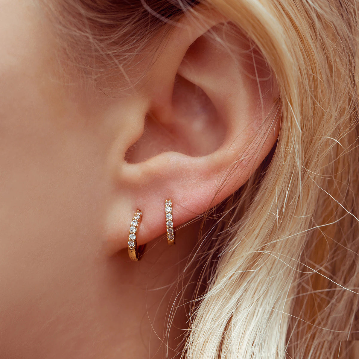 Elegant and classic, these huggie earrings feature zircon stones. Perfect for any occasion.