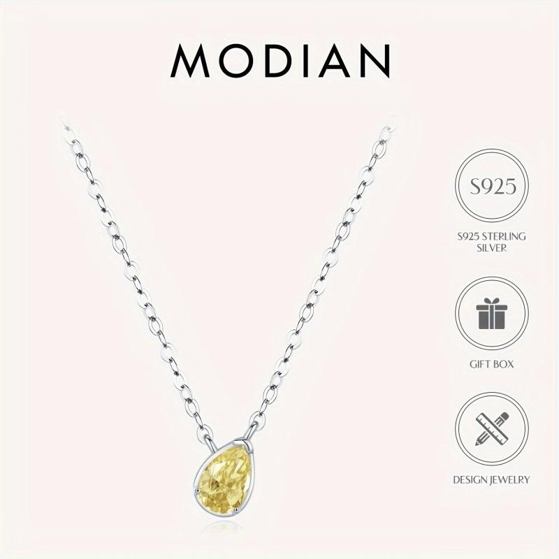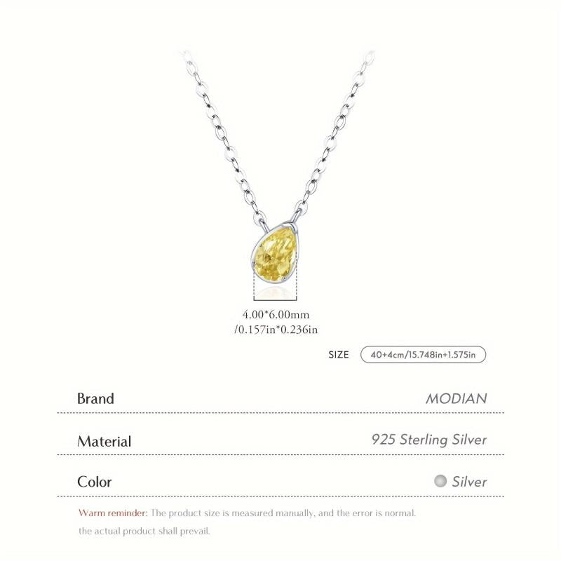 Elegant MODIAN 925 sterling silver necklace featuring a sparkling water drop zirconia pendant. Perfect for daily wear and special occasions like weddings. This exquisite piece is a stunning addition to any jewelry collection.