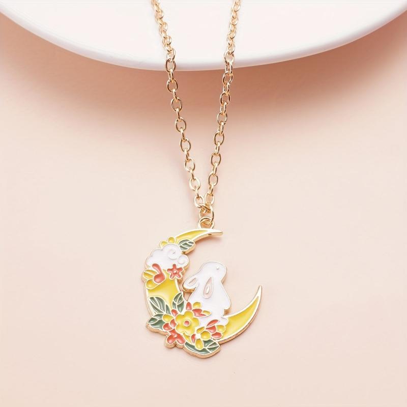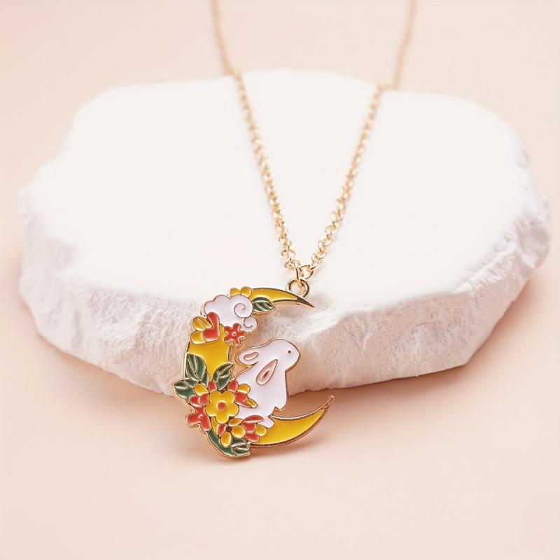 This Moon Rabbit Pendant Necklace is a stylish and elegant accessory crafted from high-quality zinc alloy. Perfect for parties or as a gift for someone special. The adjustable length makes it suitable for all.