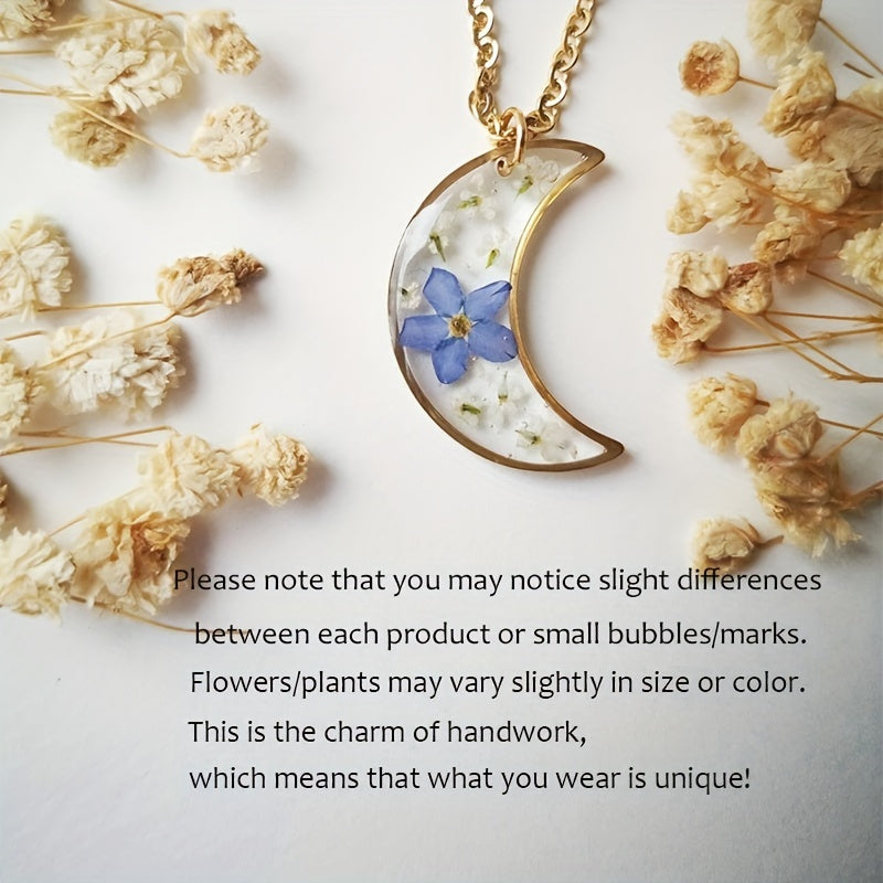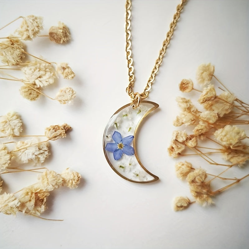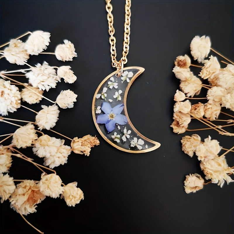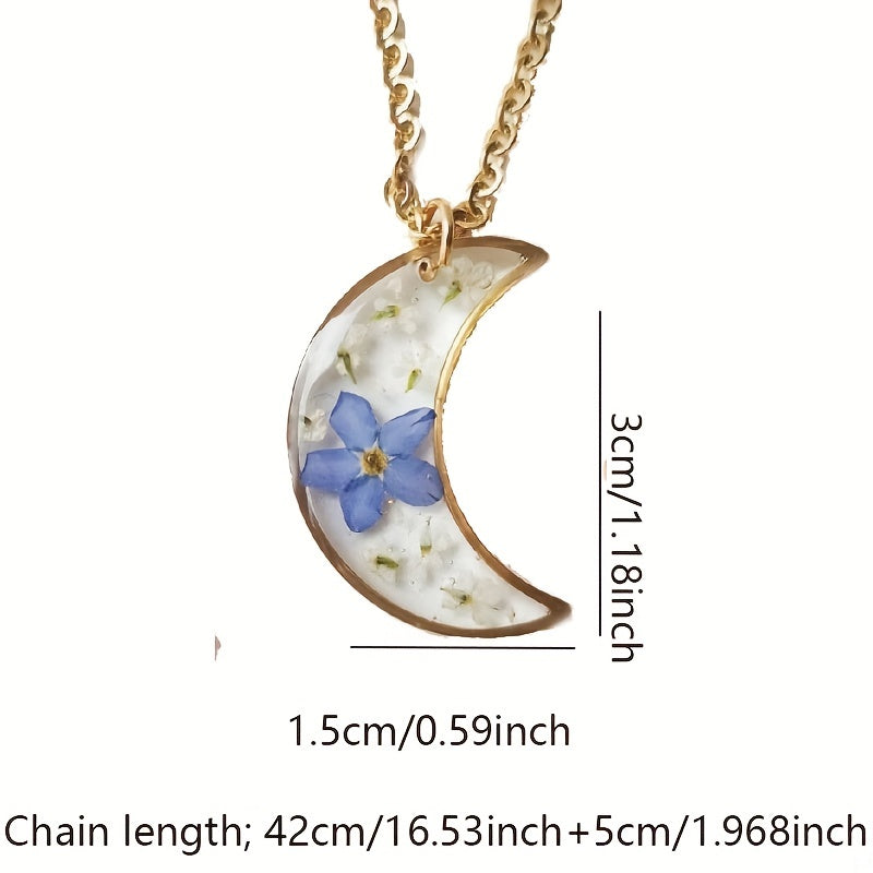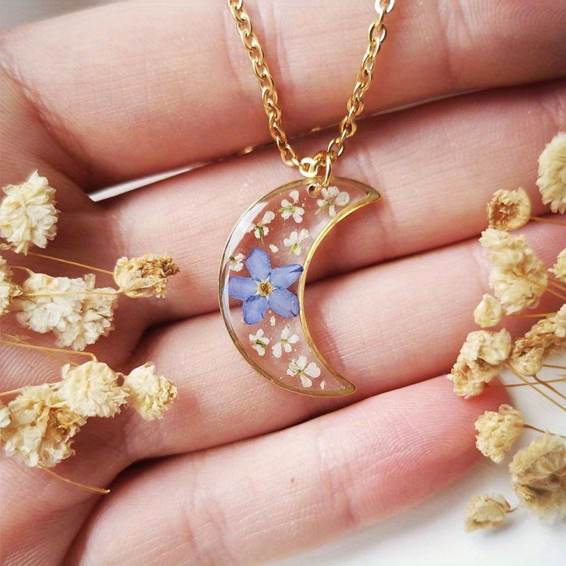 This elegant necklace features a moon-shaped pendant with a delicate flower design, making it a perfect gift for birthdays or holidays.