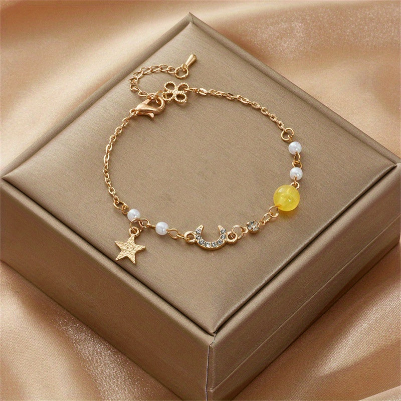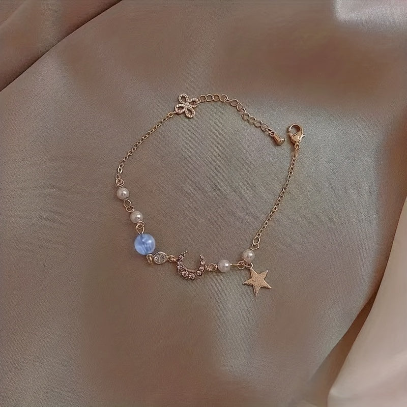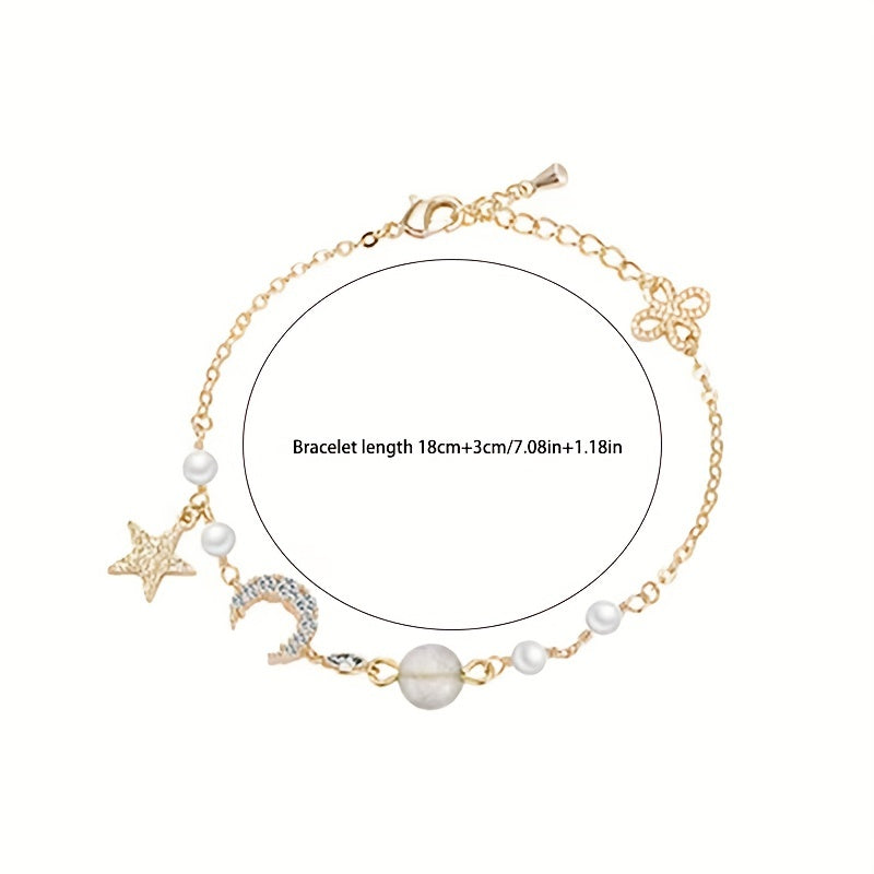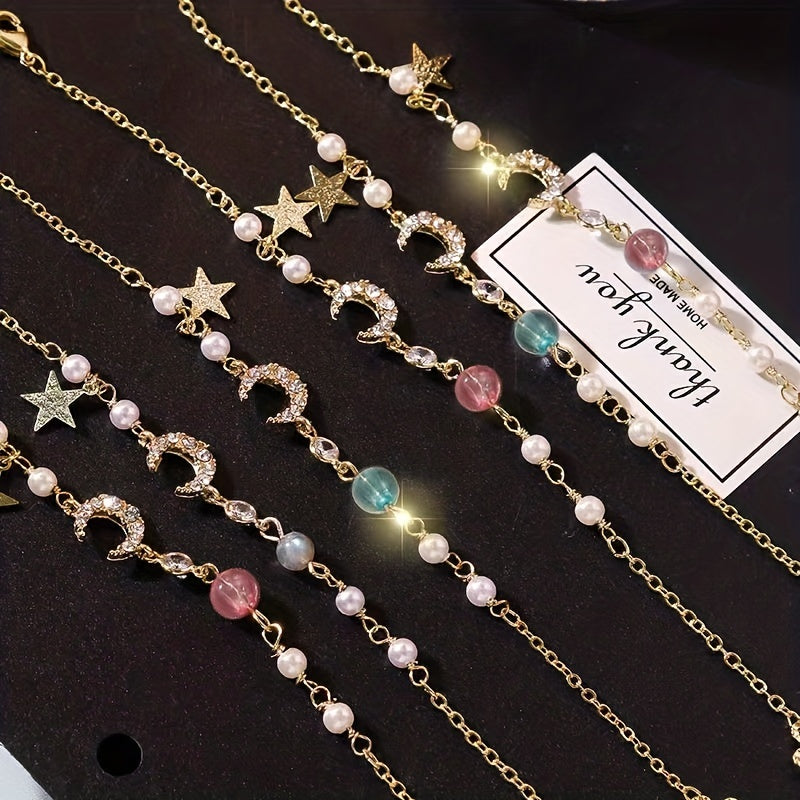 This anklet features moon and star shape beads on a thin chain, with adjustable design for a comfortable fit. Perfect for adding a touch of celestial charm to your summer look.
