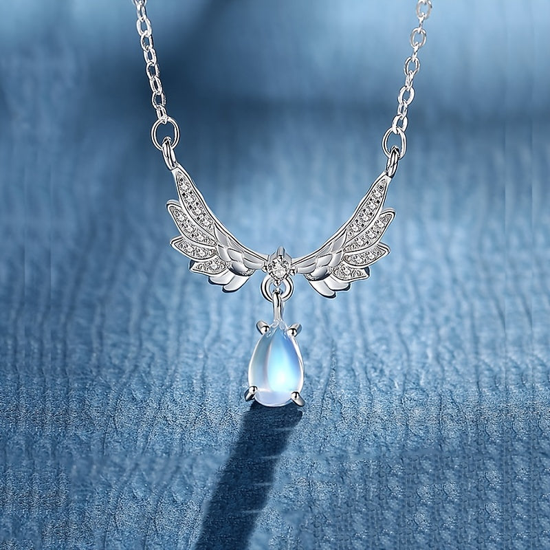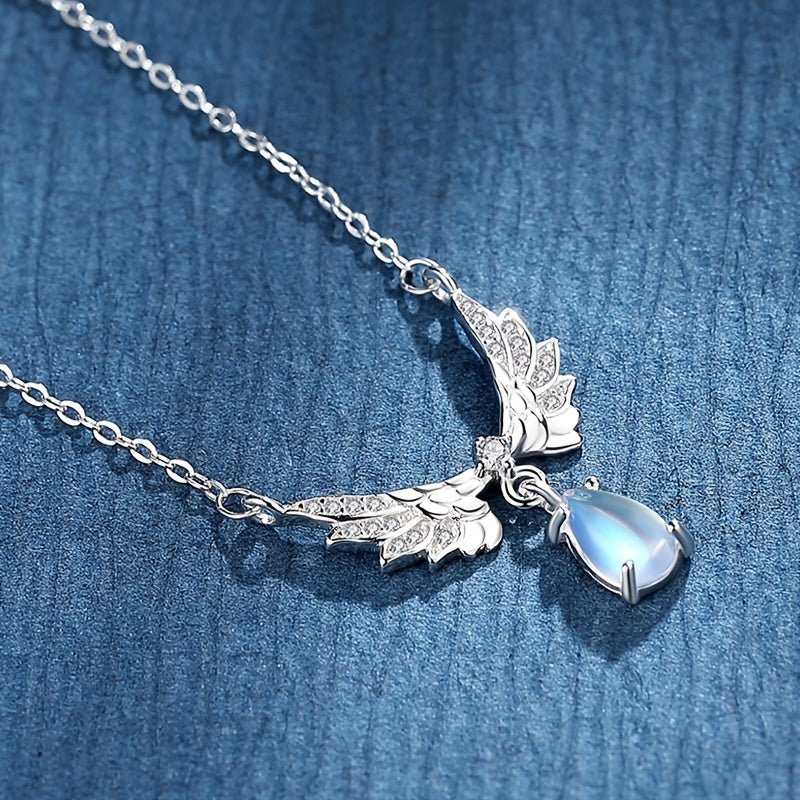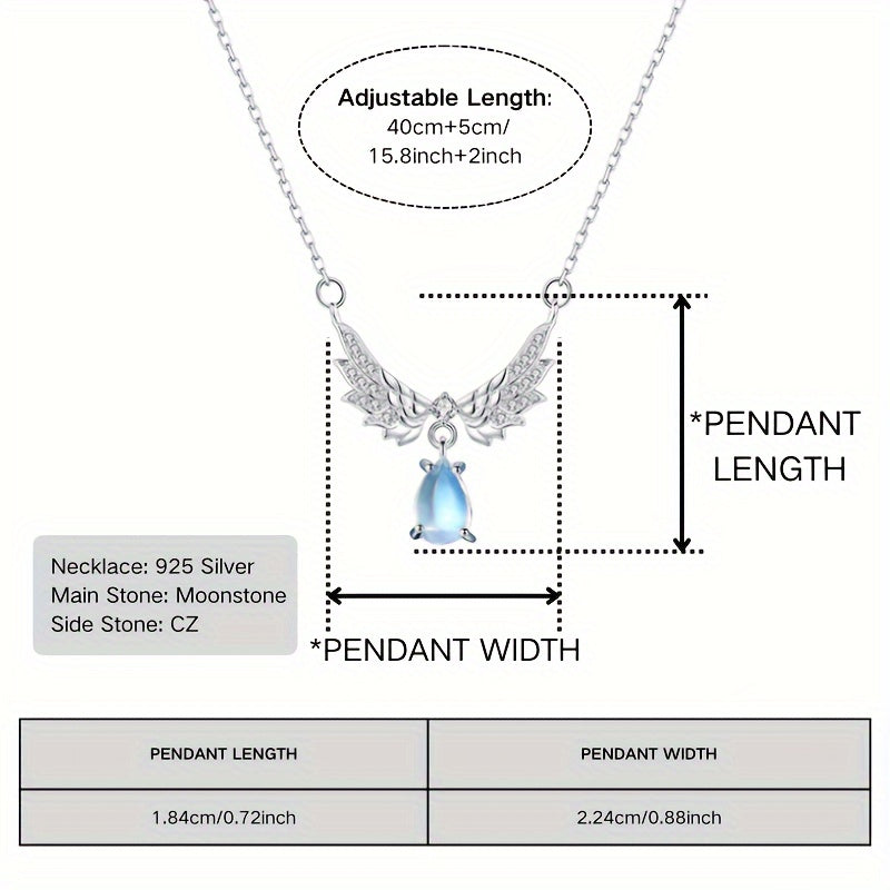 This stunning necklace features a moonstone angel wings pendant crafted in S925 sterling silver. It makes a perfect birthday gift for someone special.