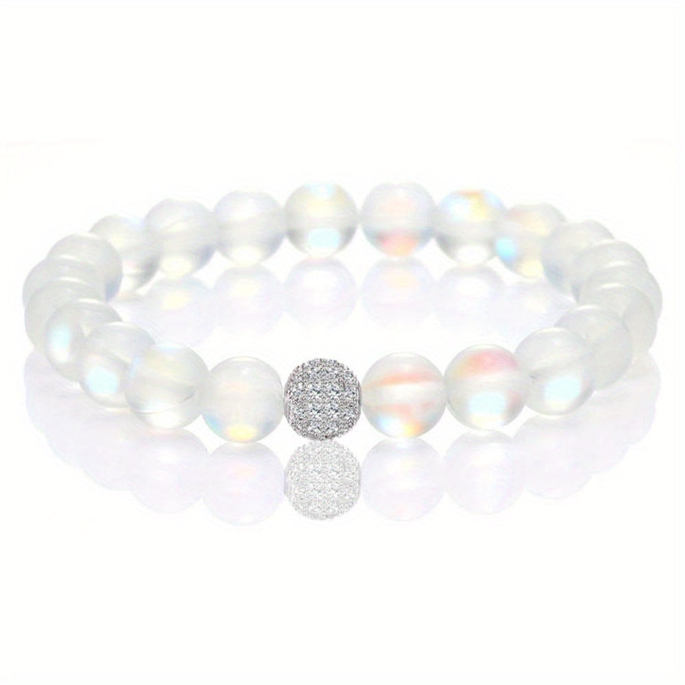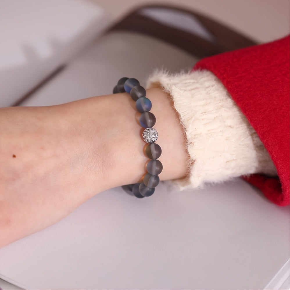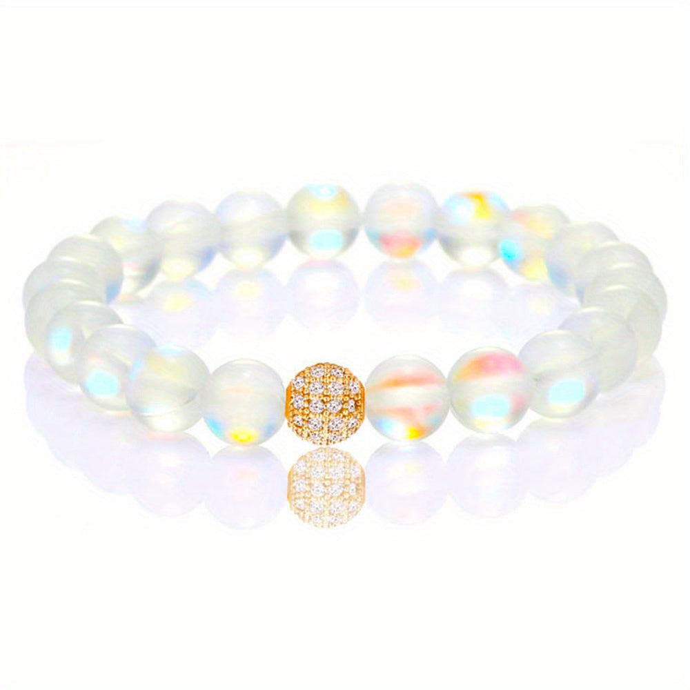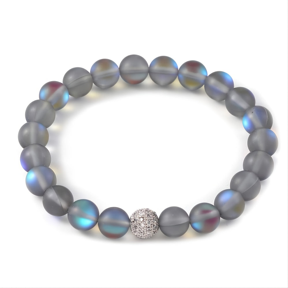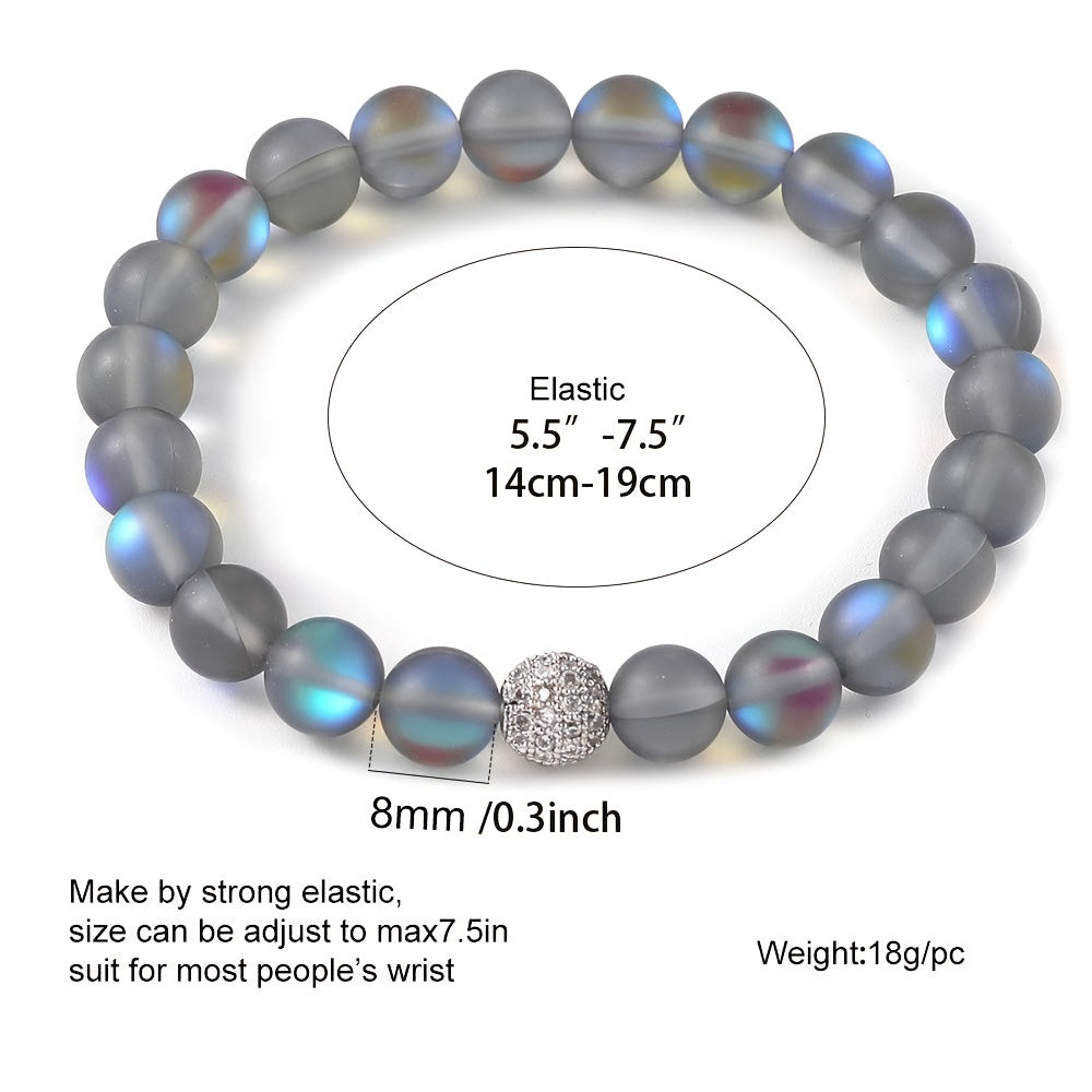 Elegant 8 mm moonstone beaded stretch bracelet with crystal beads, perfect for ladies. Ideal for everyday wear or as a thoughtful gift.