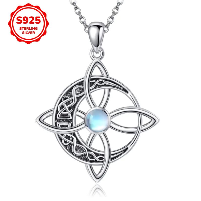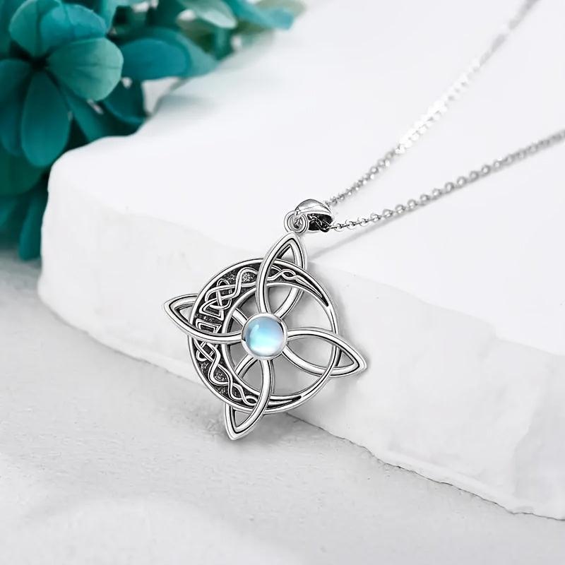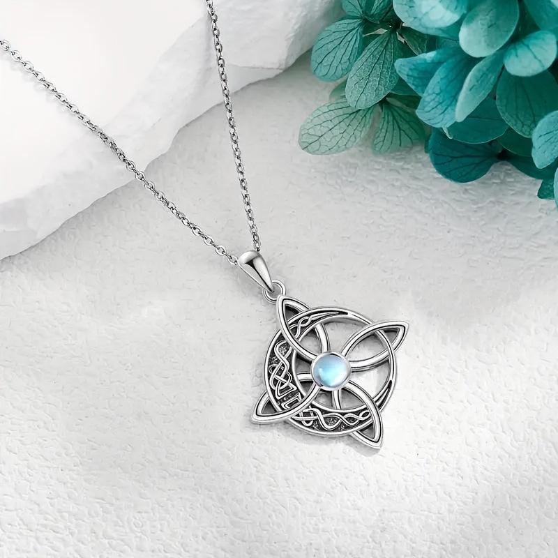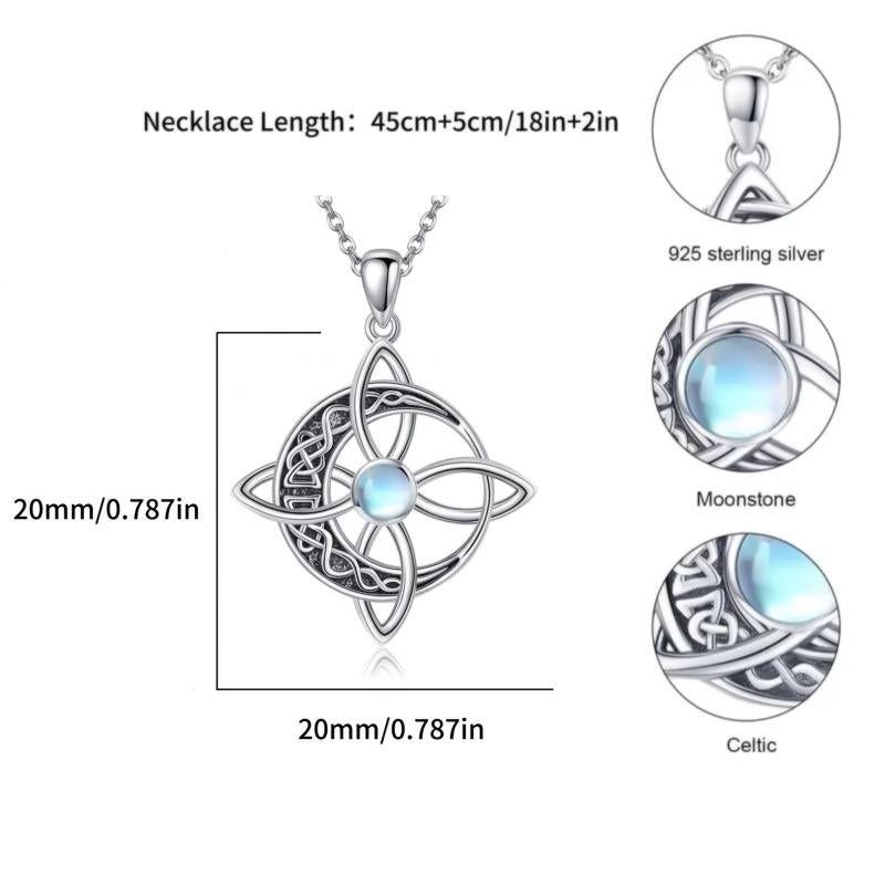 This stunning pendant necklace features a moonstone set in a Celtic knot infinity design. Made of hypoallergenic S925 silver, it weighs 4g and exudes a retro charm.
