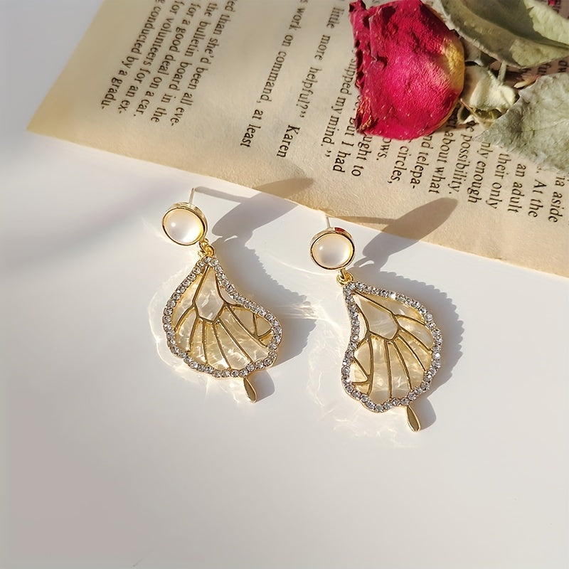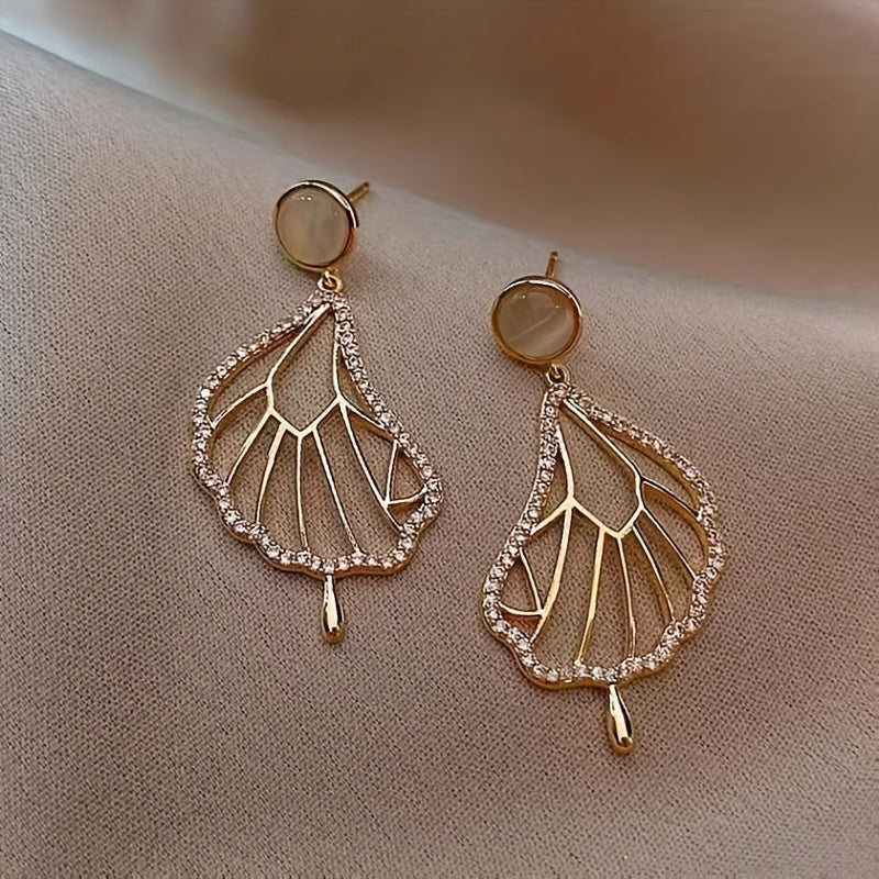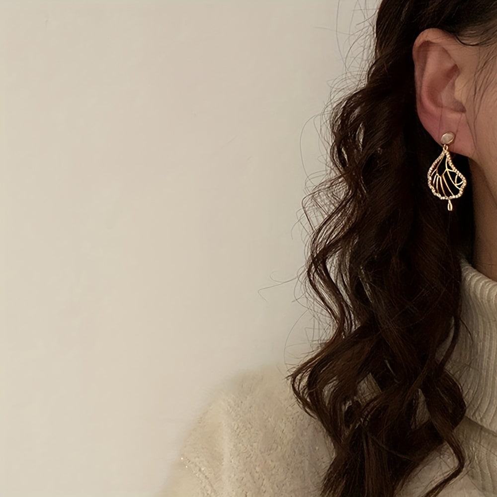 These elegant earrings feature hollow leaf round moonstone decoration, made of zinc alloy with a silver plated finish. Perfect for daily casual wear.