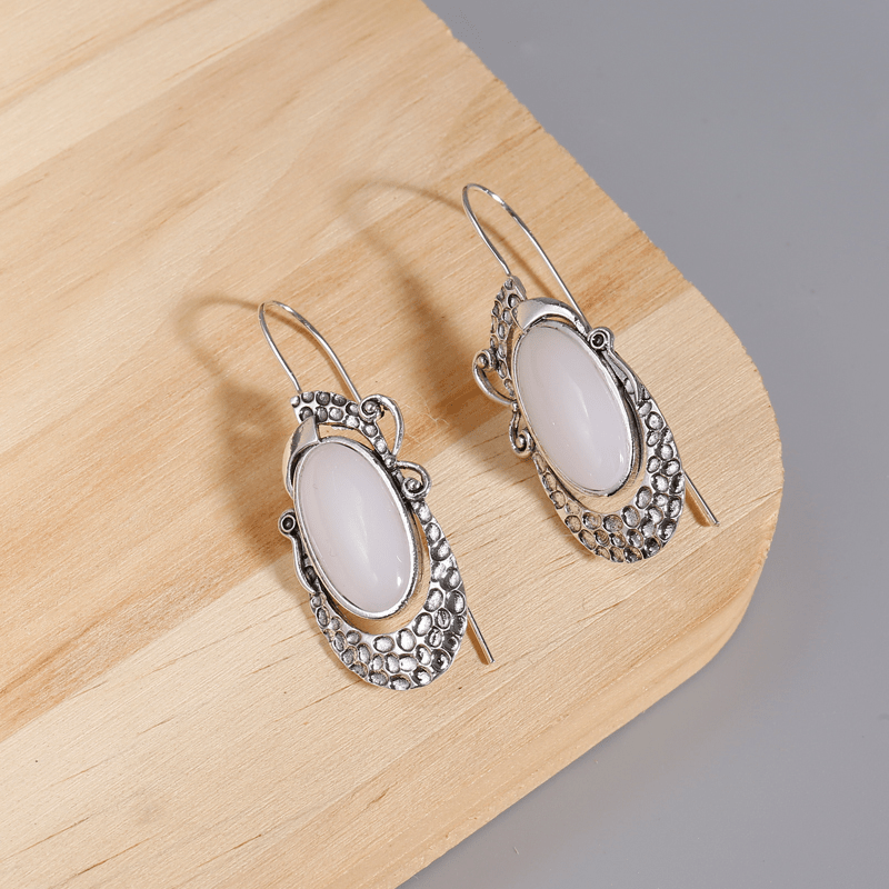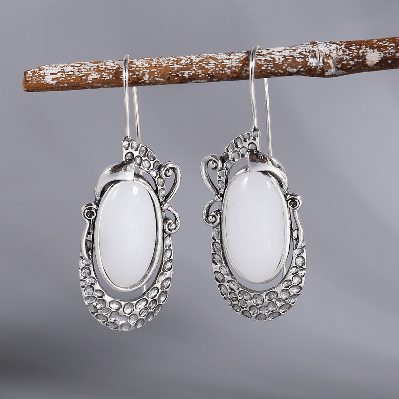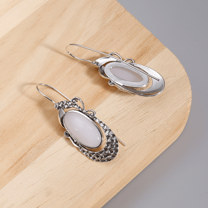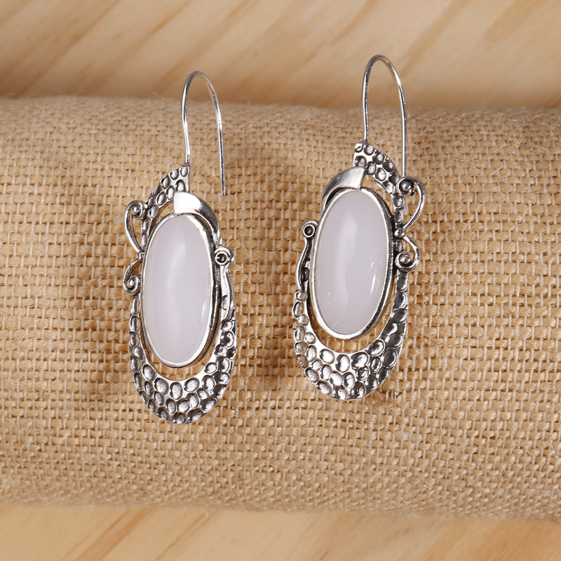 Elegant oval moonstone hook earrings crafted in silver for women and girls. Perfect for weddings and special occasions.