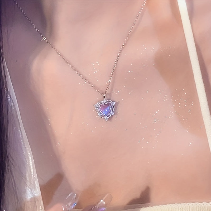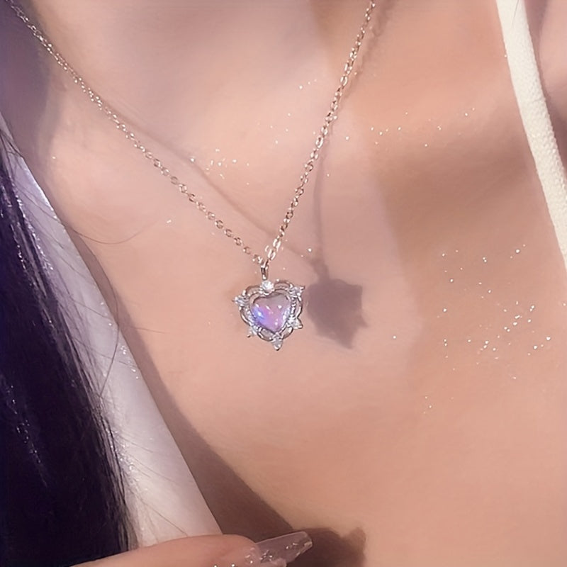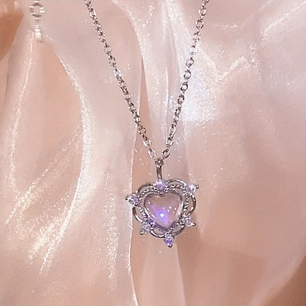 Elegant moonstone pendant necklace with rhinestone accents, perfect for parties or dates. It makes a thoughtful gift for a loved one.