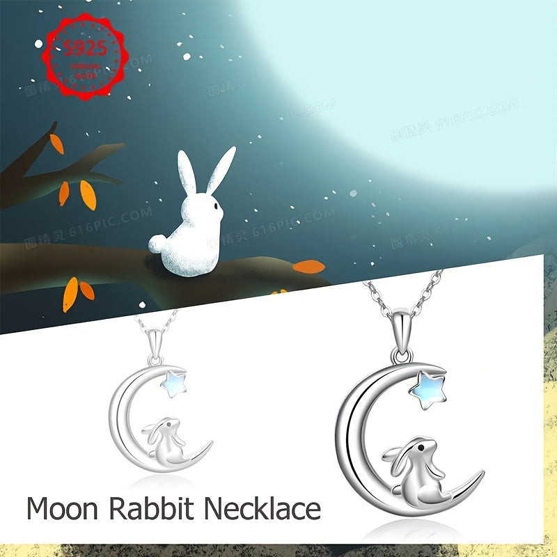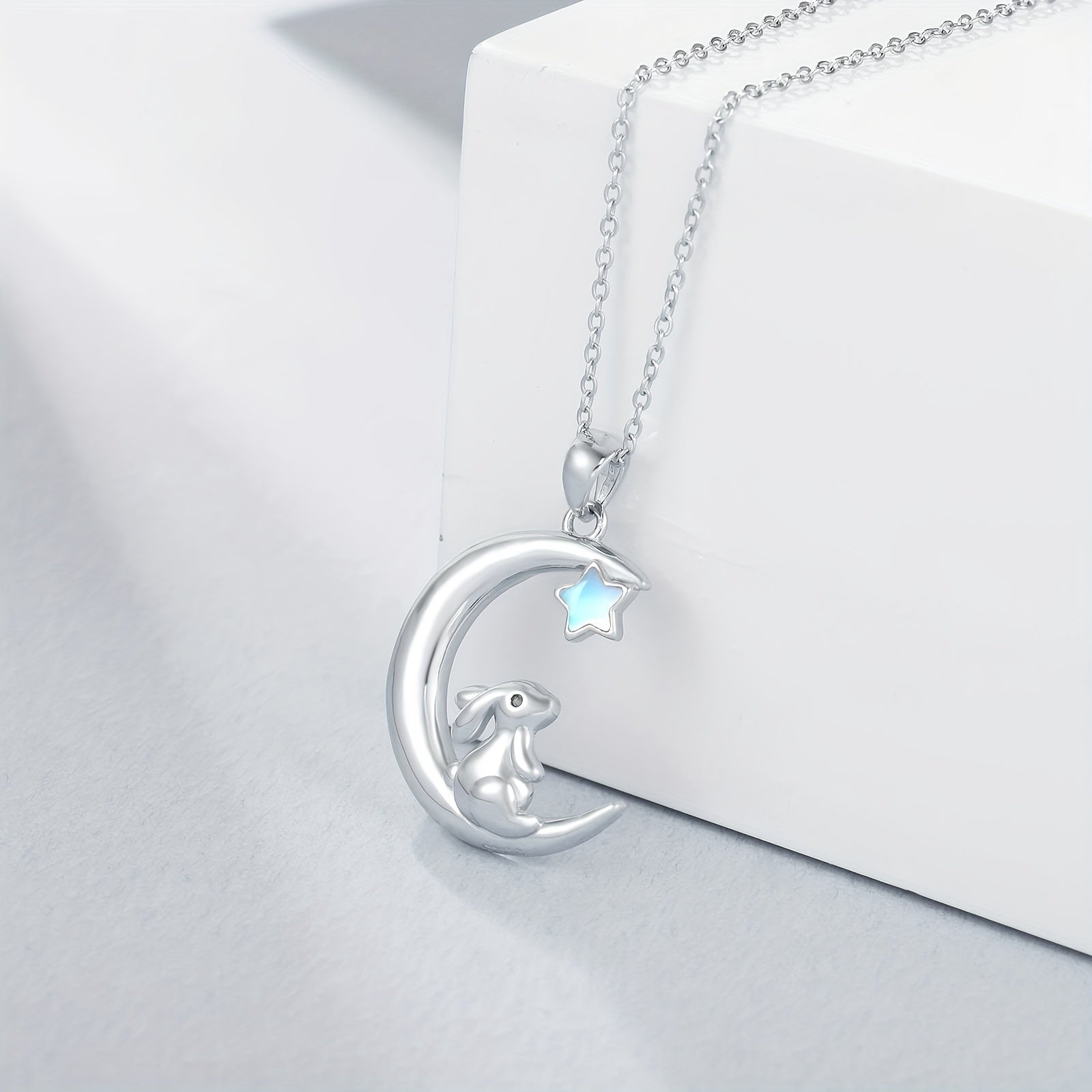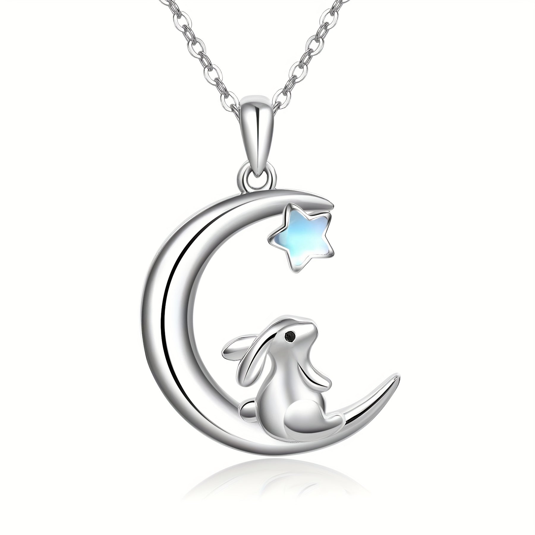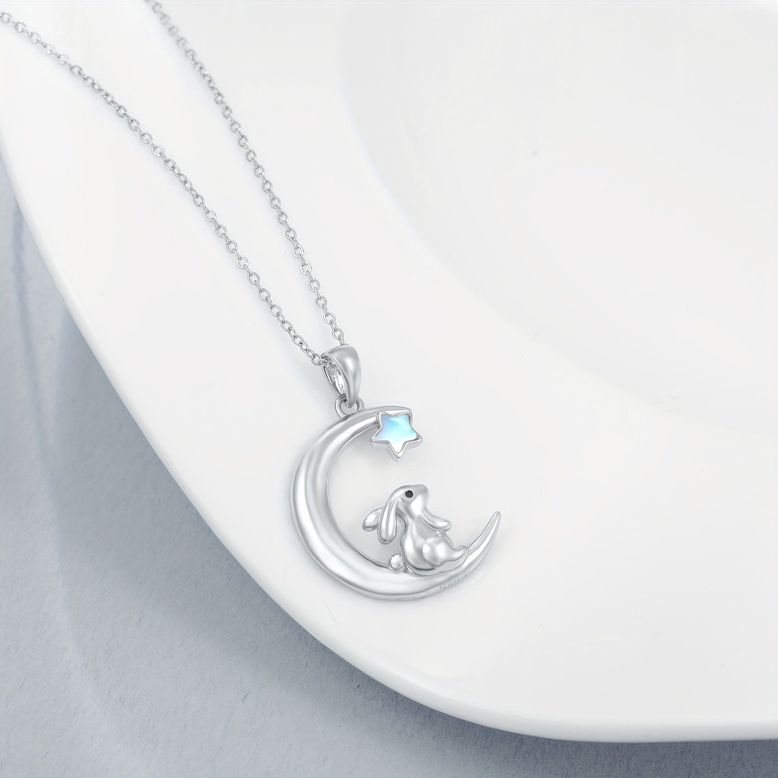 Elegant moonstone rabbit necklace crafted in sterling silver. A perfect gift for women and moms who love bunnies.