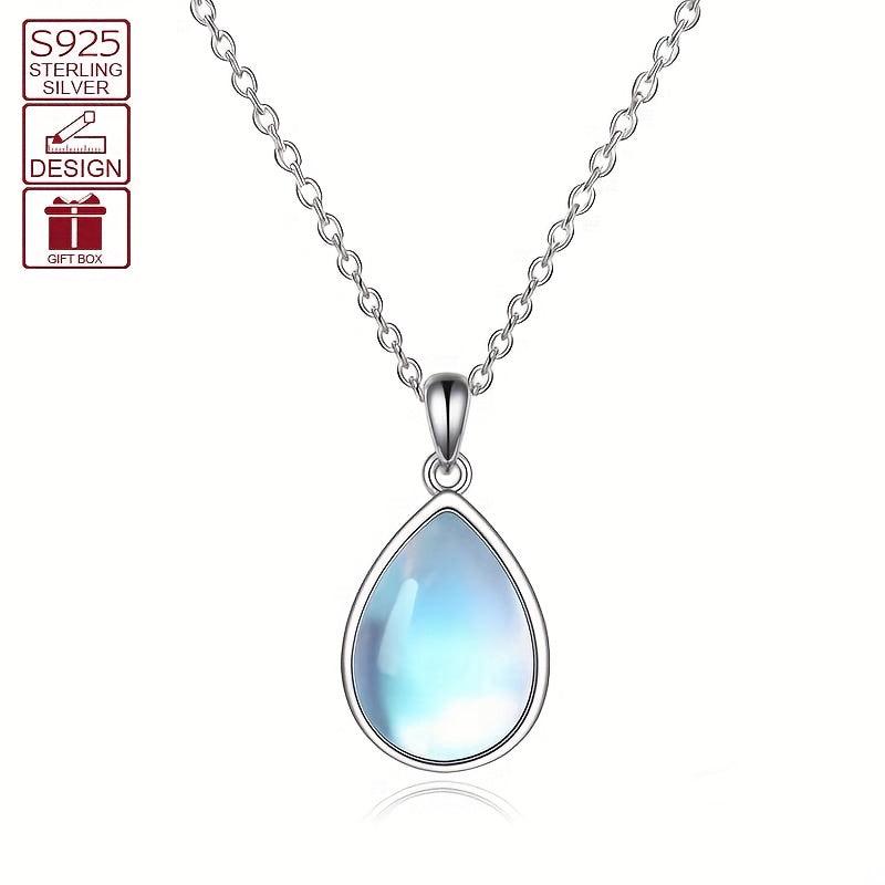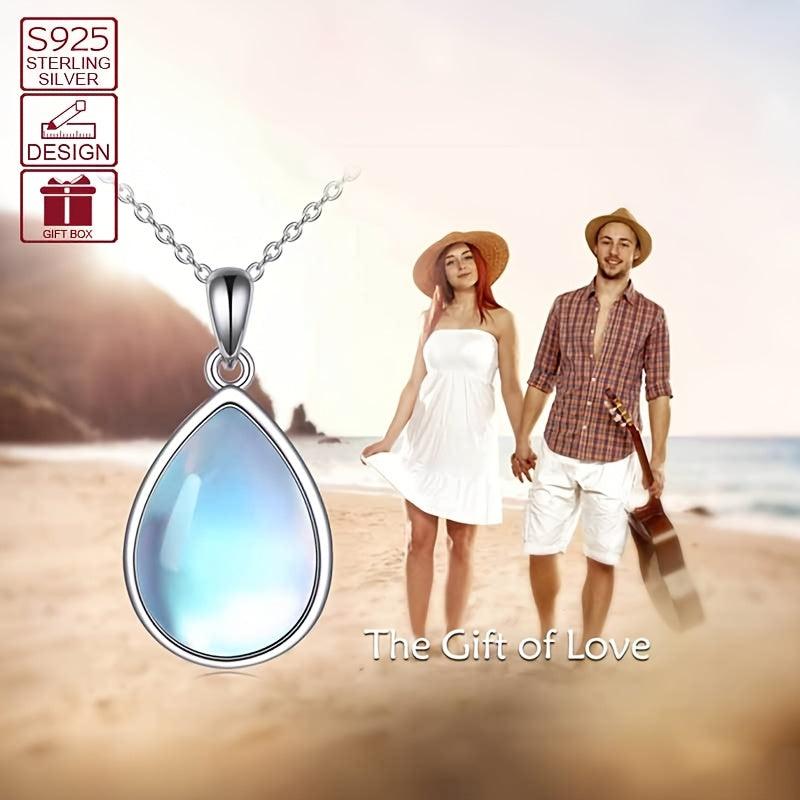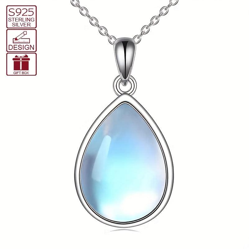 Elegant and hypoallergenic necklace featuring a teardrop moonstone pendant, perfect for casual wear or gifting on special occasions.