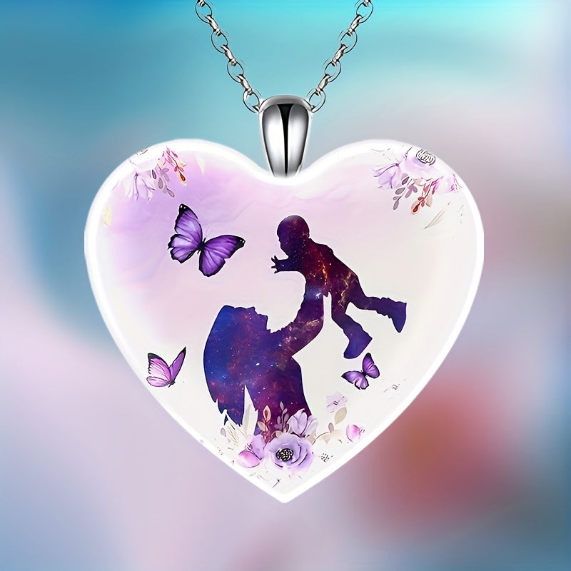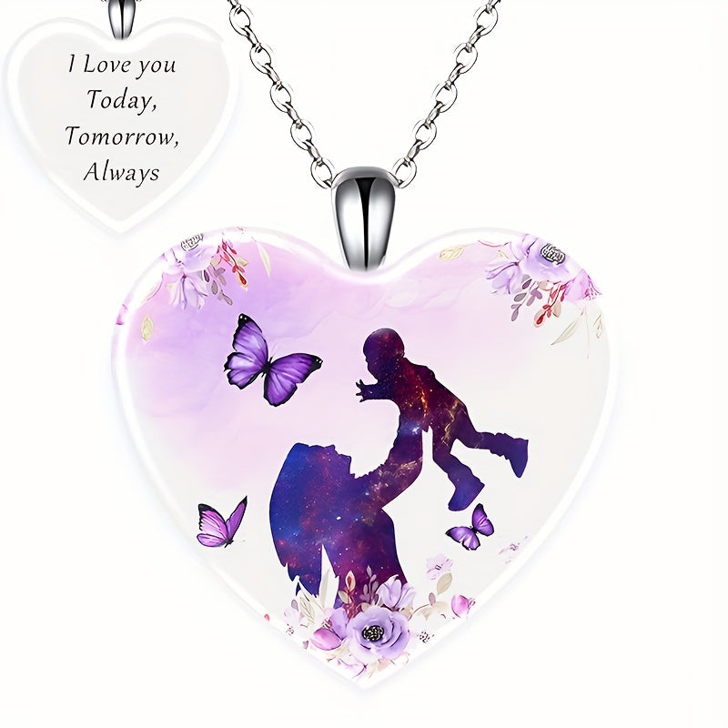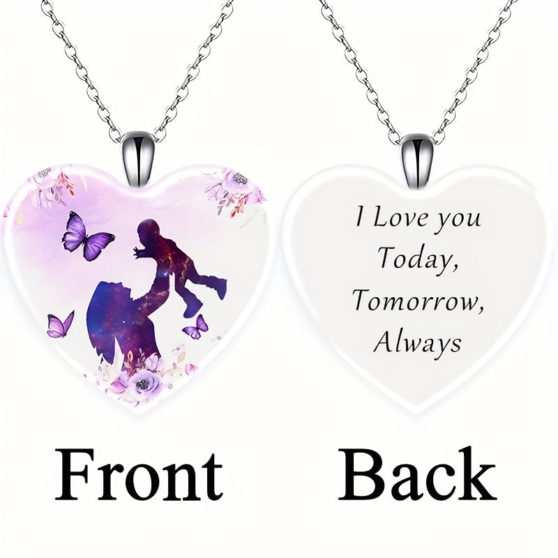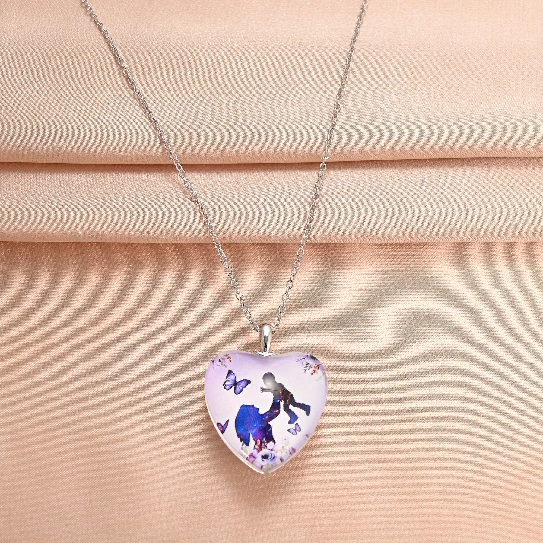 Express your love for mom with this beautiful heart pendant necklace. The design features a mother and child embracing, symbolizing the special bond between them. A perfect gift for Mother's birthday.