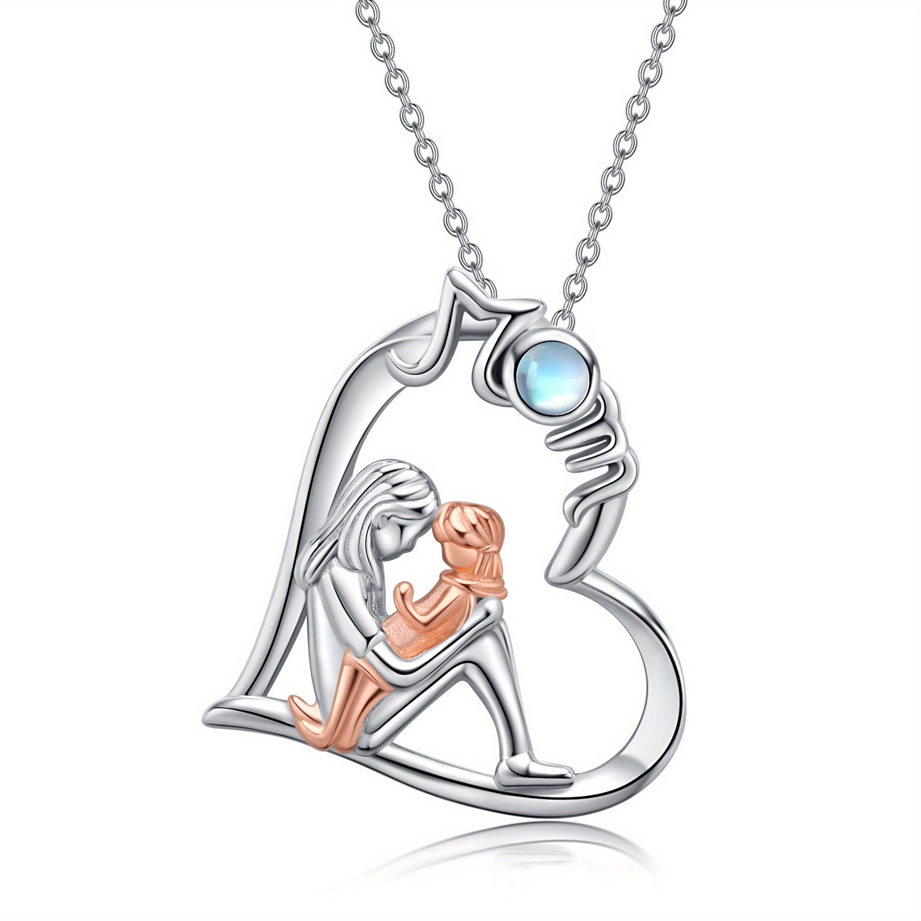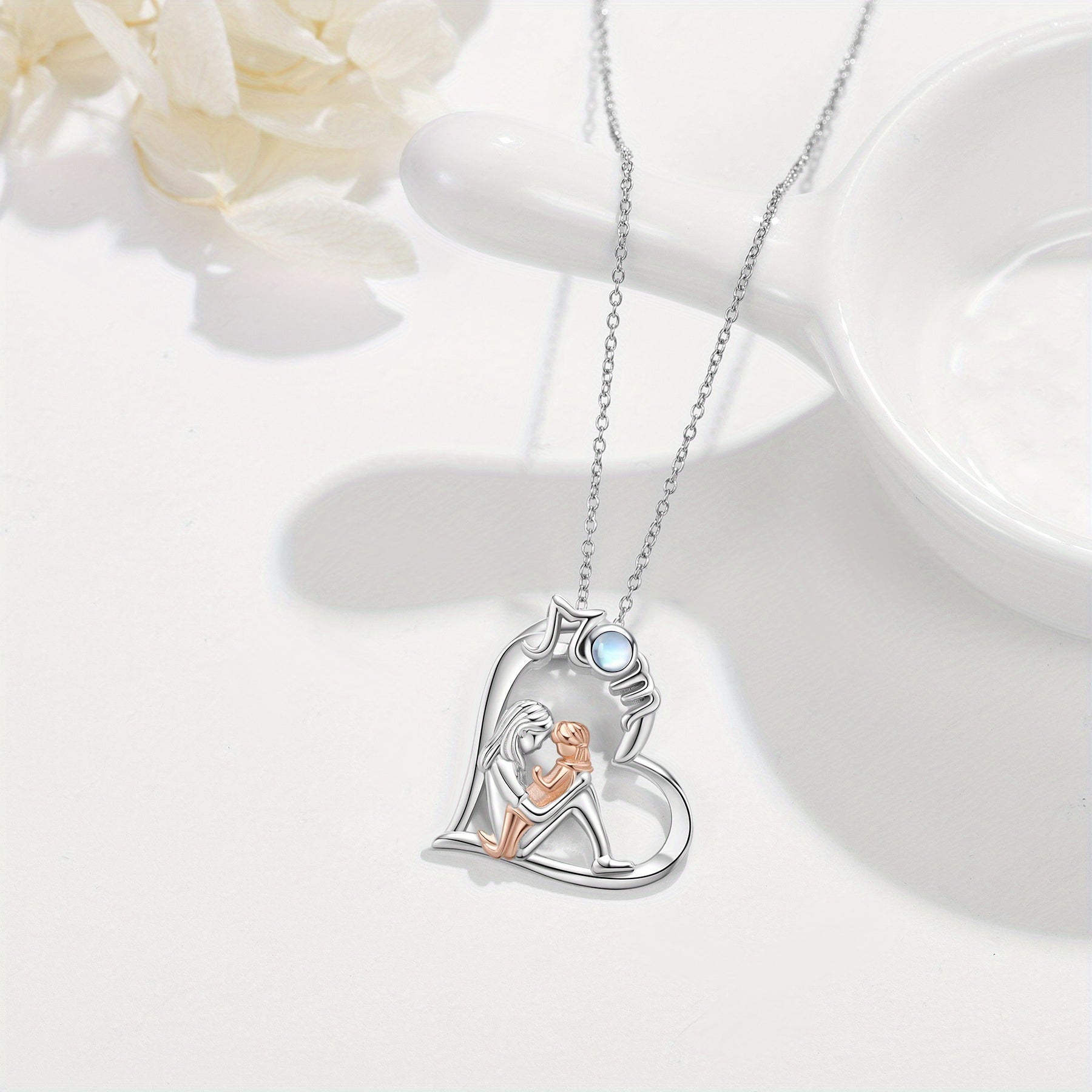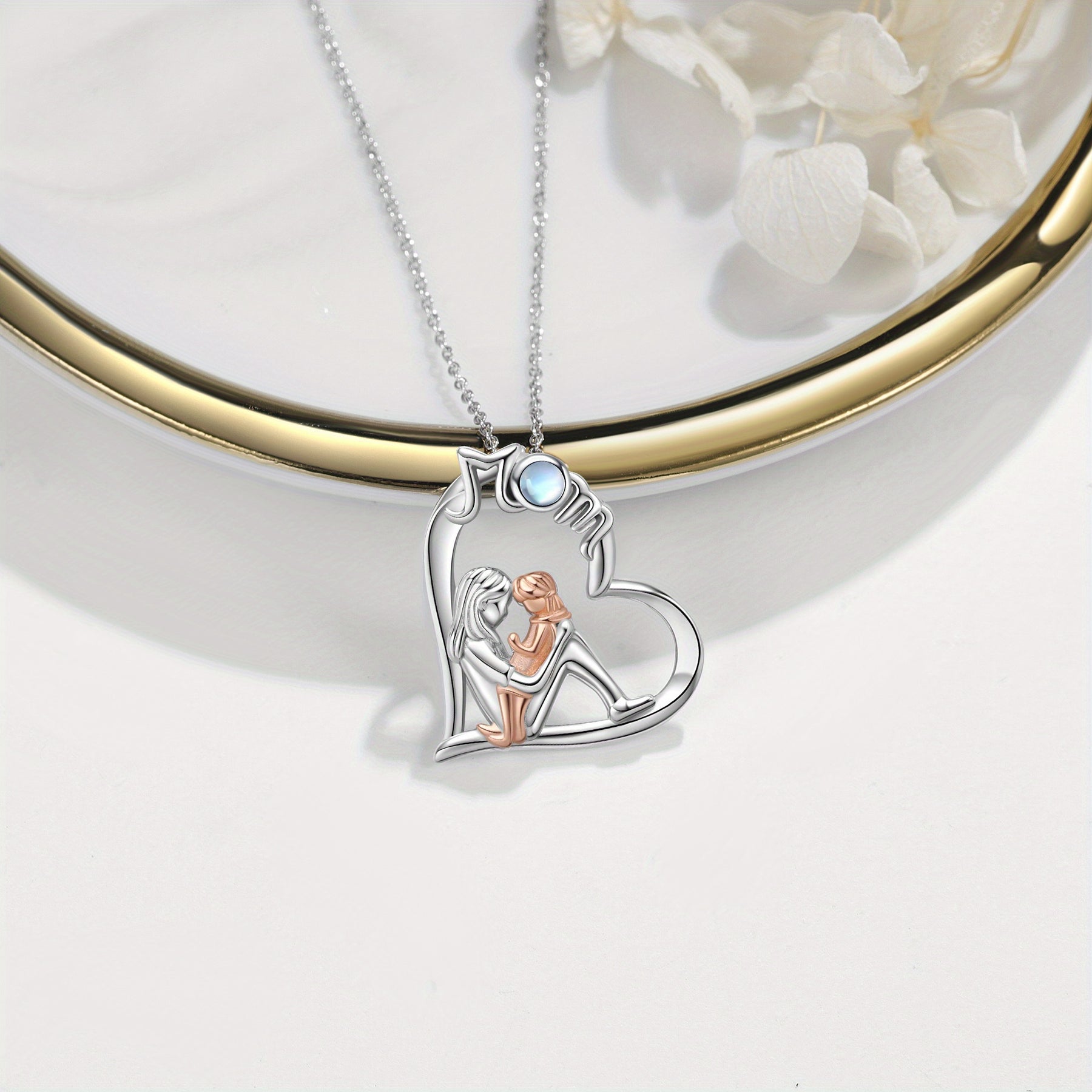 Beautifully crafted heart pendant necklace made of 925 sterling silver with synthetic moonstone, perfect for gifting on Valentine's Day or Mother's Day.