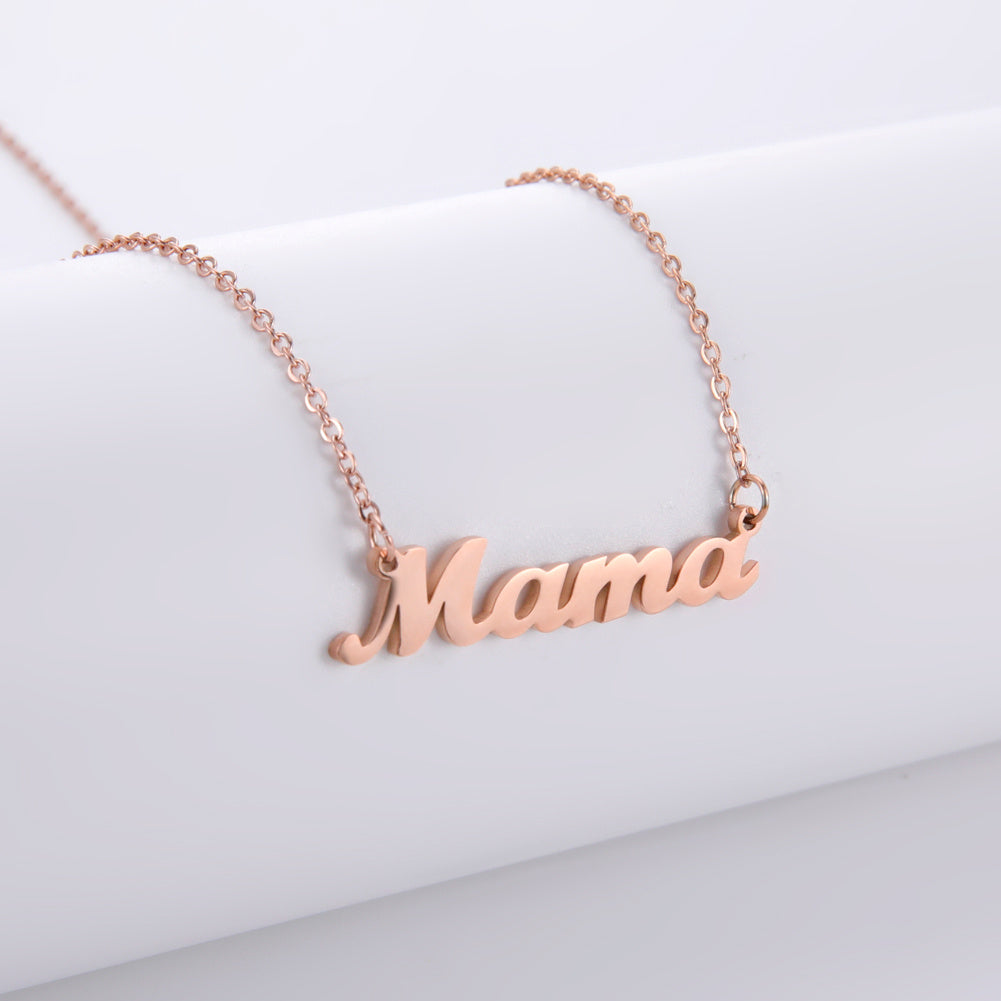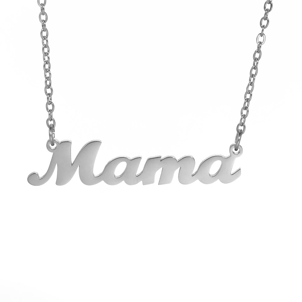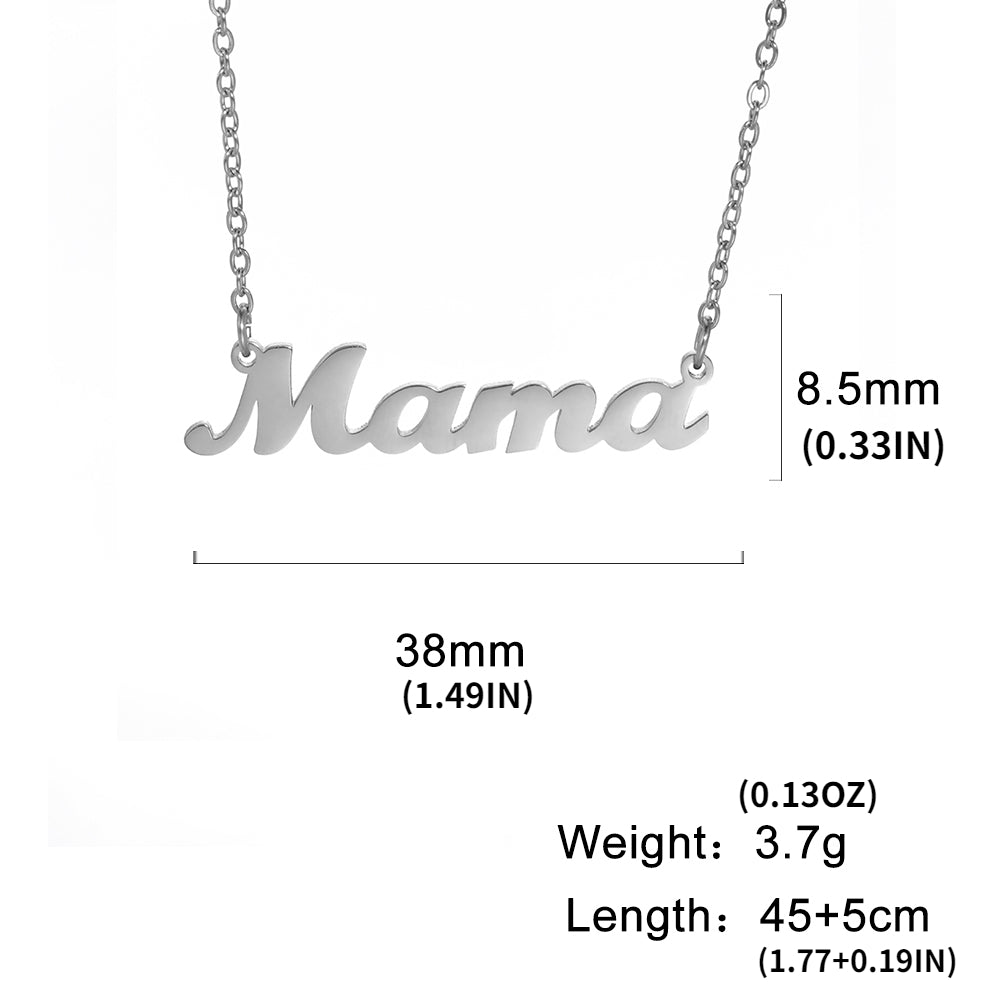 This stainless steel necklace features the word 'Mama' in a delicate and stylish design. A perfect gift for any mother or wife.