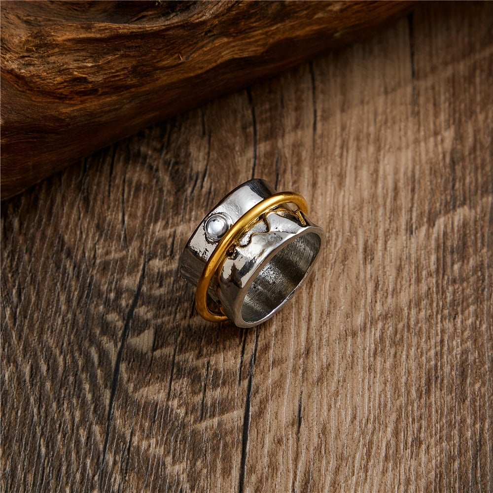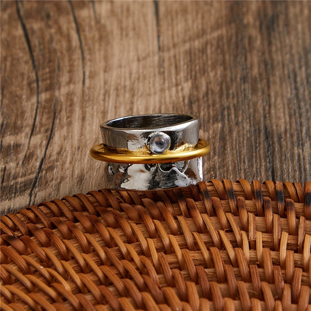 This unique band ring features a mountain pattern design with inlaid synthetic gems, perfect for adding personality to your look. It's ideal for boho style and party wear.