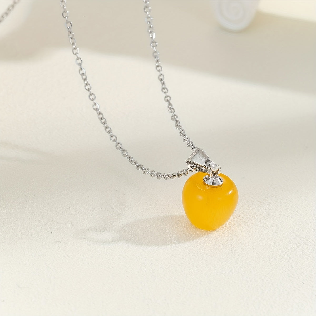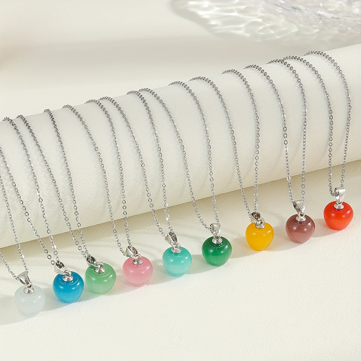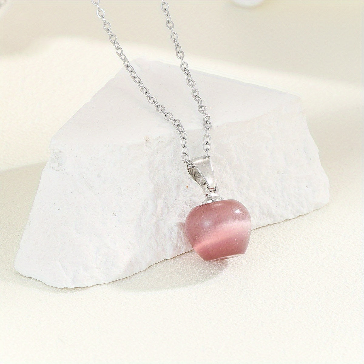 Stainless steel necklace featuring a small pendant with multicolor cat eye stone crystal. Ideal for women's jewelry collection.