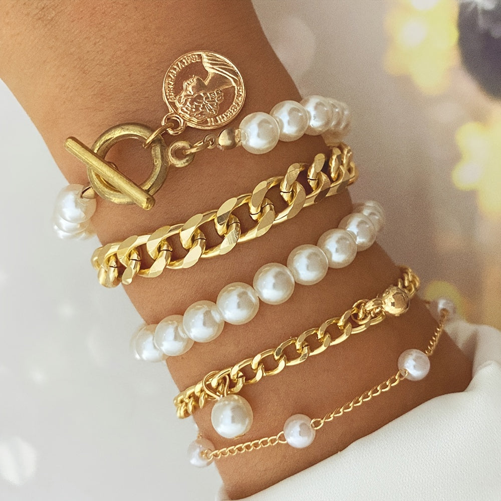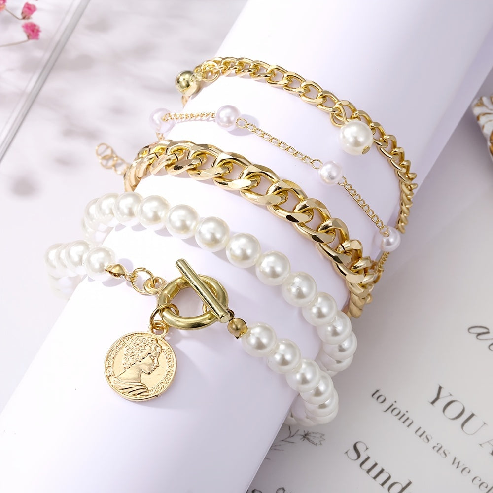 Multilayer Faux Pearls Chain Bracelet Set