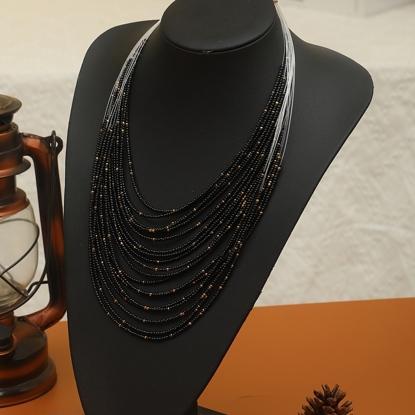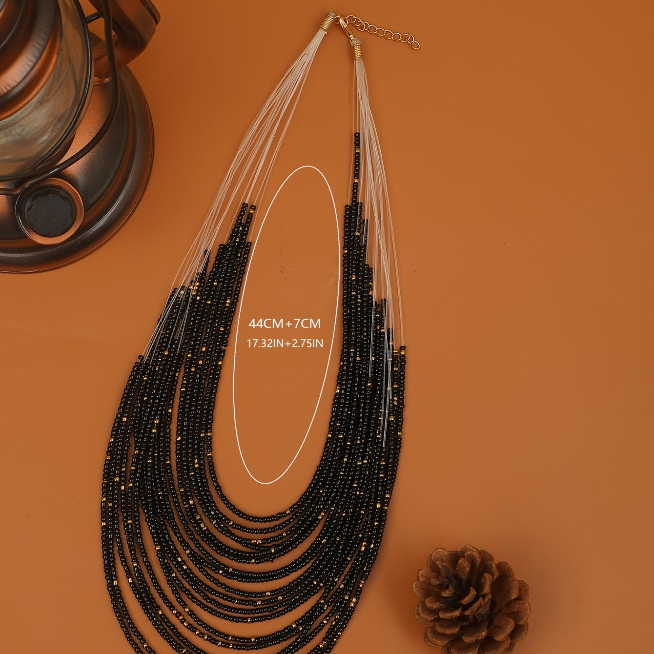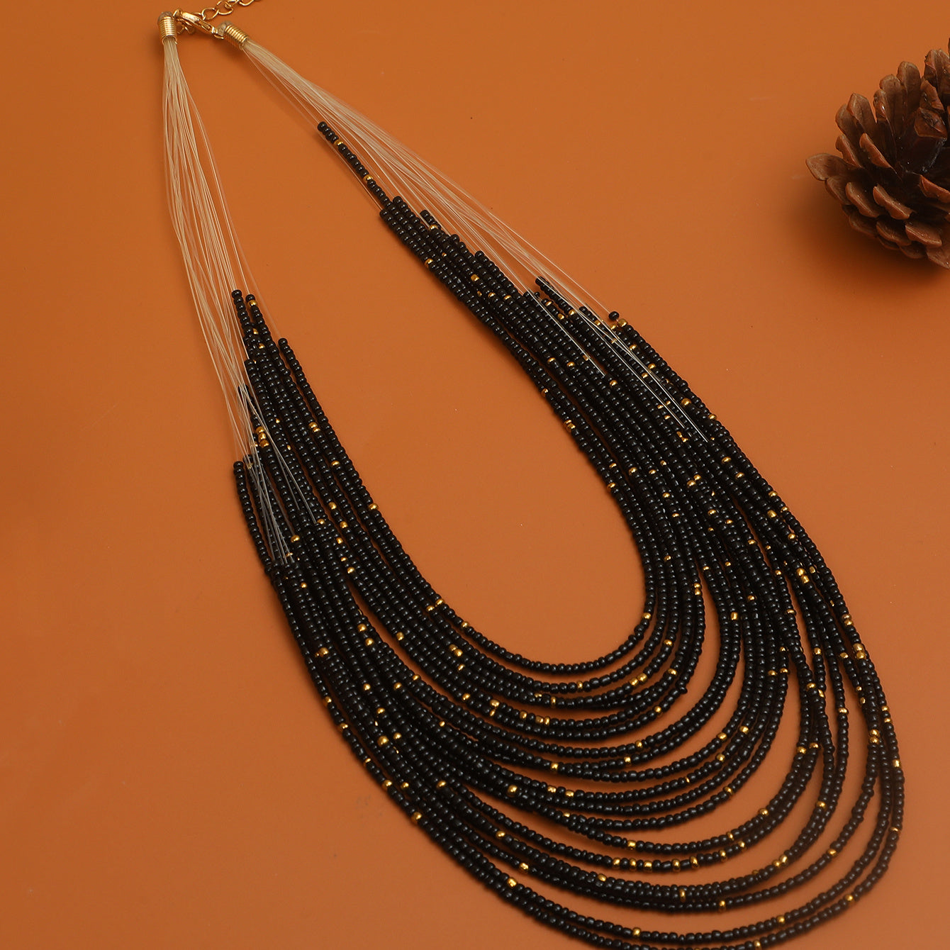 Elegant and trendy multilayer rice bead long necklace perfect for female accessories and jewelry gifts.