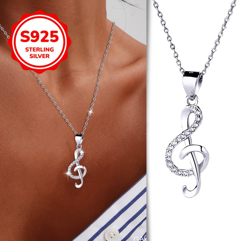 Elegant pendant necklace with musical note rhythm design and high-quality cubic zirconia inlay. A timeless piece that symbolizes blessings and wishes.