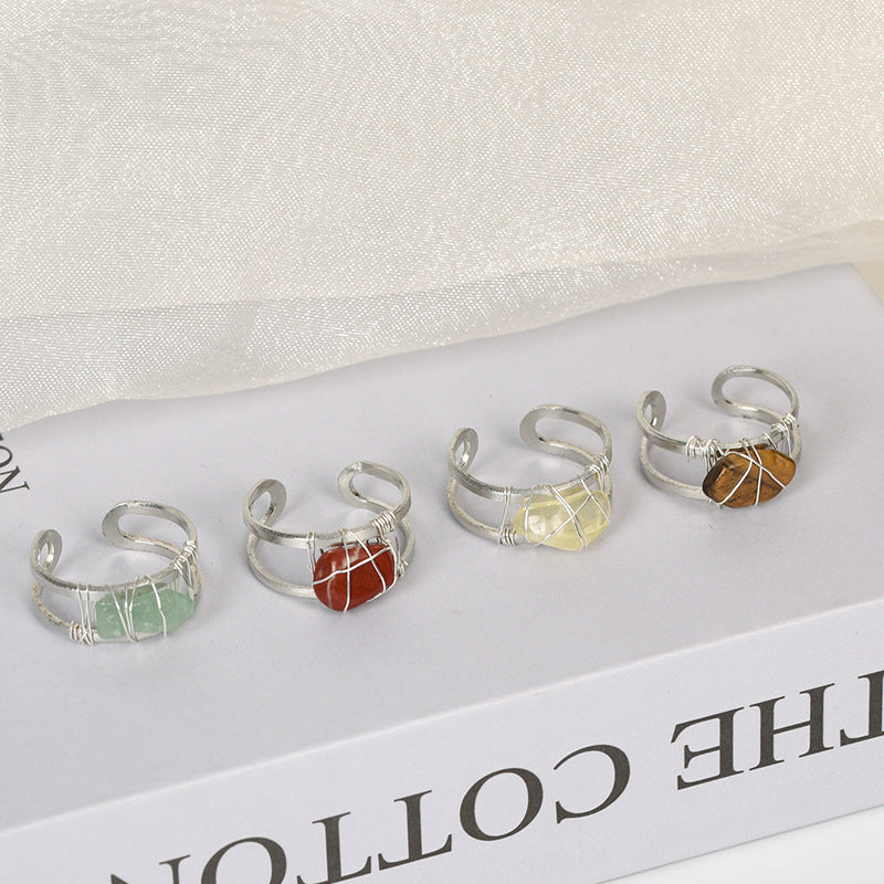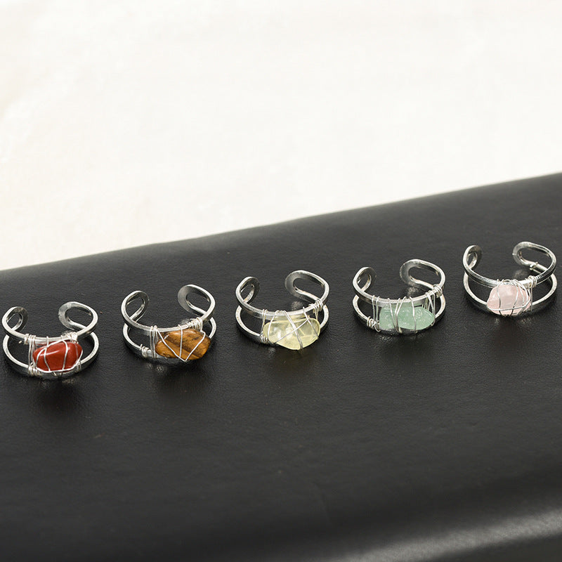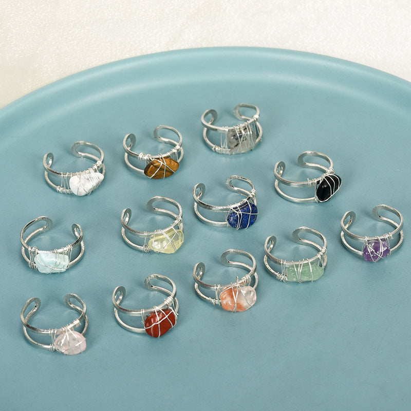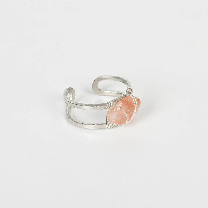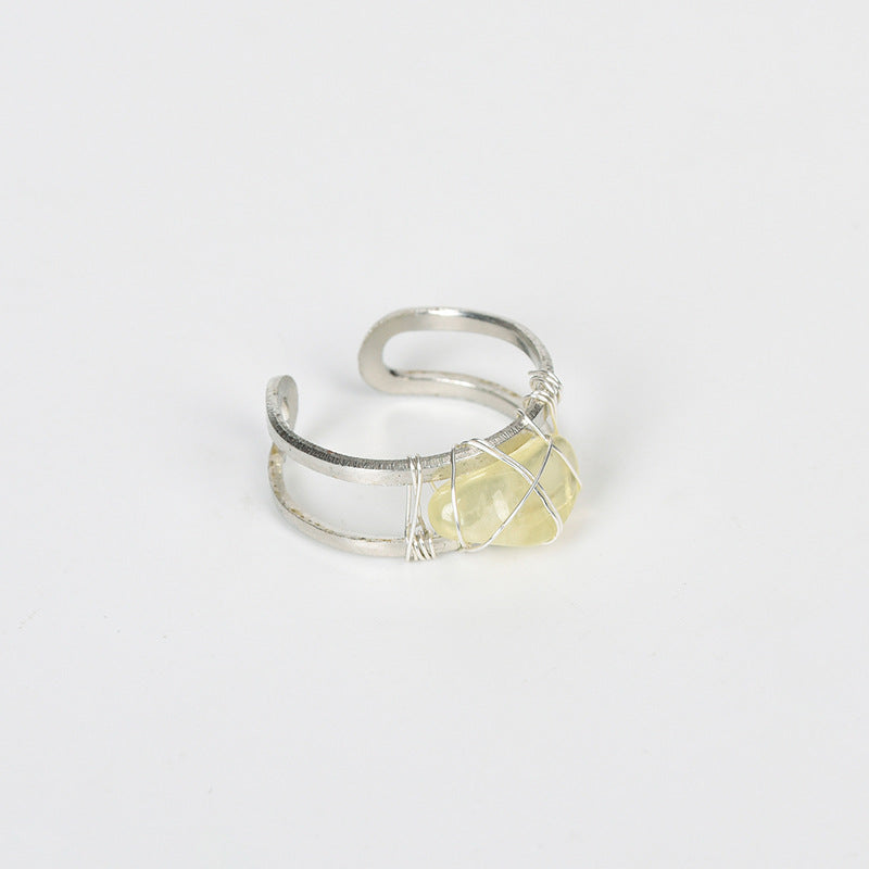 This stunning ring features a rough Amethyst crystal stone wire wrapped in a silvery tone setting. A unique and stylish accessory for women.