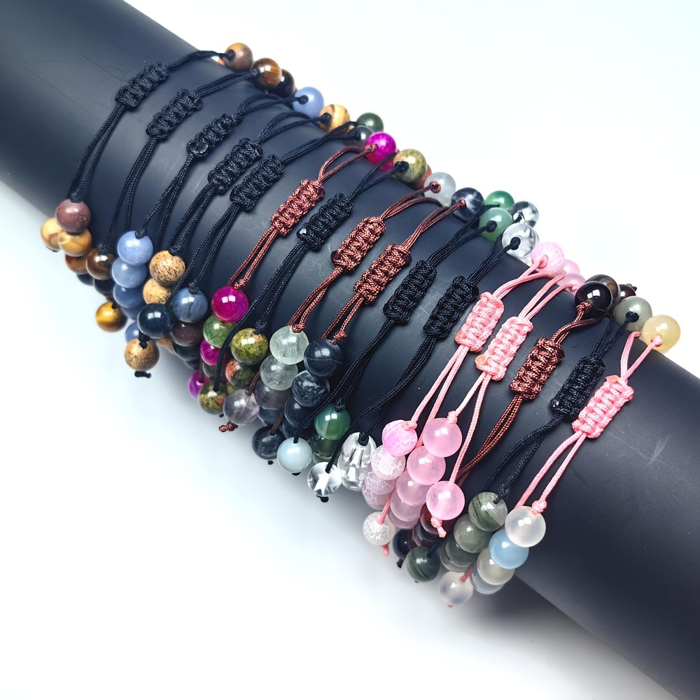 This adjustable bracelet is made of crystal gemstone beads that promote natural healing power. A stylish and beneficial accessory for everyday wear.