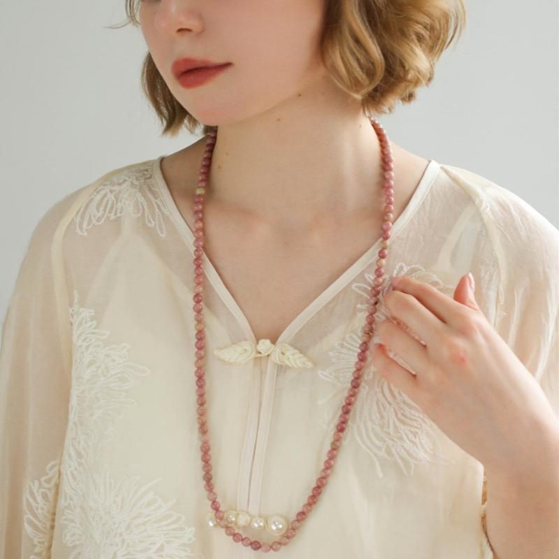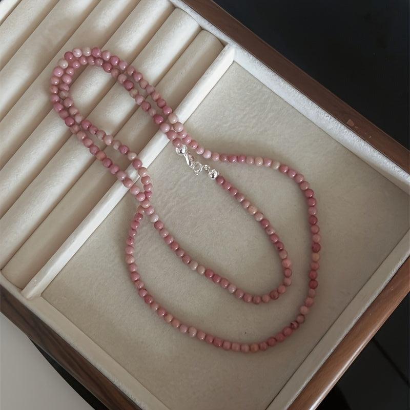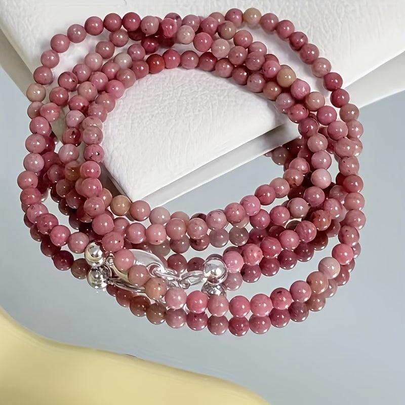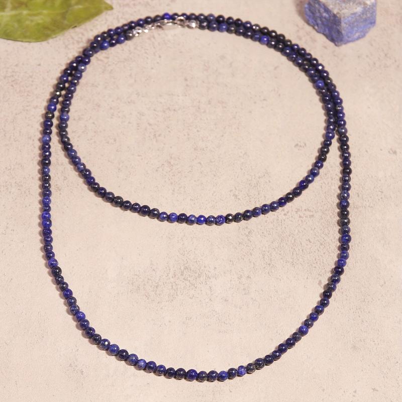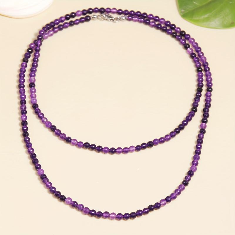 Elevate your style with this stunning long sweater chain or choker necklace featuring rhodonite, amethyst & lapis lazuli. Perfect for daily wear or vacation.