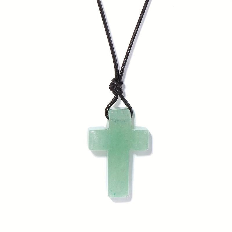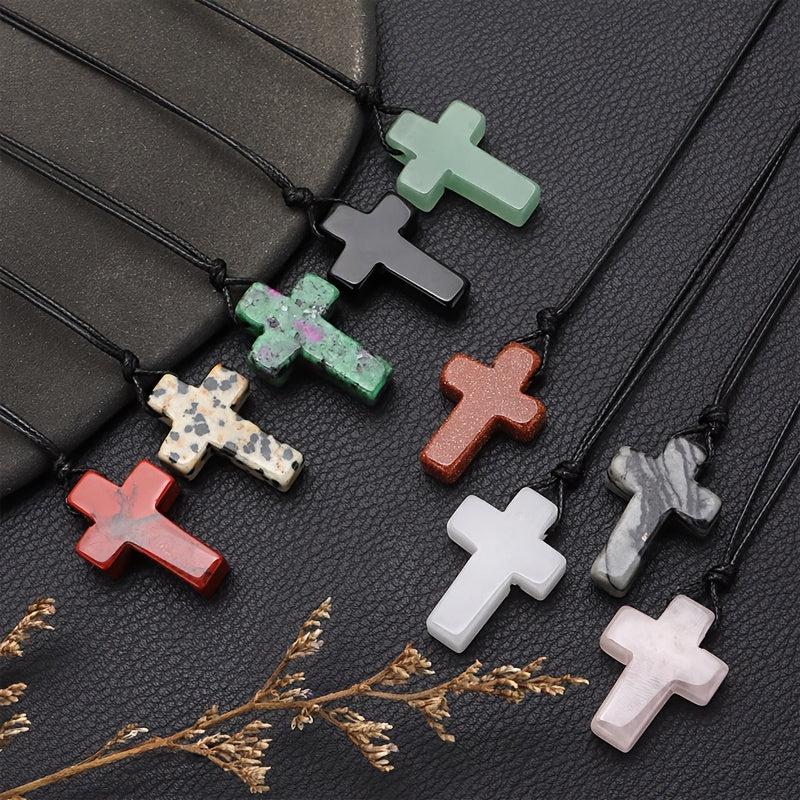Elegant necklace featuring a natural stone cross pendant on a hand-woven wax thread cord. Perfect for August birthdays.