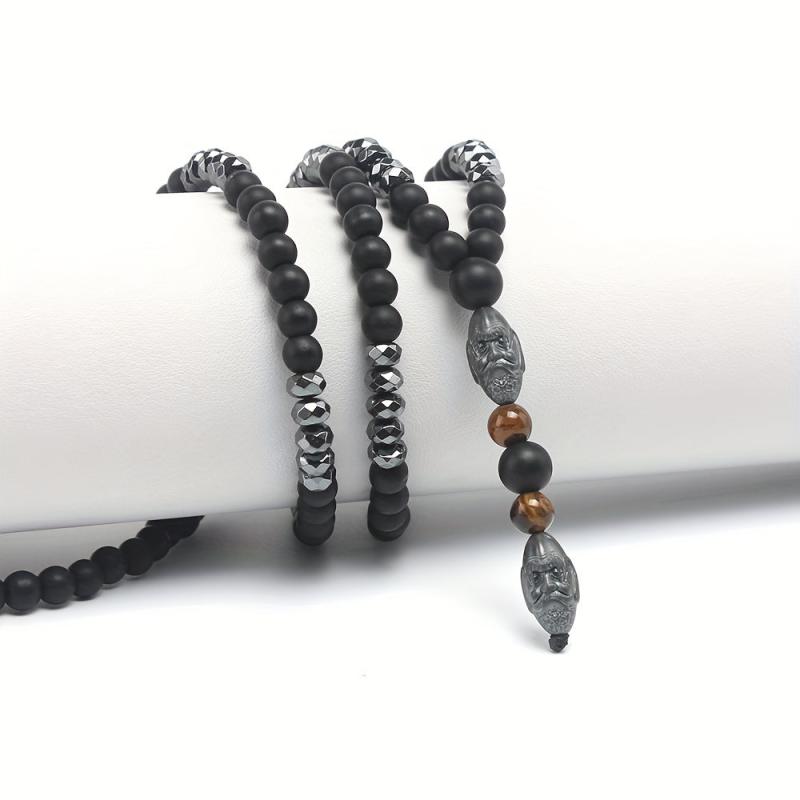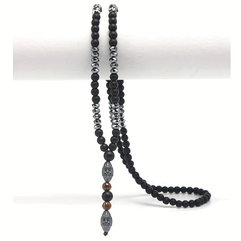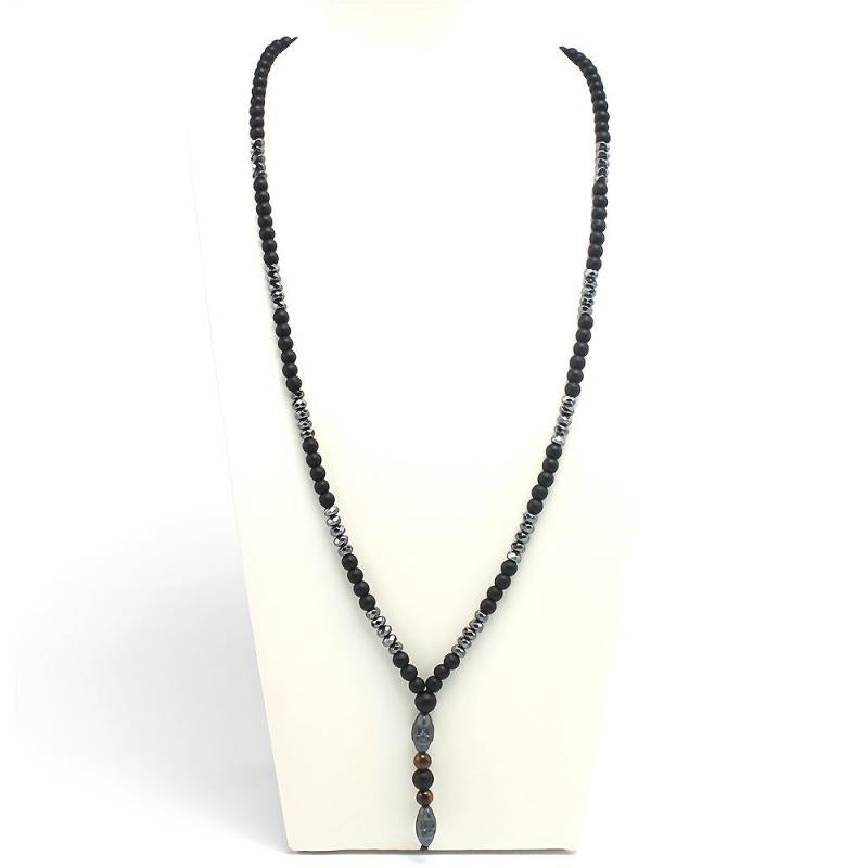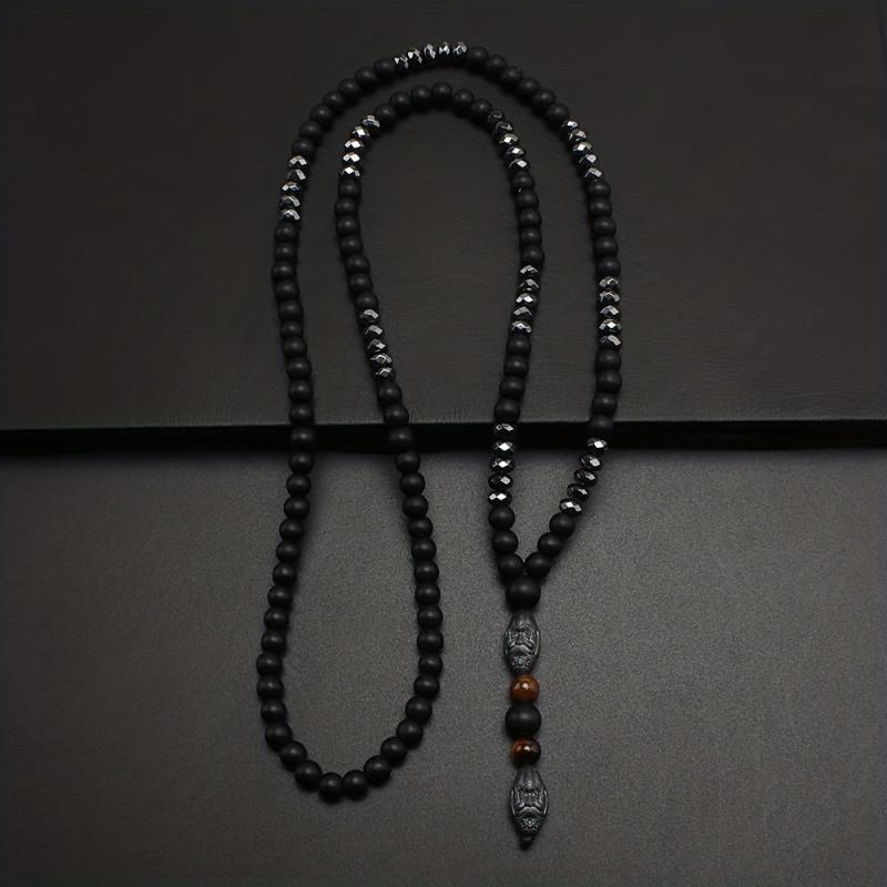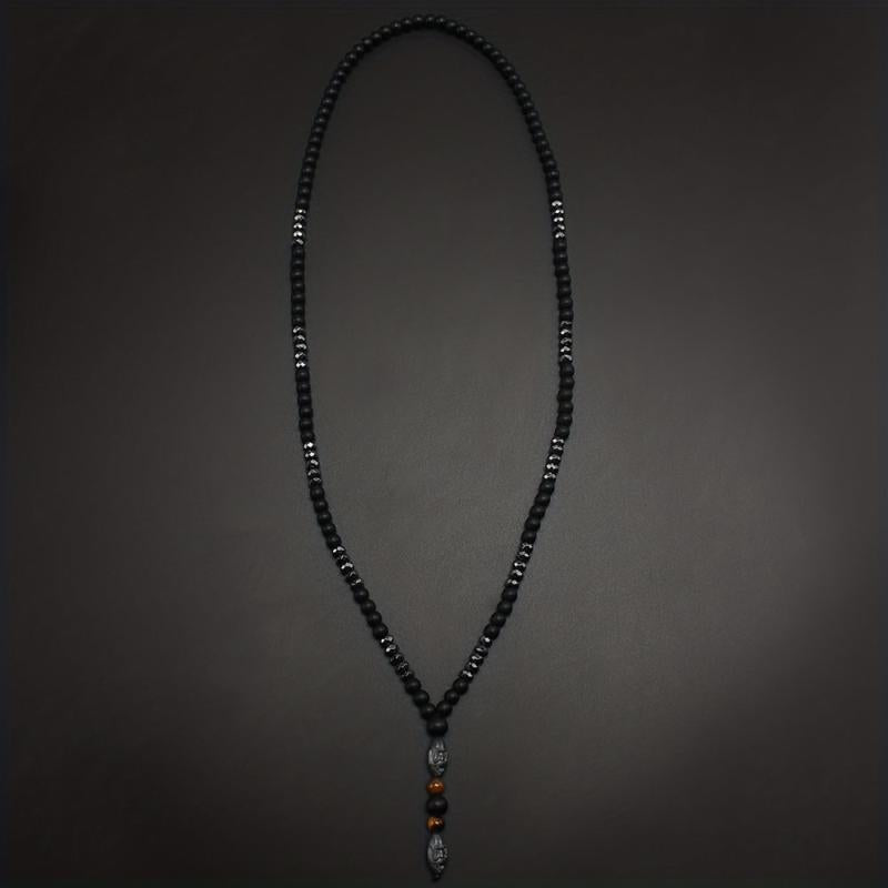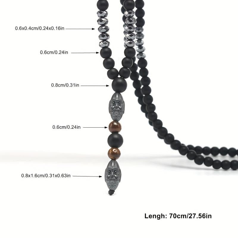 This pendant necklace features a unique design with a natural stone tiger eye old man head pendant. It is a stylish and eye-catching accessory for men.