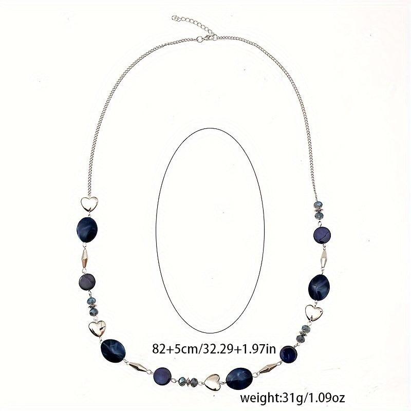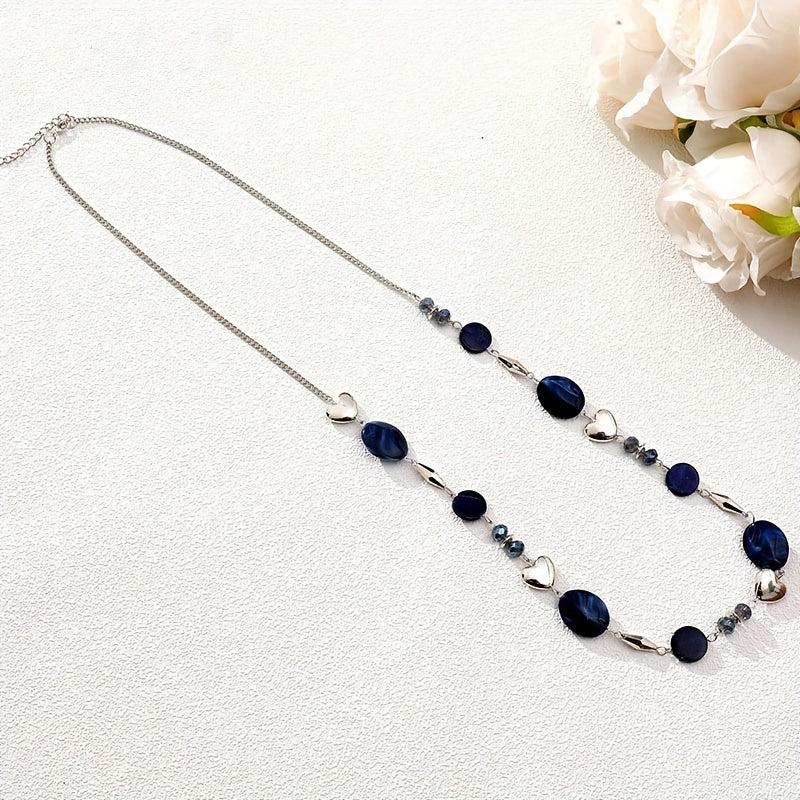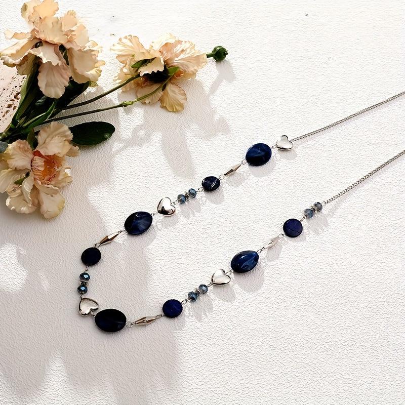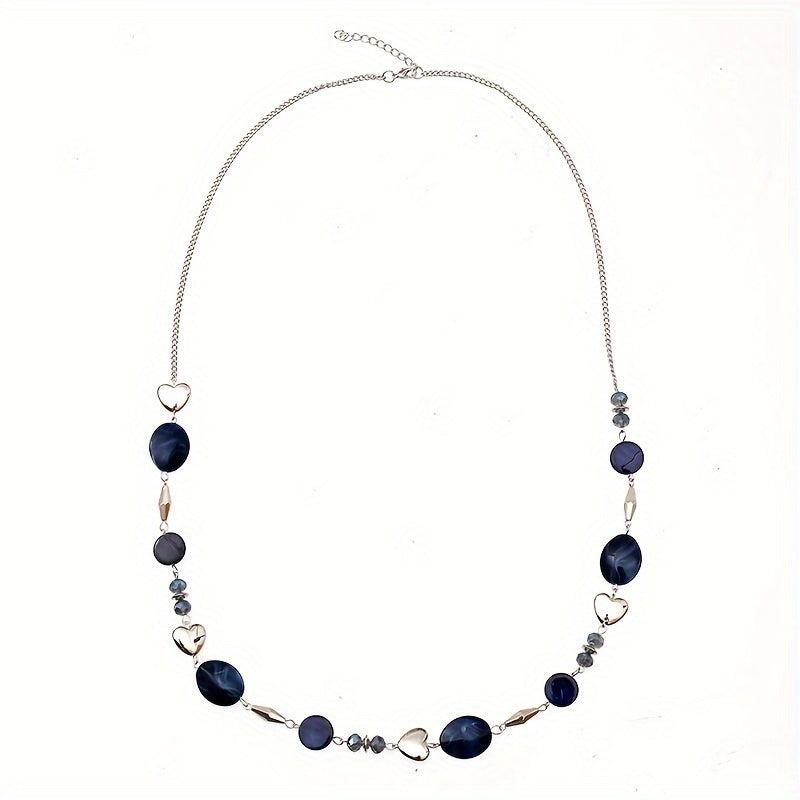 This versatile necklace in navy color features a mix of shells, heart, and geometric beads. Perfect for formal events or everyday wear, it has a polished finish for a stylish look year-round.