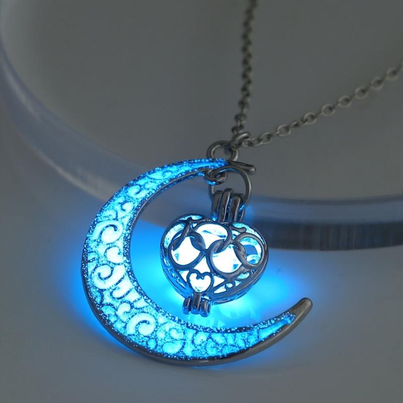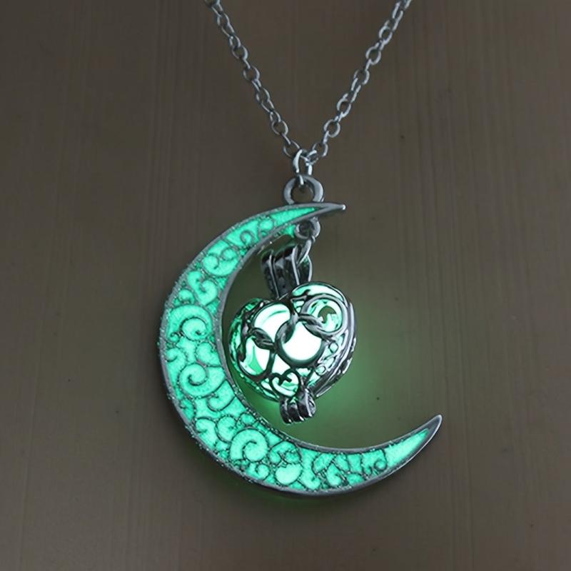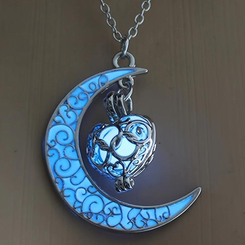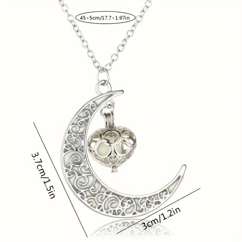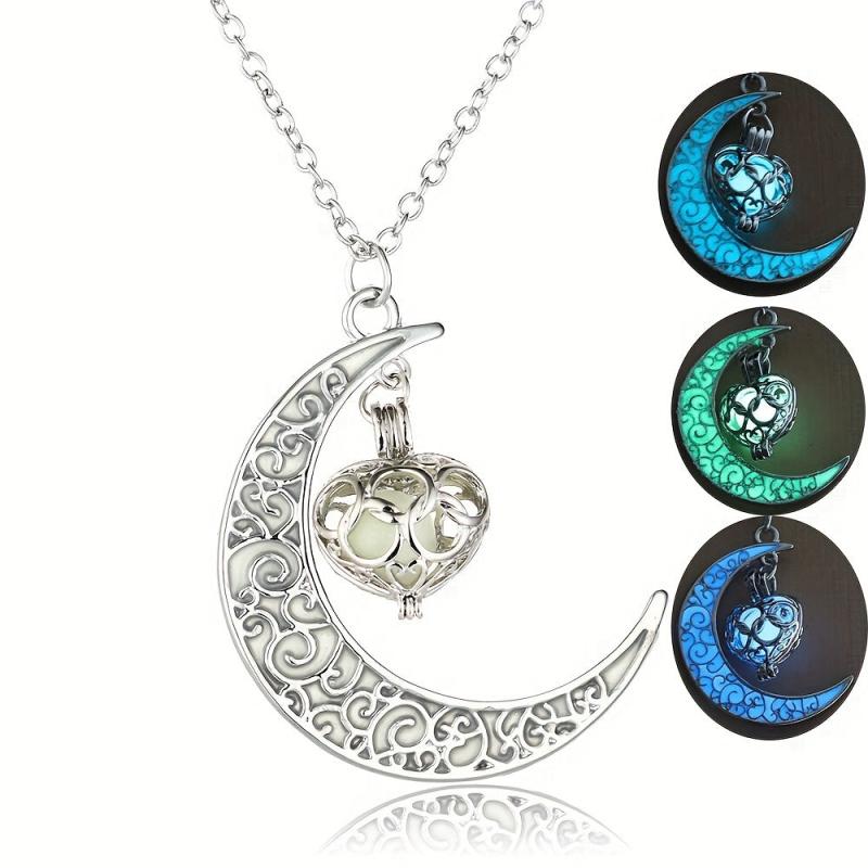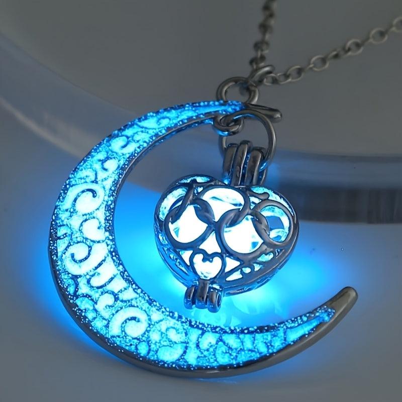 This Gothic minimalist necklace features a crescent moon & heart pendant with a glowing effect. Ideal for women's daily wear and parties.