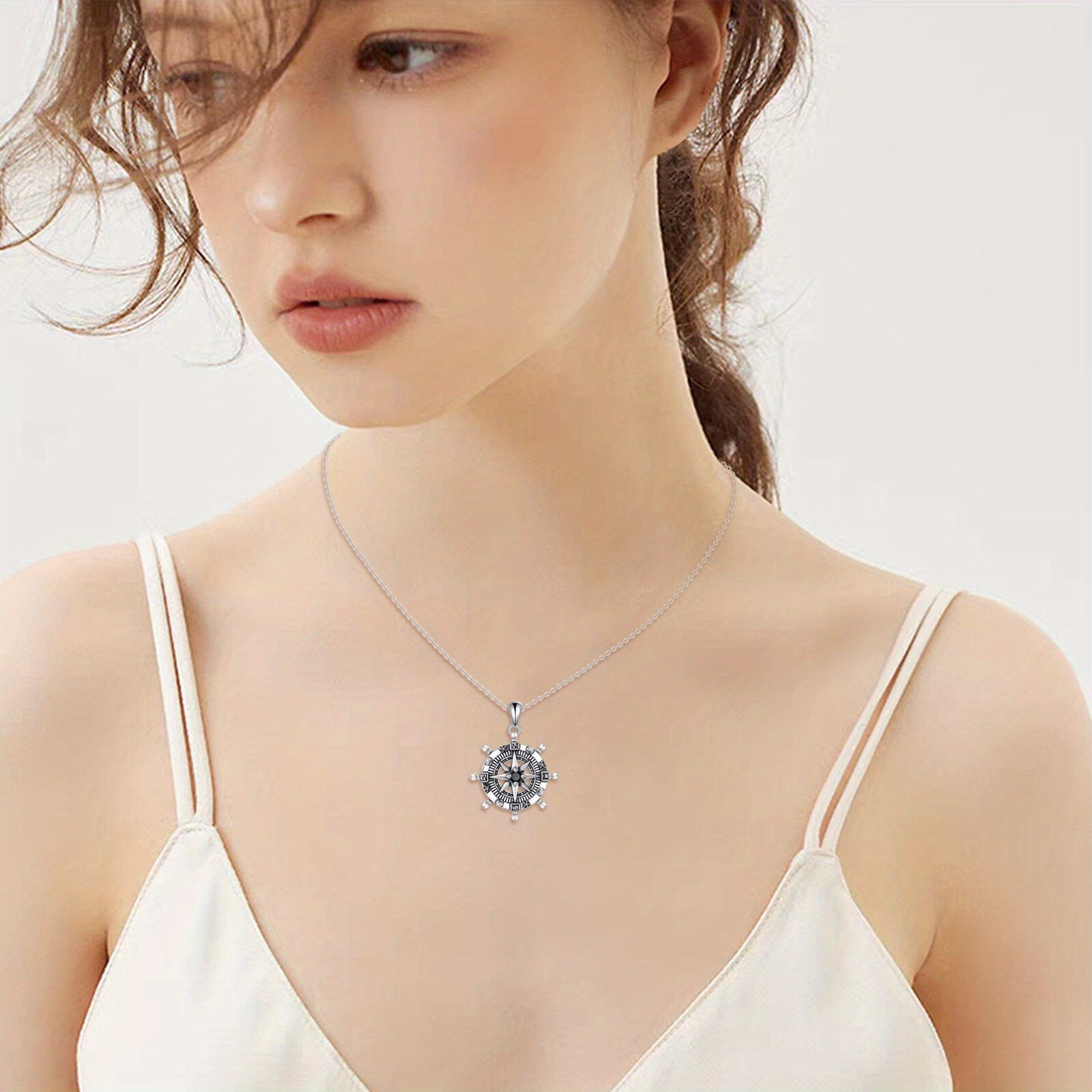 This beautiful compass necklace is made of 925 sterling silver and features a synthetic compass design. Perfect for women and men who love the ocean and exploring new horizons.