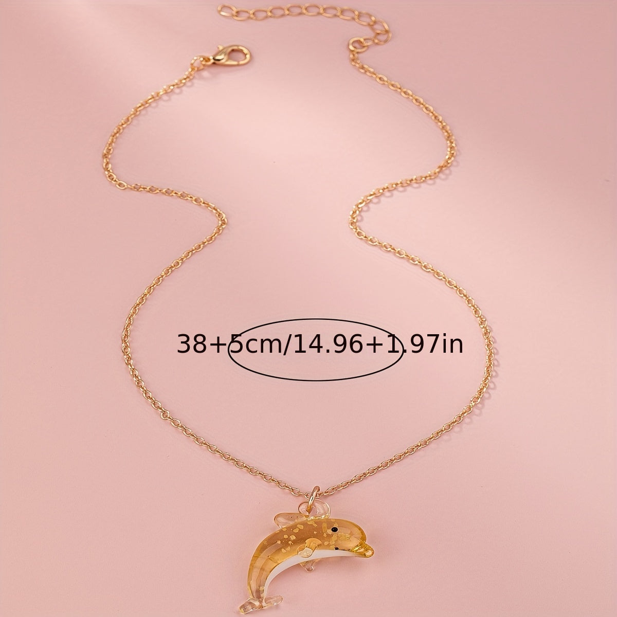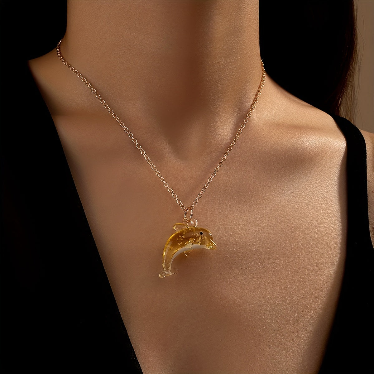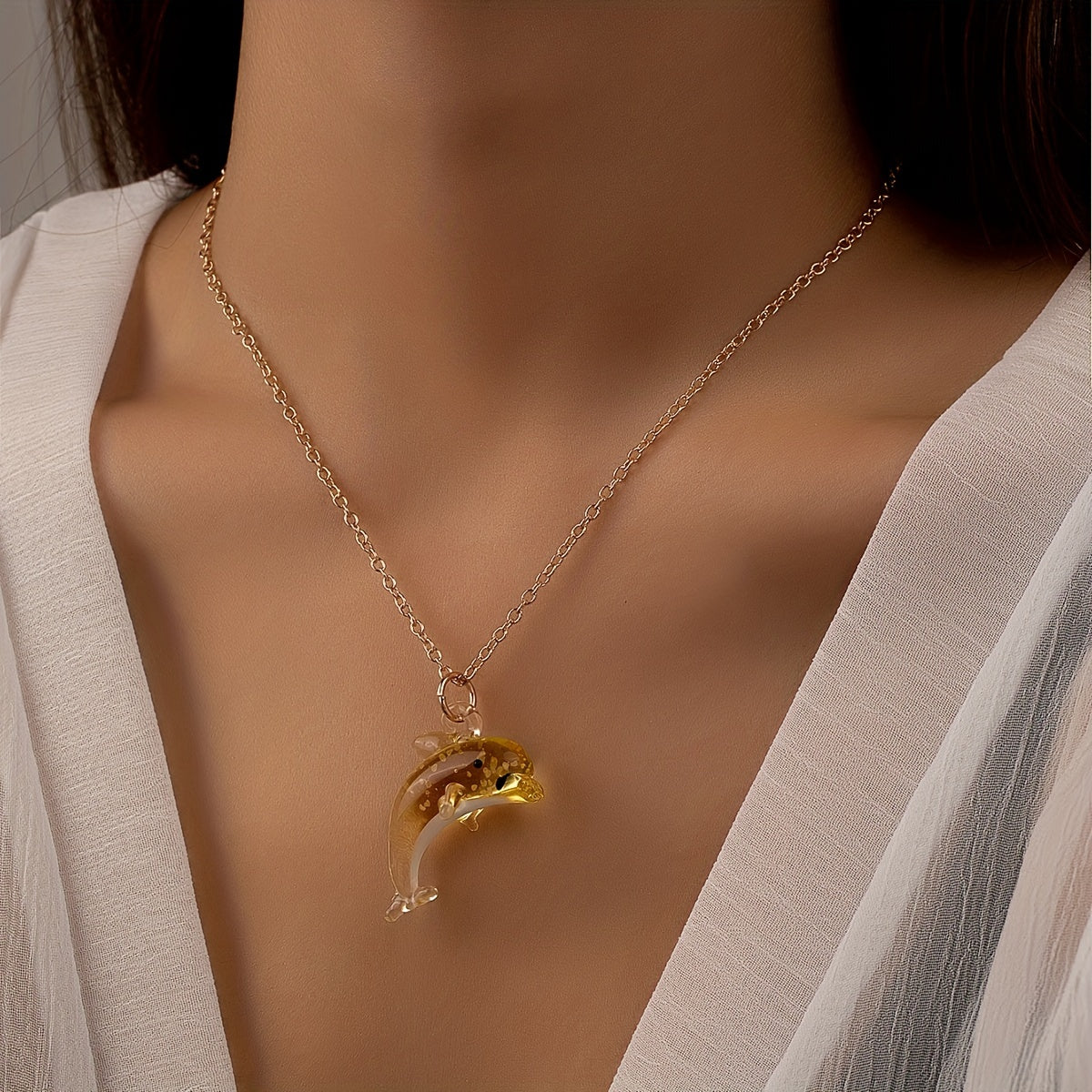 This dolphin pendant necklace is perfect for summer beach vibes. It features a cute dolphin design that will add a touch of whimsy to your outfit.