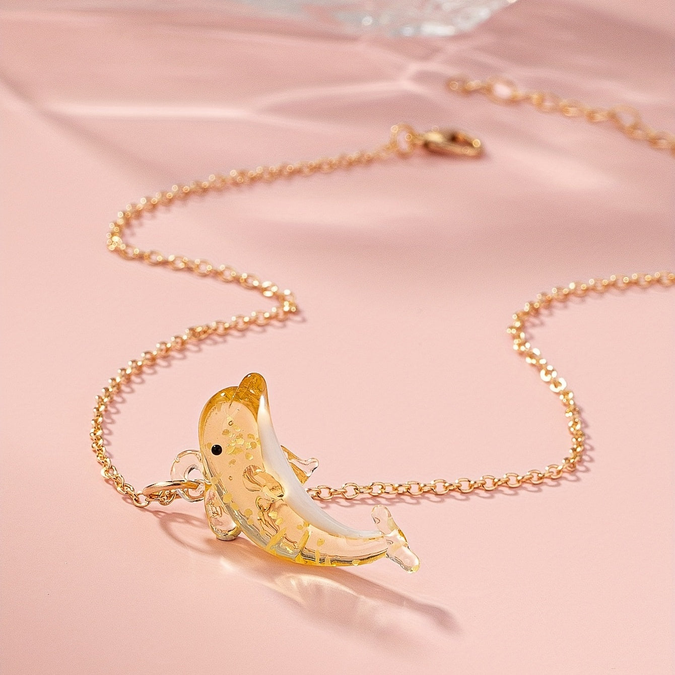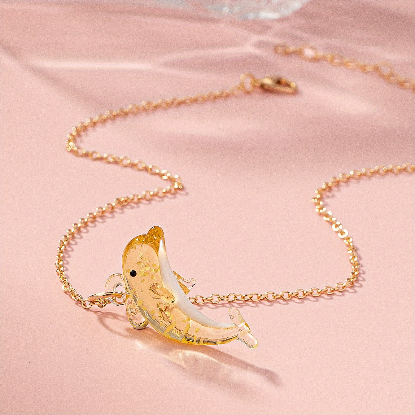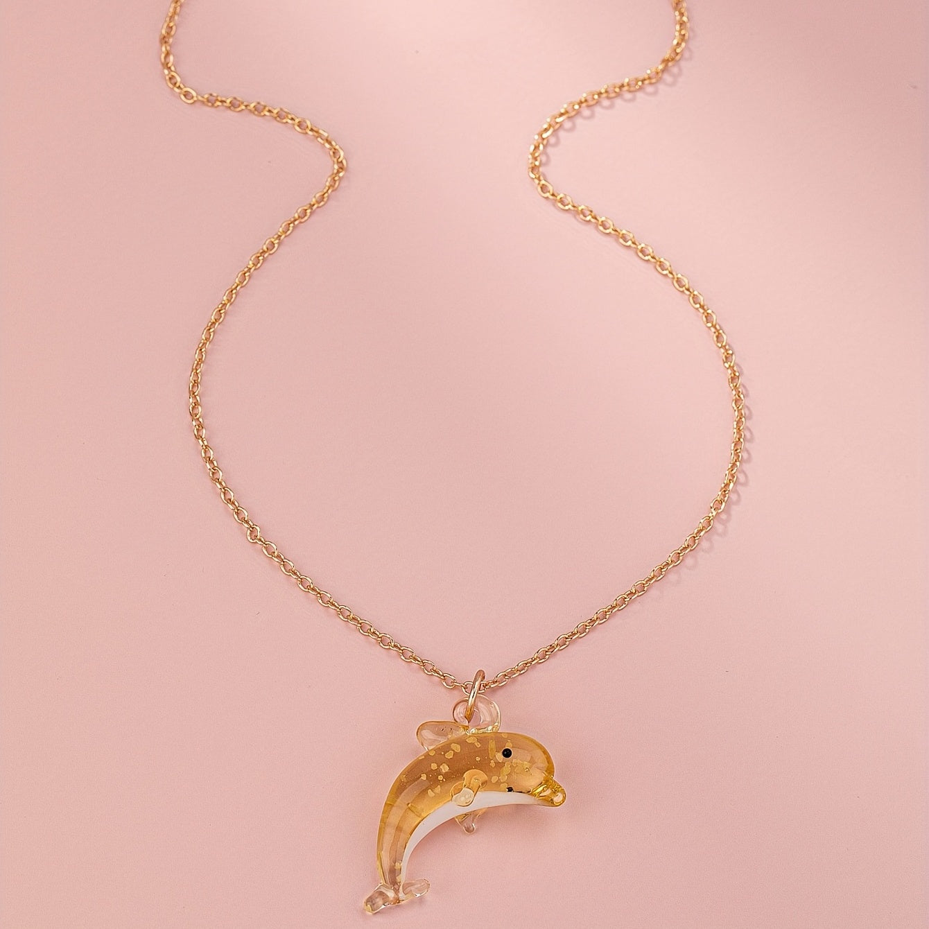 This dolphin pendant necklace is perfect for summer beach vibes. It features a cute dolphin design that will add a touch of whimsy to your outfit.