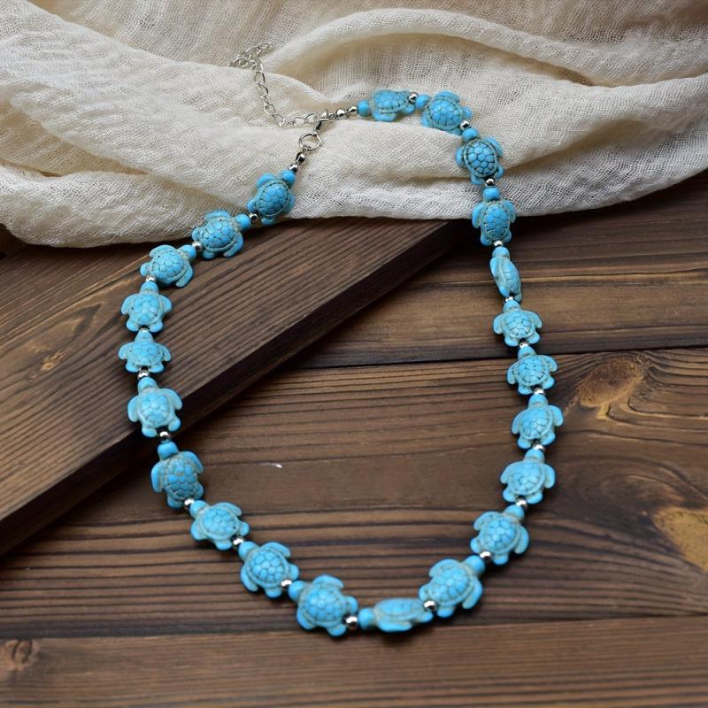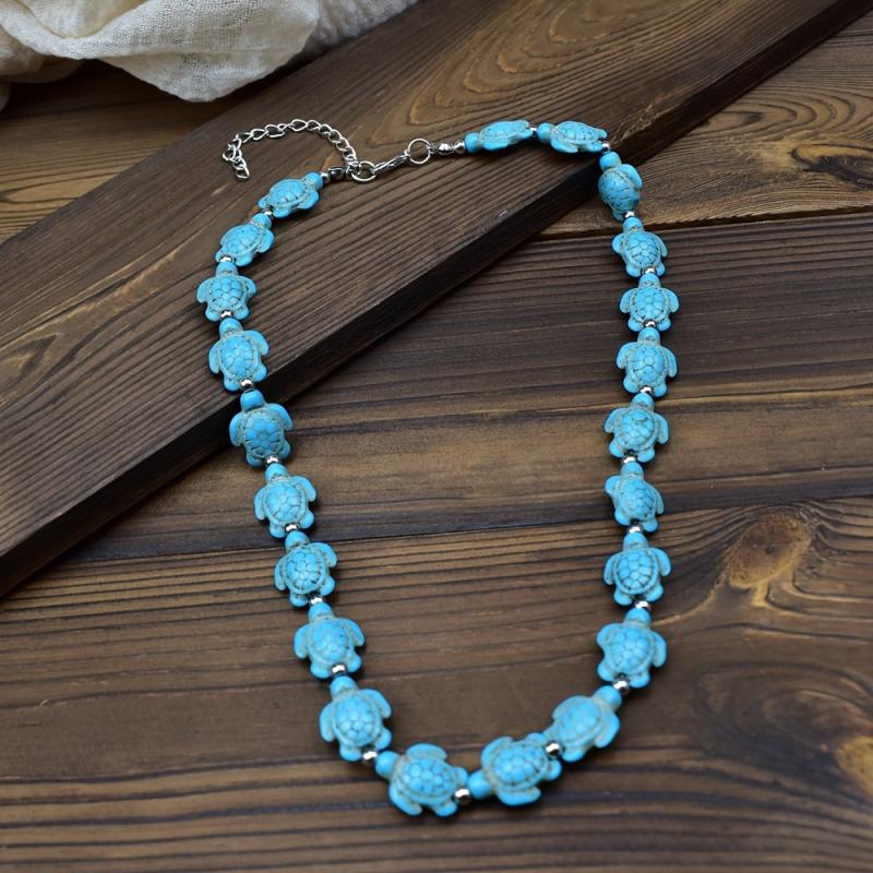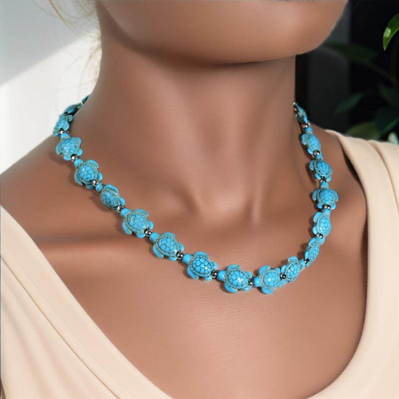 This choker necklace is perfect for a beach vacation with its ocean wave and sea turtle design. Add a bohemian touch to your summer outfit.