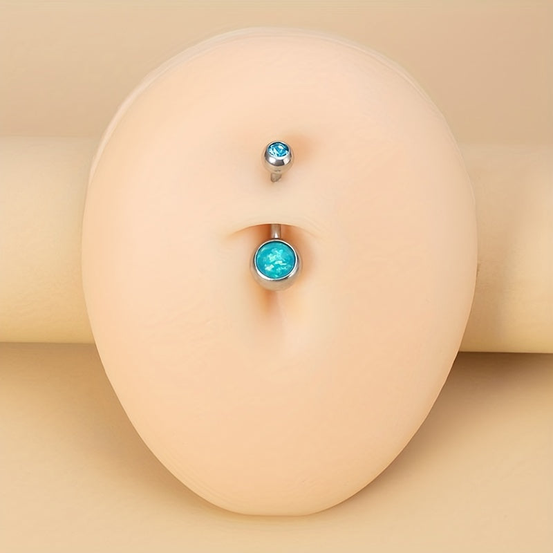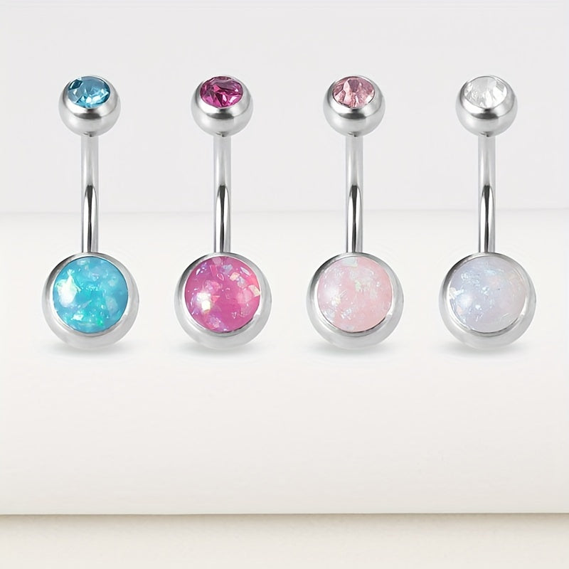 Elevate your look with this stunning opal belly button ring made of high-quality stainless steel. It's perfect for navel piercings and adds a touch of elegance to your style.