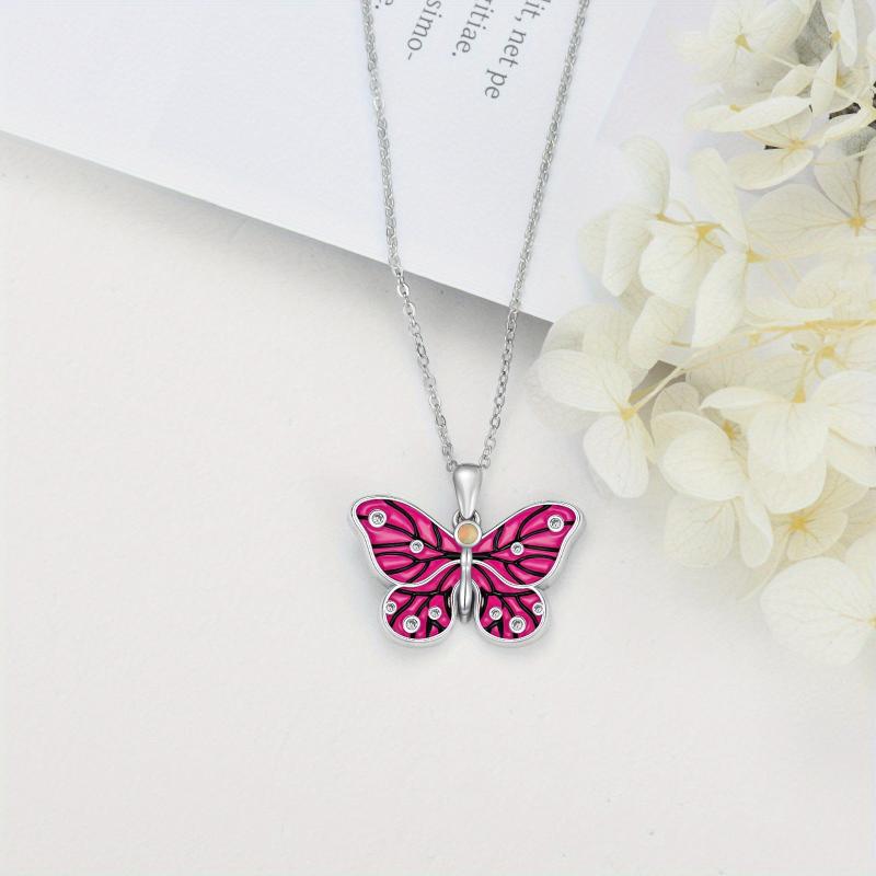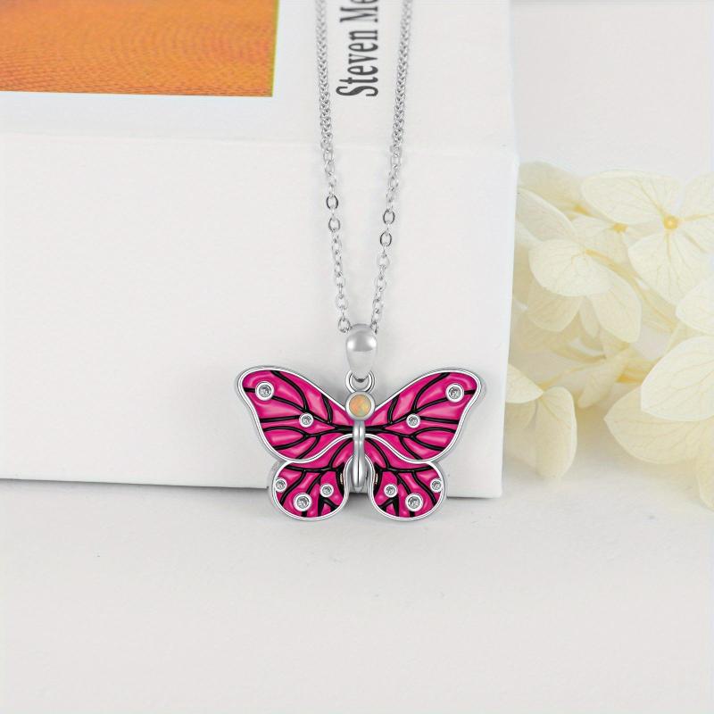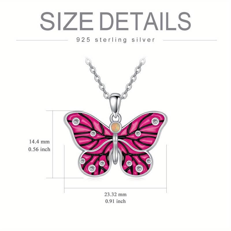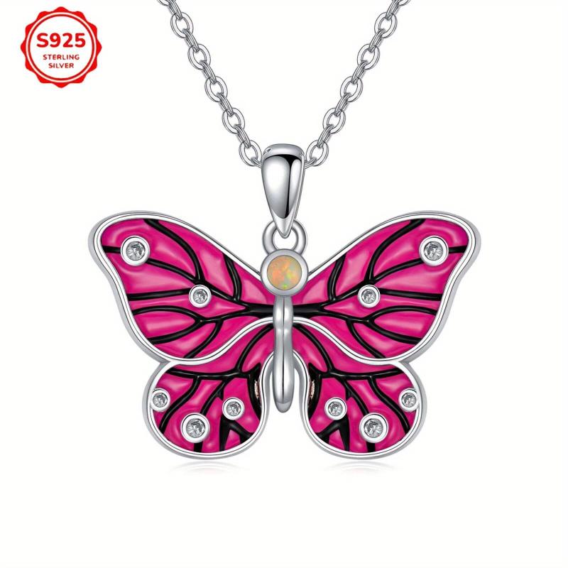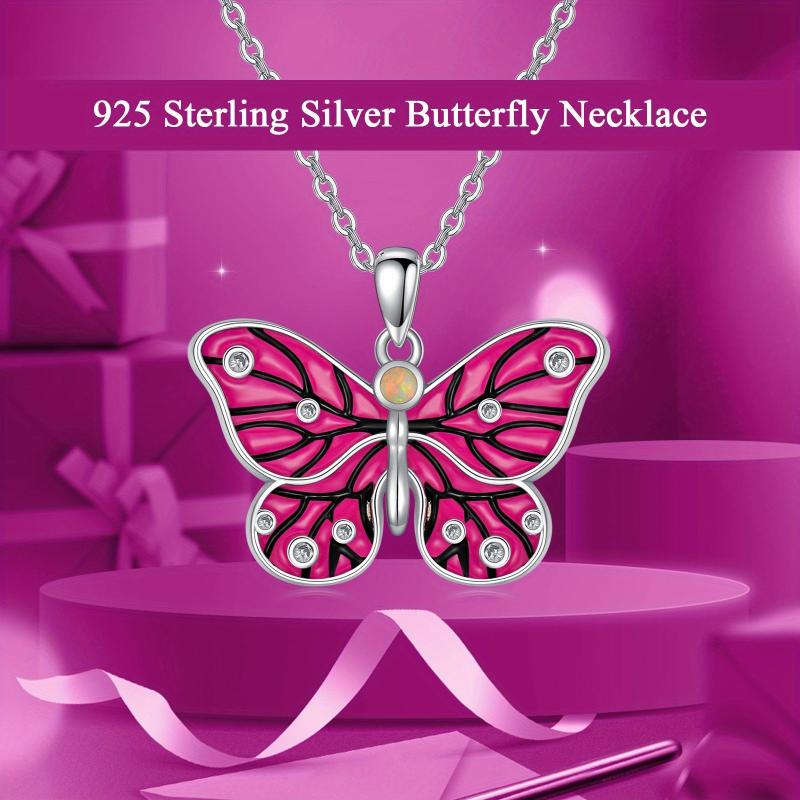 Elegant 925 Sterling Silver pendant featuring an opal butterfly design with oxidized zirconia and a pink finish. Perfect for birthdays and Mother's Day celebrations.
