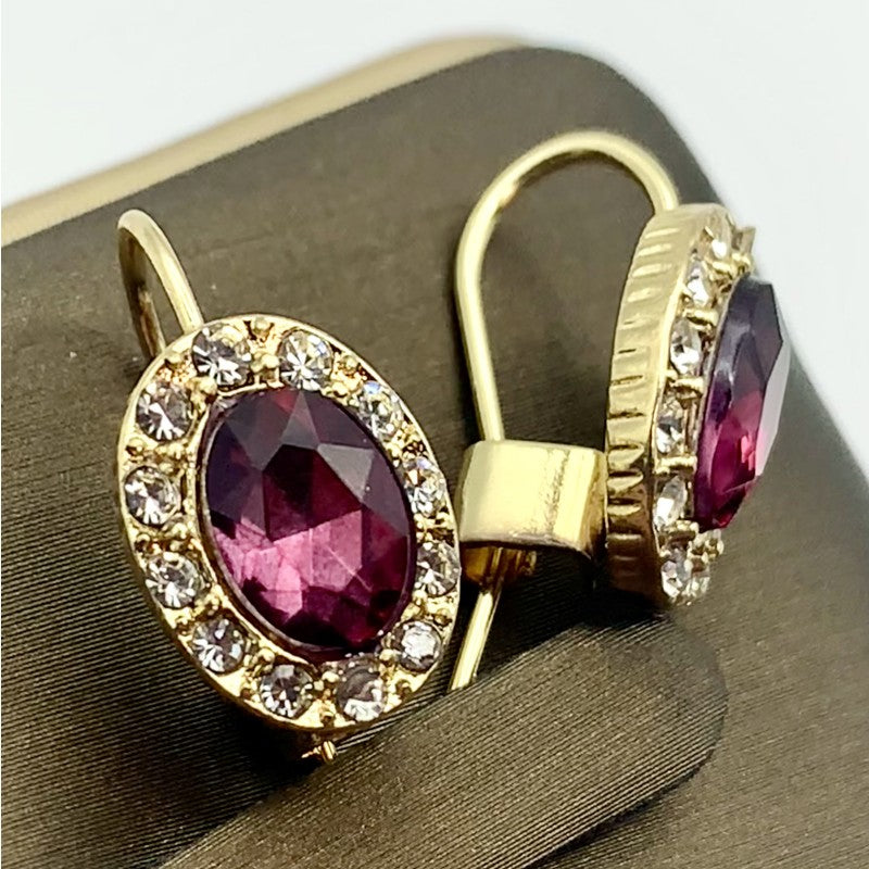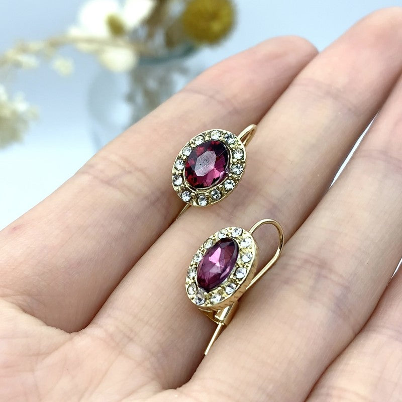 Add a touch of bohemian flair to your outfit with these dangle earrings featuring oval shape and rose red synthetic gems. Perfect for banquets or special occasions.