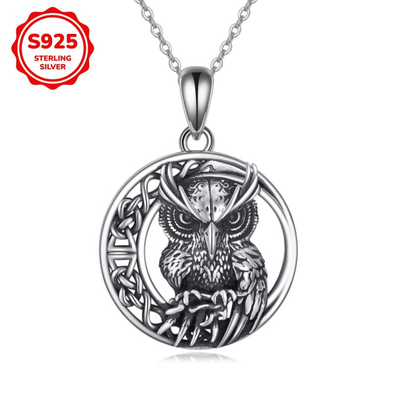 This owl pendant necklace is a stylish accessory for both men and women. Made of hypoallergenic S925 sterling silver, it showcases a unique design that adds personality to any outfit.