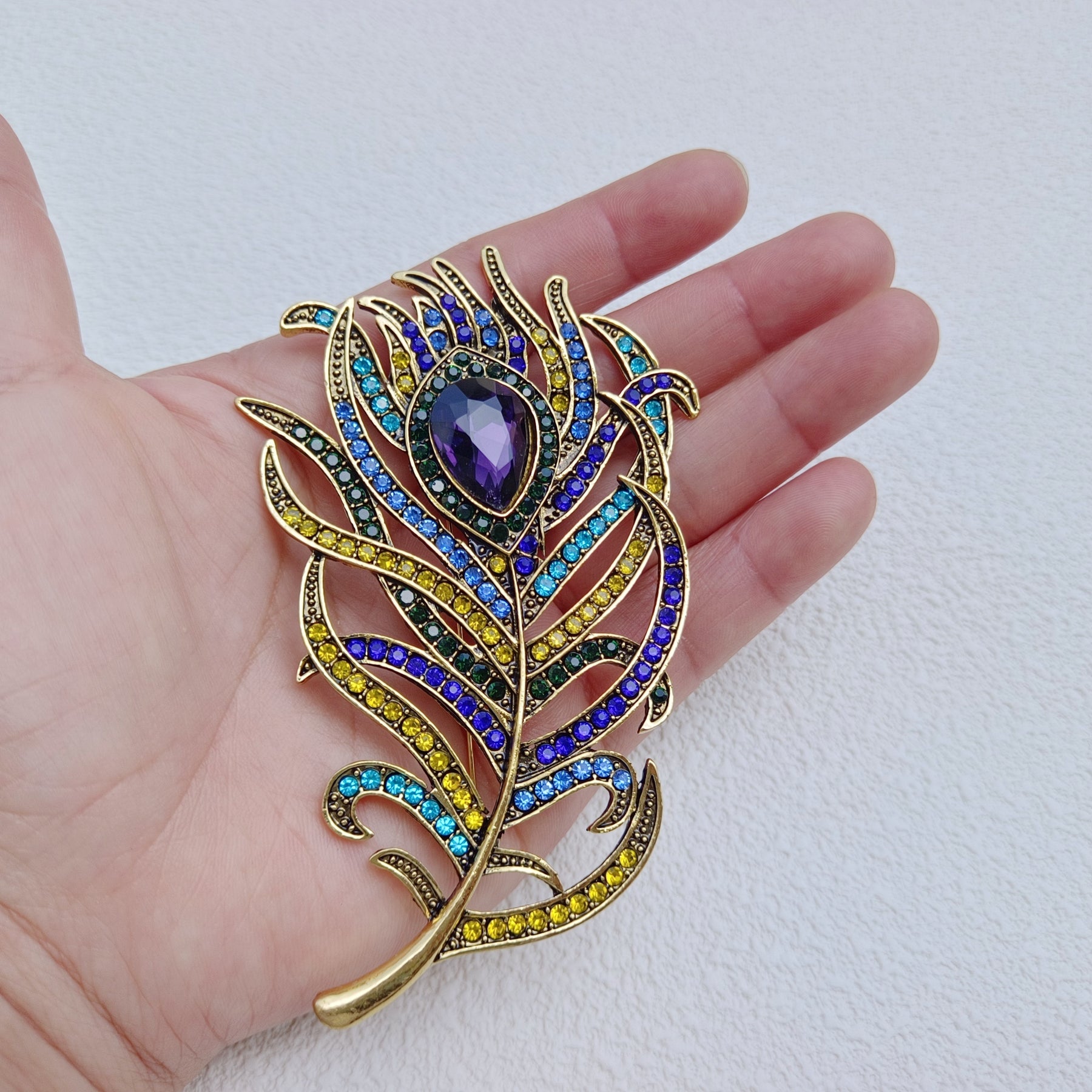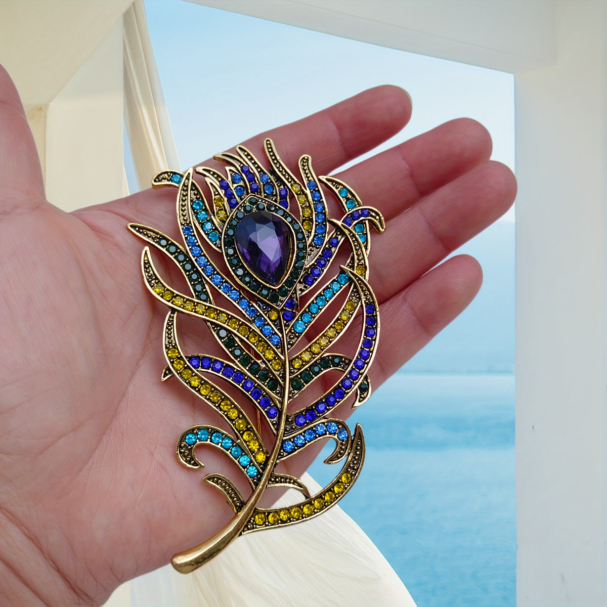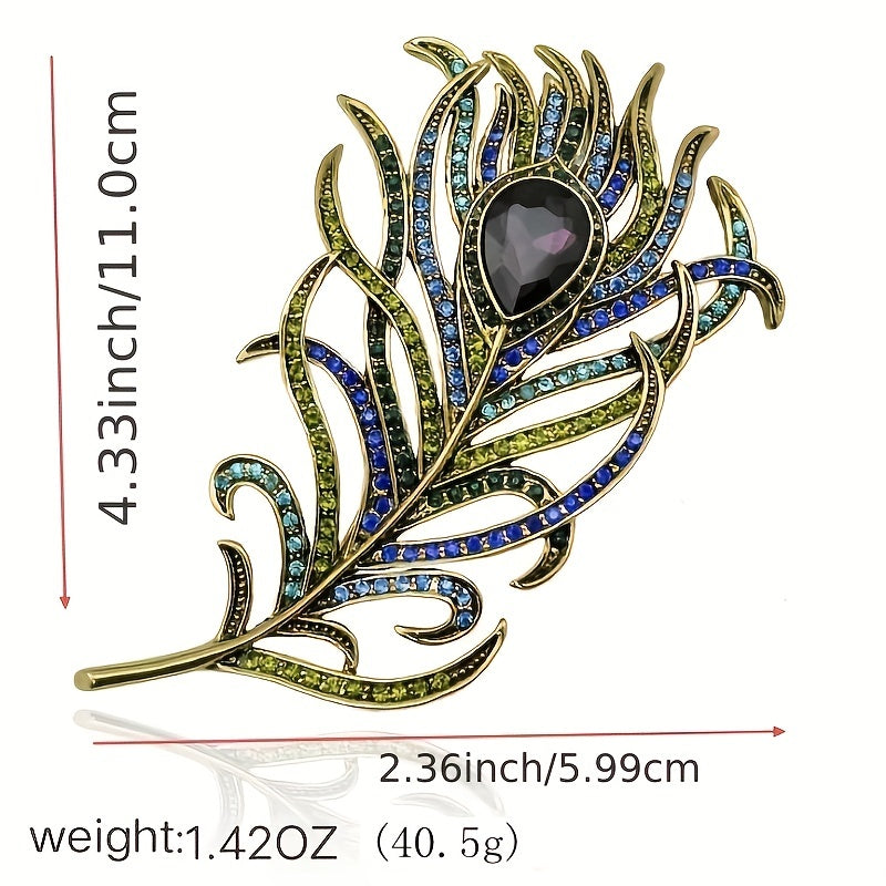 Elevate your outfit with this stunning peacock feather shaped brooch featuring water drop shaped zircon inlay. Perfect for adding a touch of elegance to your attire.