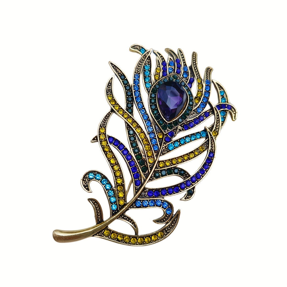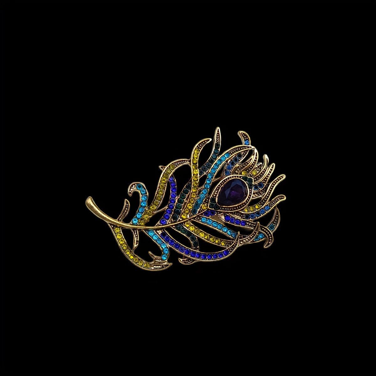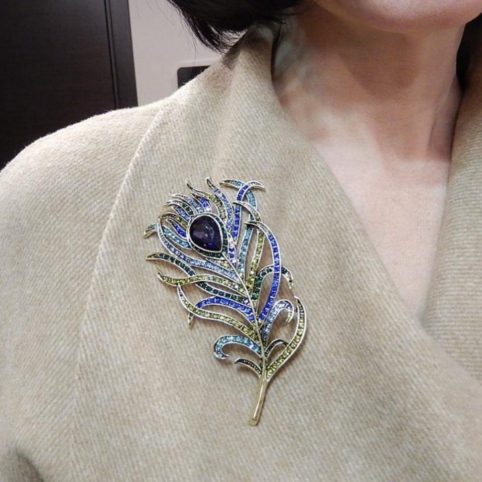 Elevate your outfit with this stunning peacock feather shaped brooch featuring water drop shaped zircon inlay. Perfect for adding a touch of elegance to your attire.