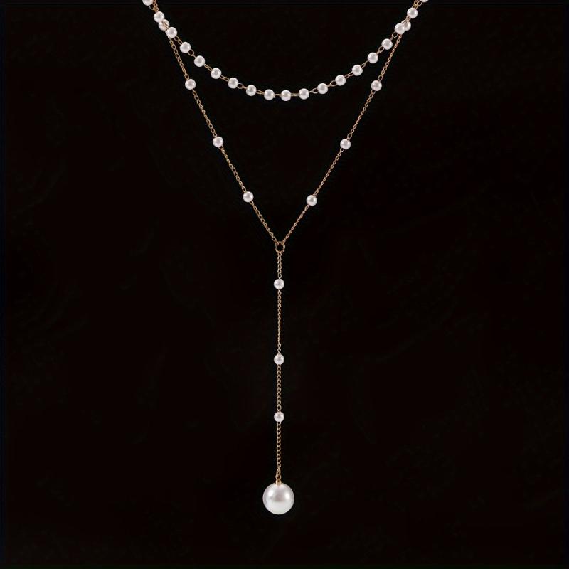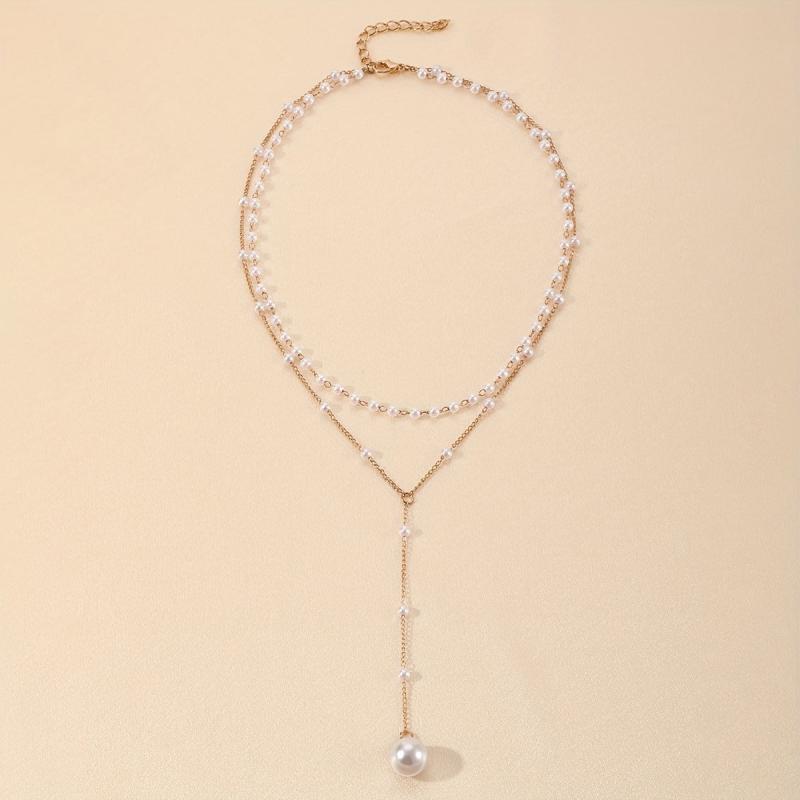 Elegant faux pearl pendant necklace perfect for daily wear or parties. Features a non-metal chain for comfort. Versatile piece that complements any outfit.