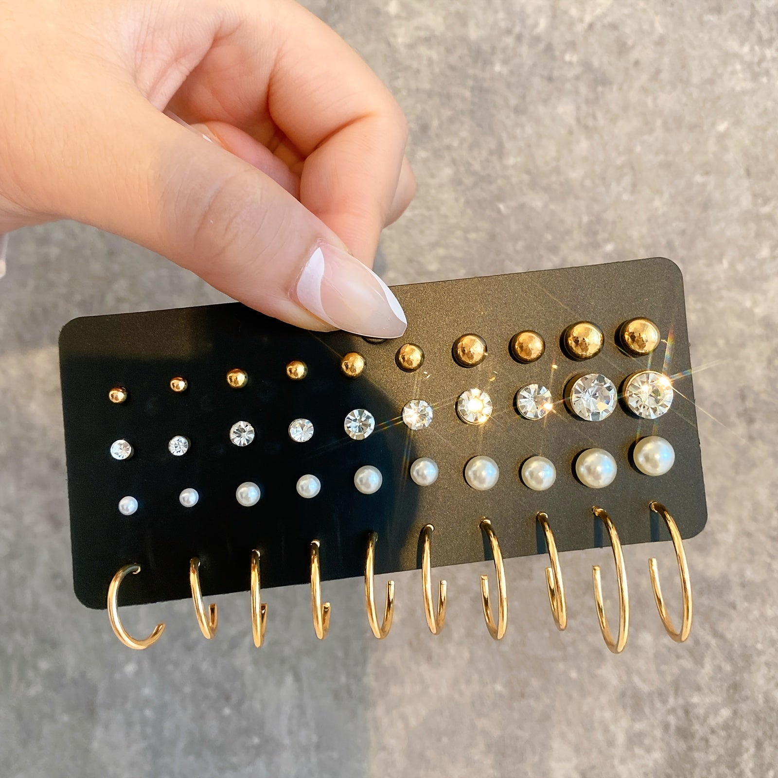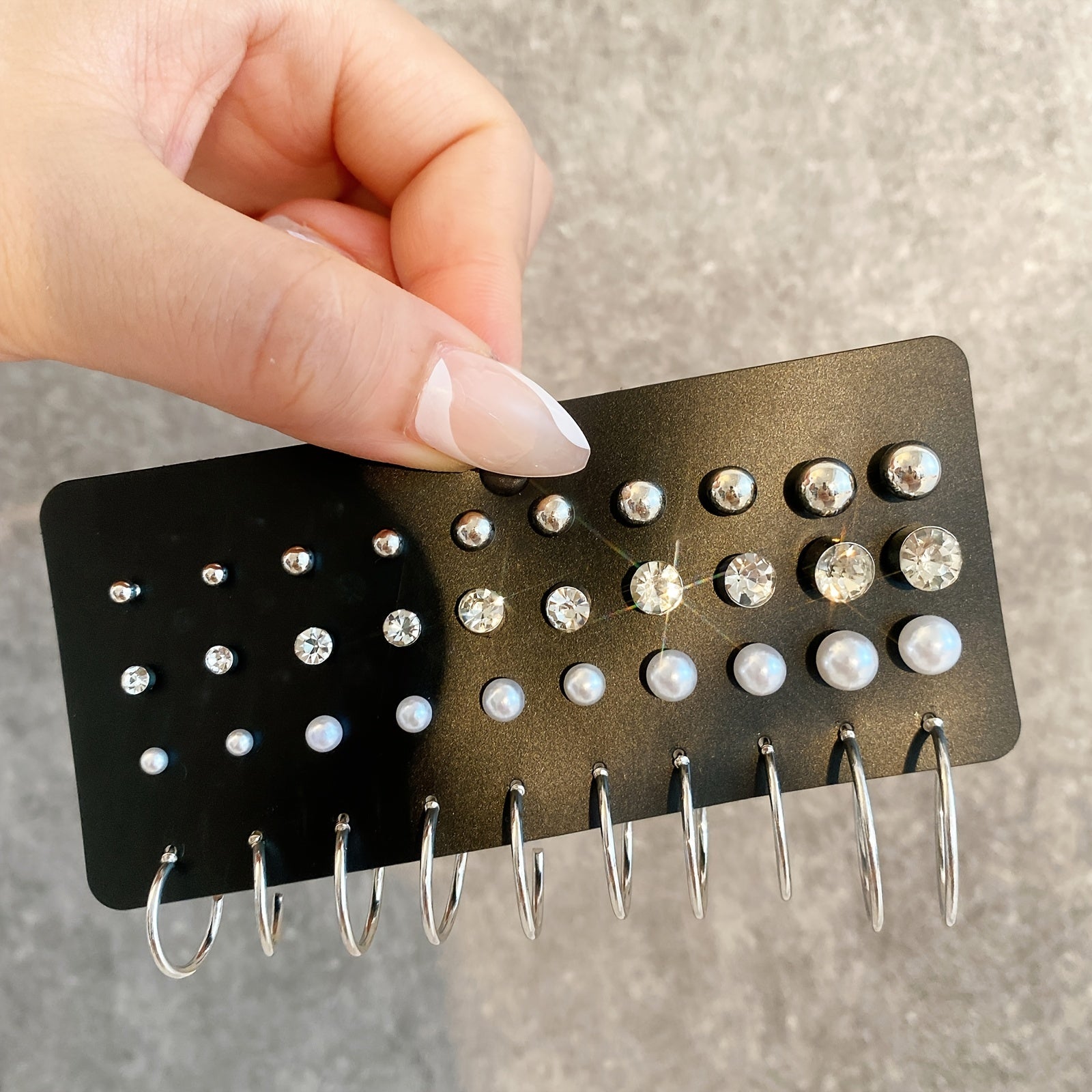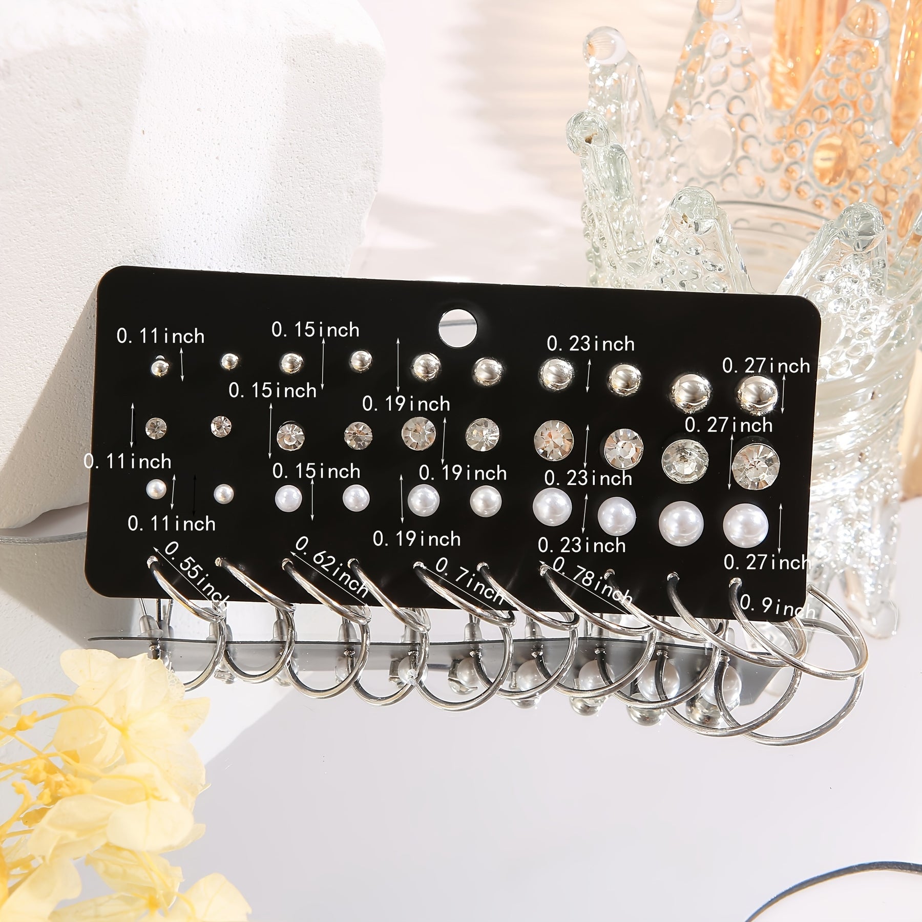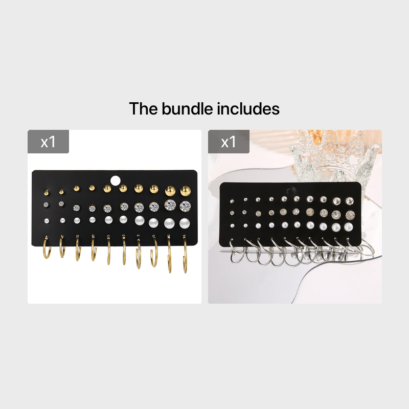 Elevate your accessory game with this set of 20 pairs of pearl rhinestone stud earrings. Perfect for adding a touch of elegance to any outfit.