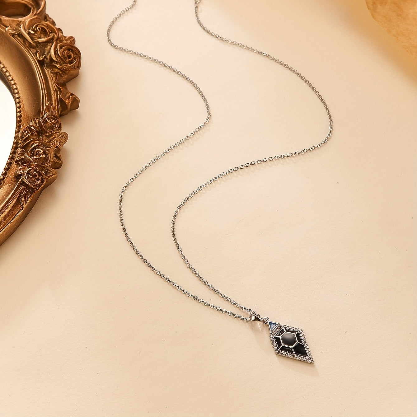 Make a statement with this unique pendant necklace featuring an argyle captain shield design inlaid with shimmering zircons. Perfect for adding a touch of individual style to any outfit.