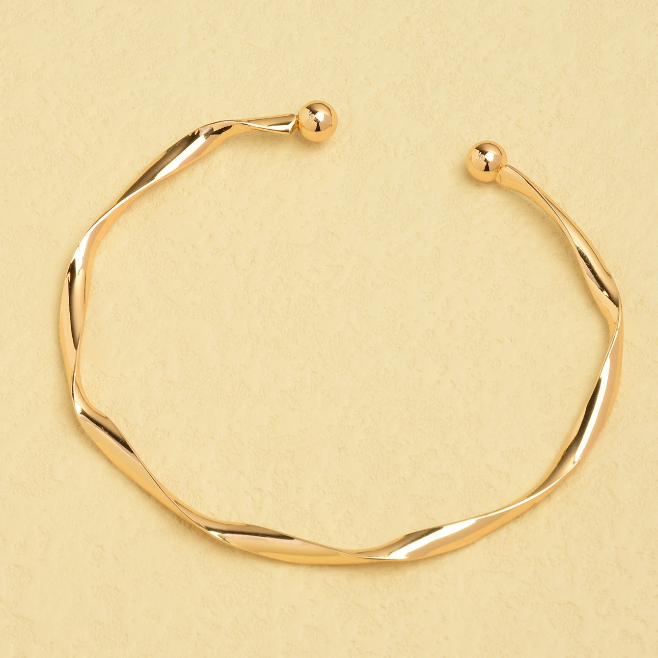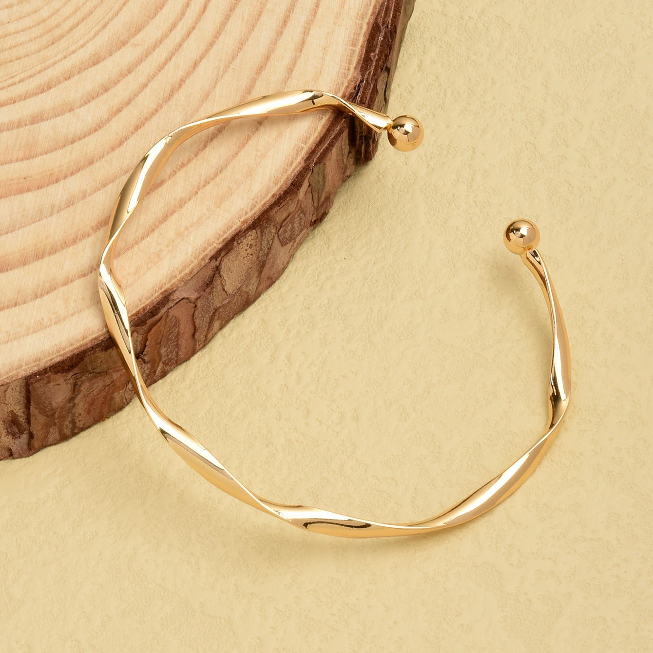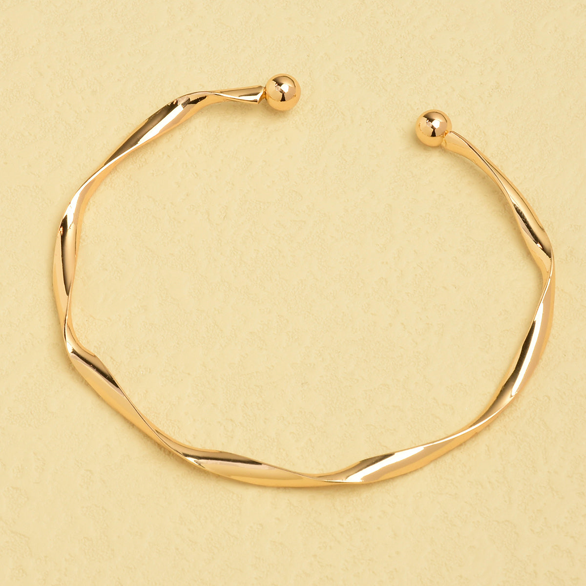This trendy twist bracelet is a must-have accessory. It adds a touch of personality to any outfit.
