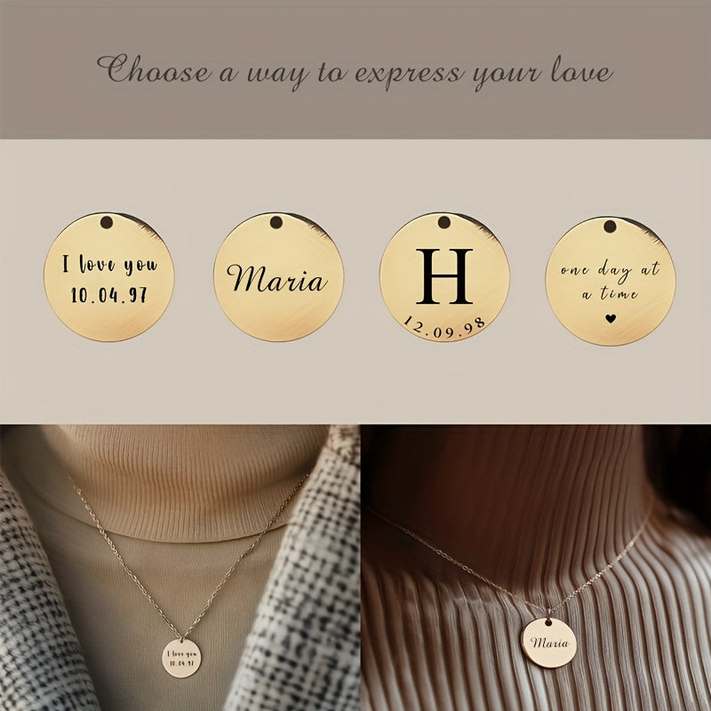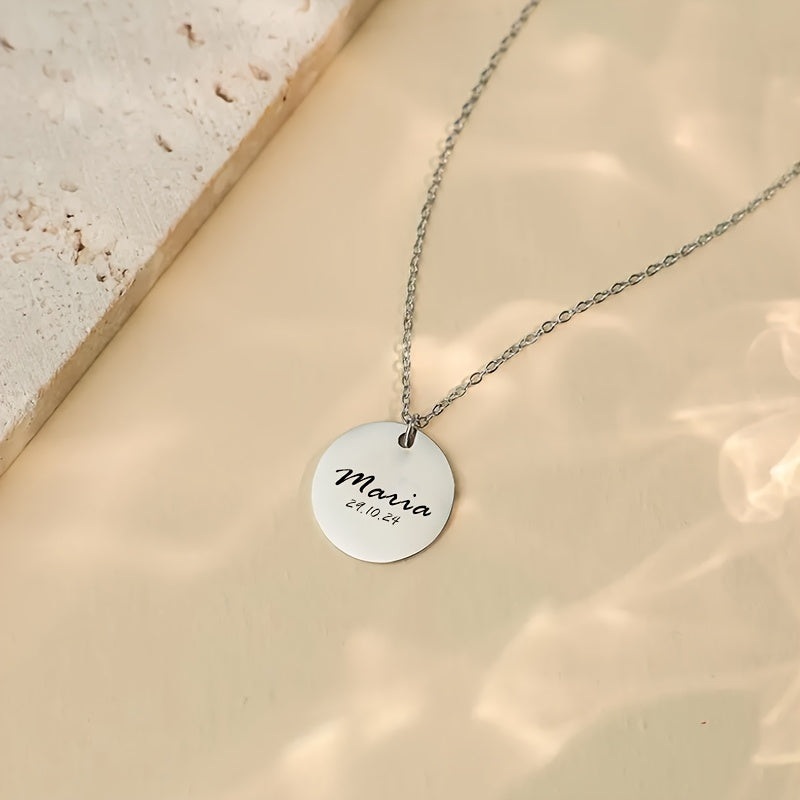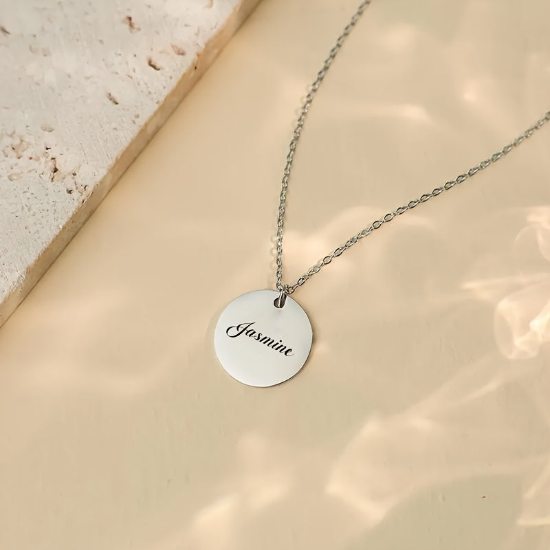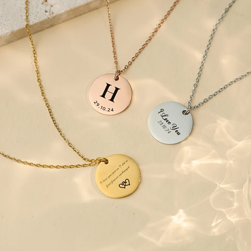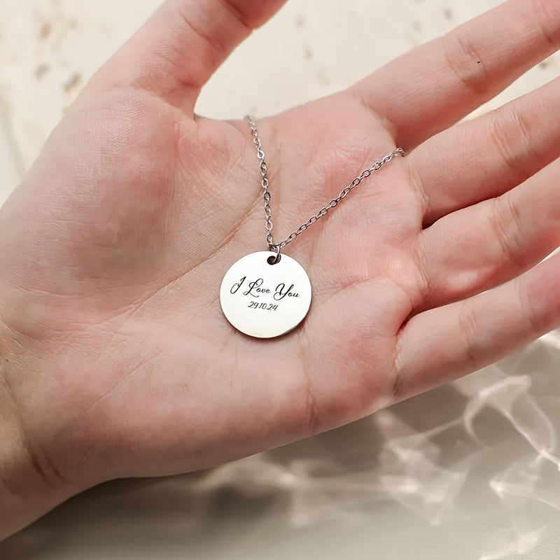 Elegant stainless steel necklace with custom engraving for a unique touch. Perfect for everyday wear or as a thoughtful gift for Christmas, Mother's Day, birthdays, and more.