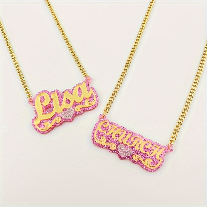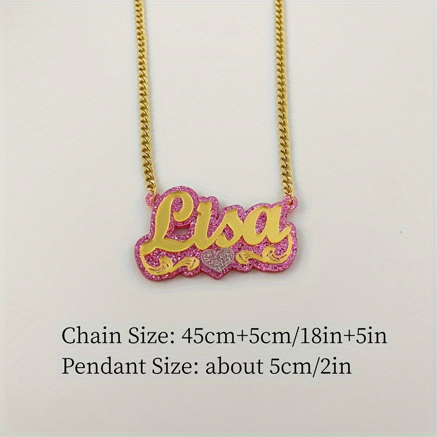 Personalized Acrylic Name Necklace with Heart Theme 18K Golden Plated