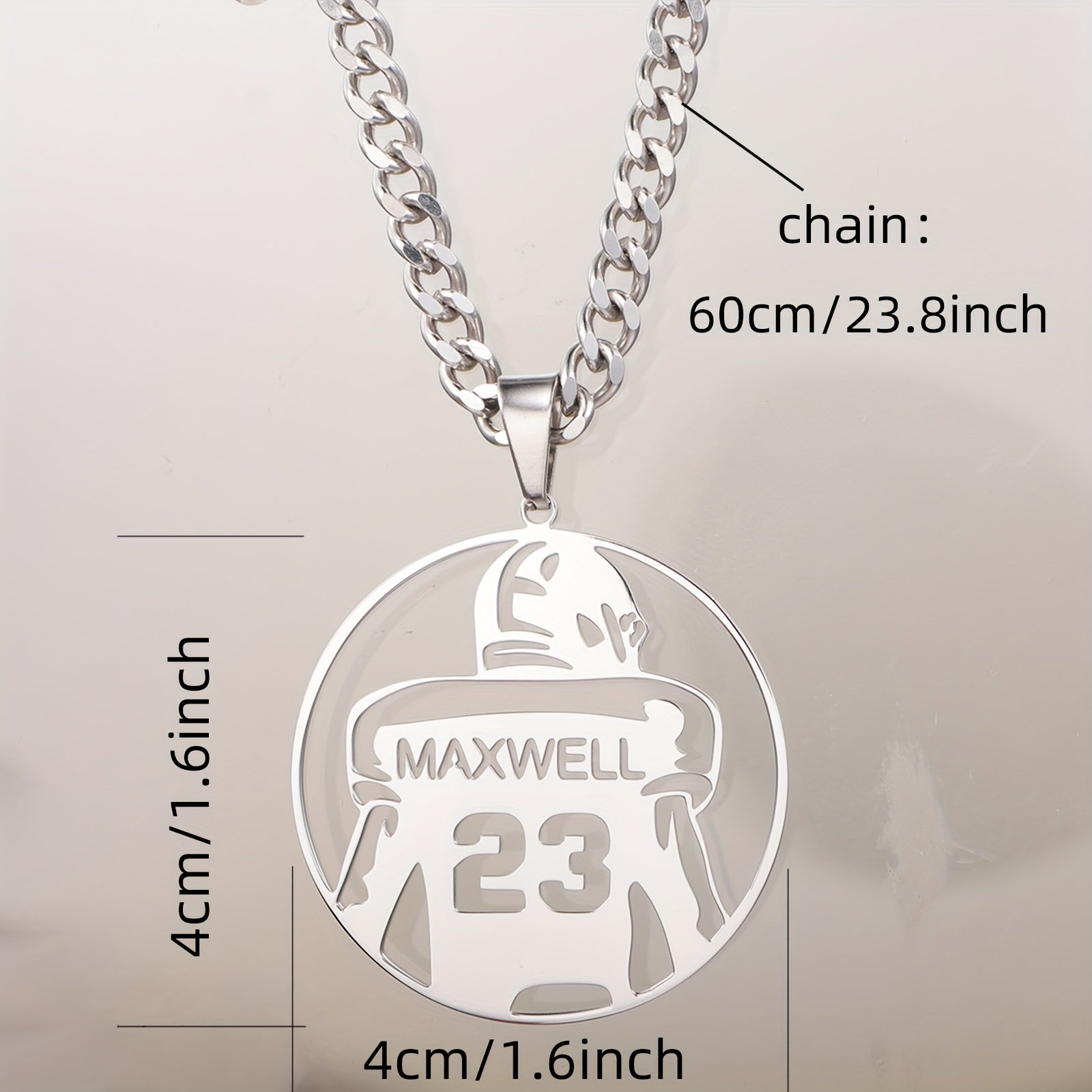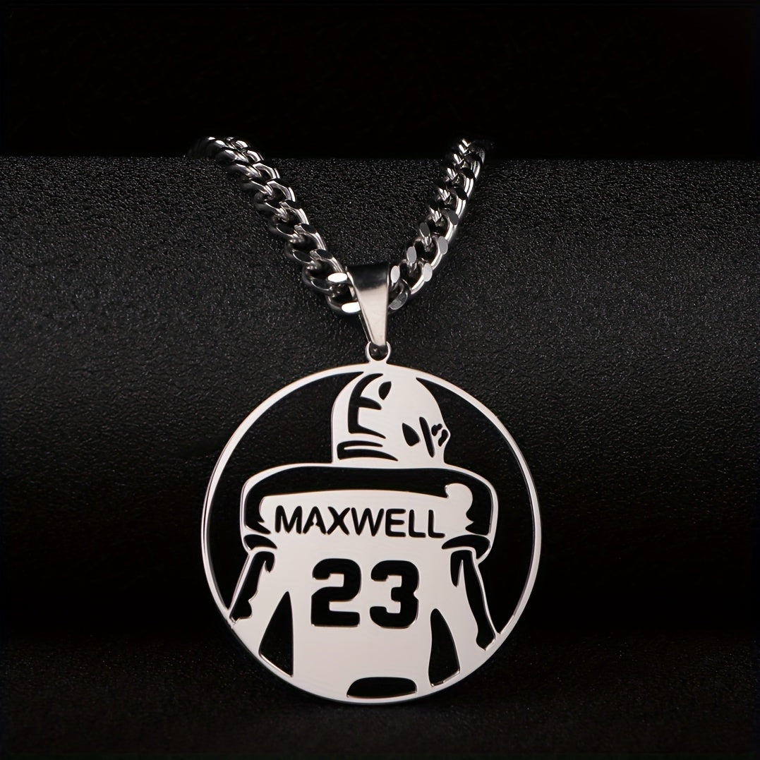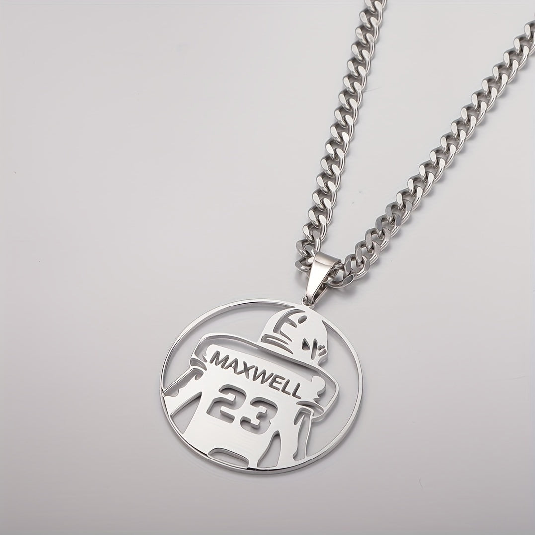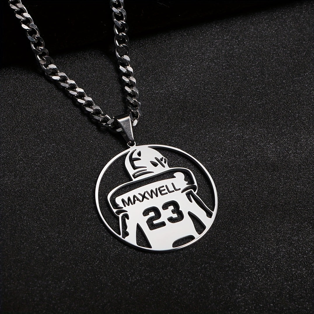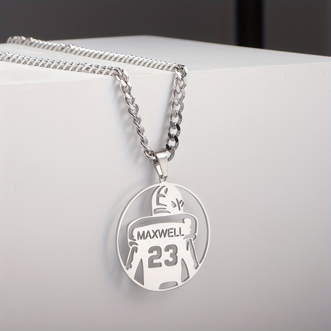 Celebrate your favorite football player with this personalized necklace featuring a hollow round pendant engraved with their name and number. Perfect for team members, fans, or as a graduation gift.