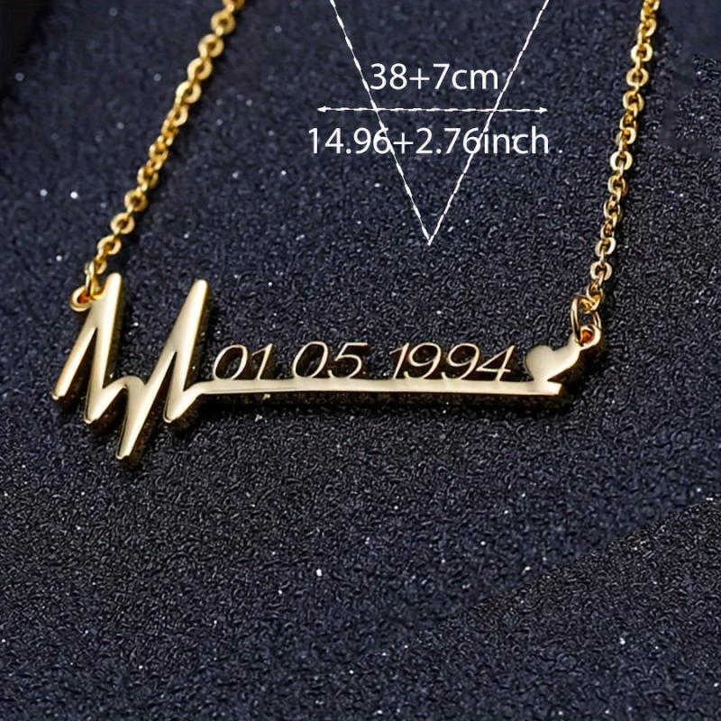 This custom stainless steel necklace features a unique heartbeat design with a personalized date and name. A perfect gift for your loved one.