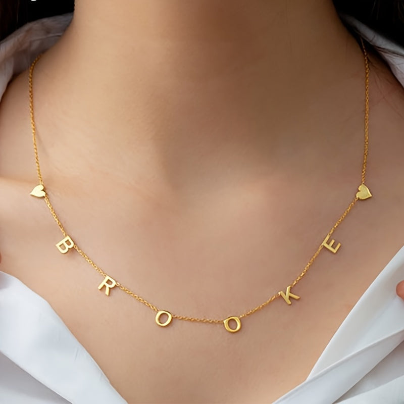 Create a unique and stylish look with this custom name necklace featuring a golden heart. Made of durable stainless steel, this necklace can be personalized with your chosen initial.