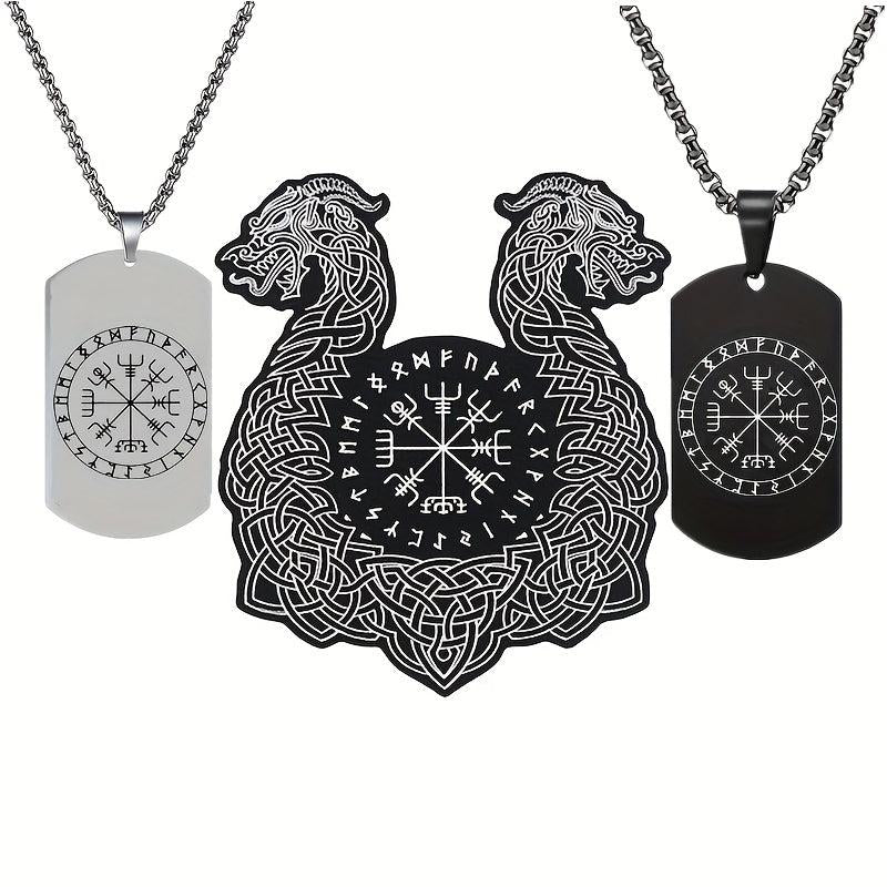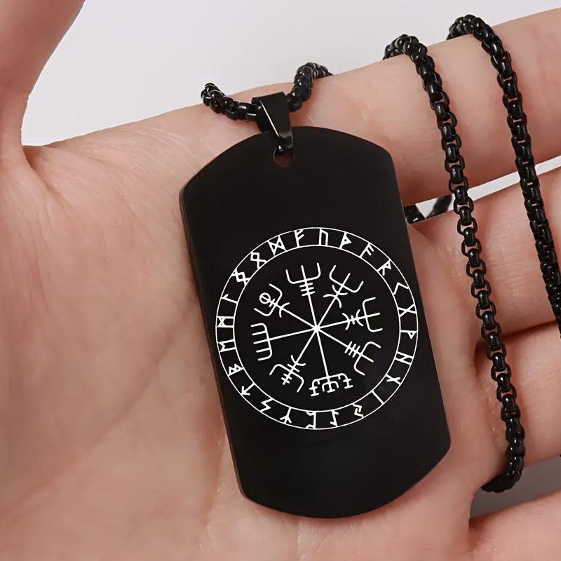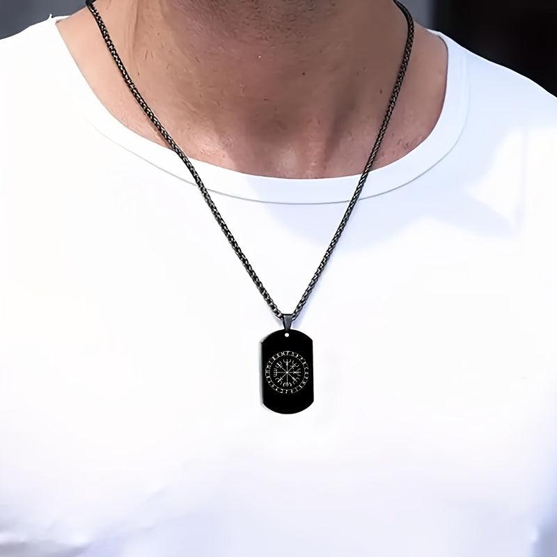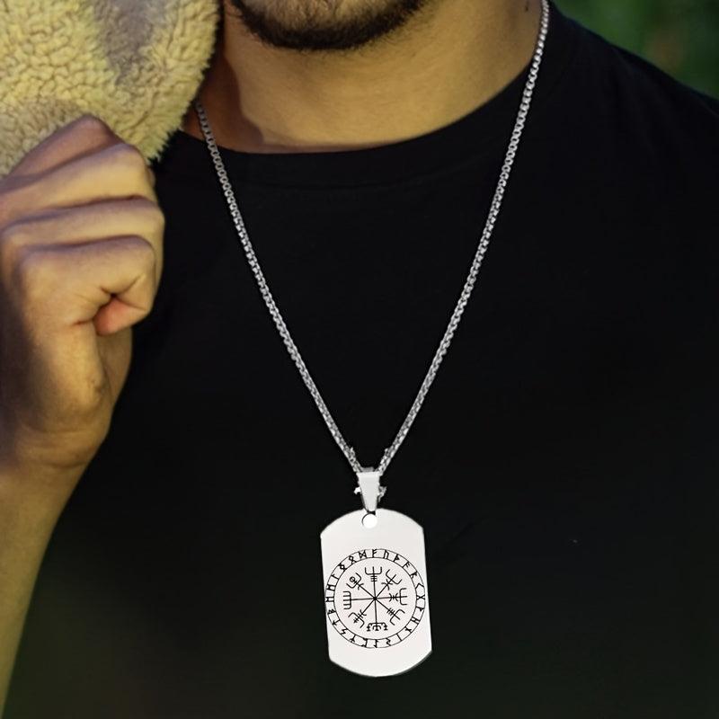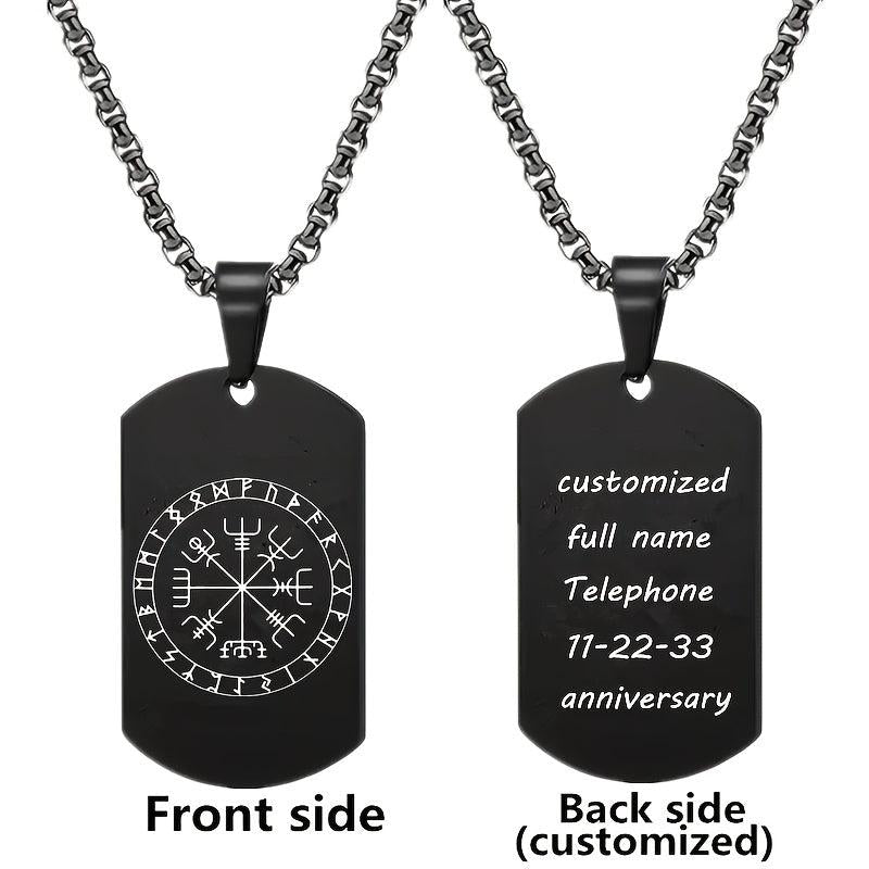 This necklace is a perfect gift for holidays and Christmas. It features a Nordic talisman pendant that can be custom engraved with a name or date. Made of stainless steel, this casual jewelry piece is stylish and meaningful.