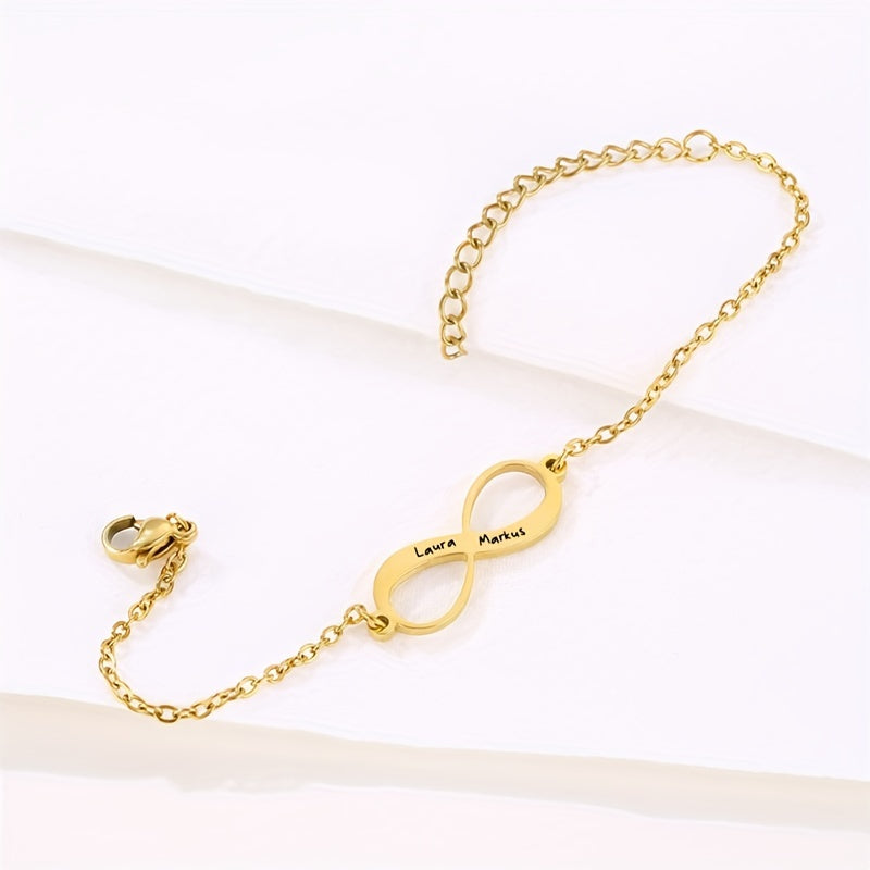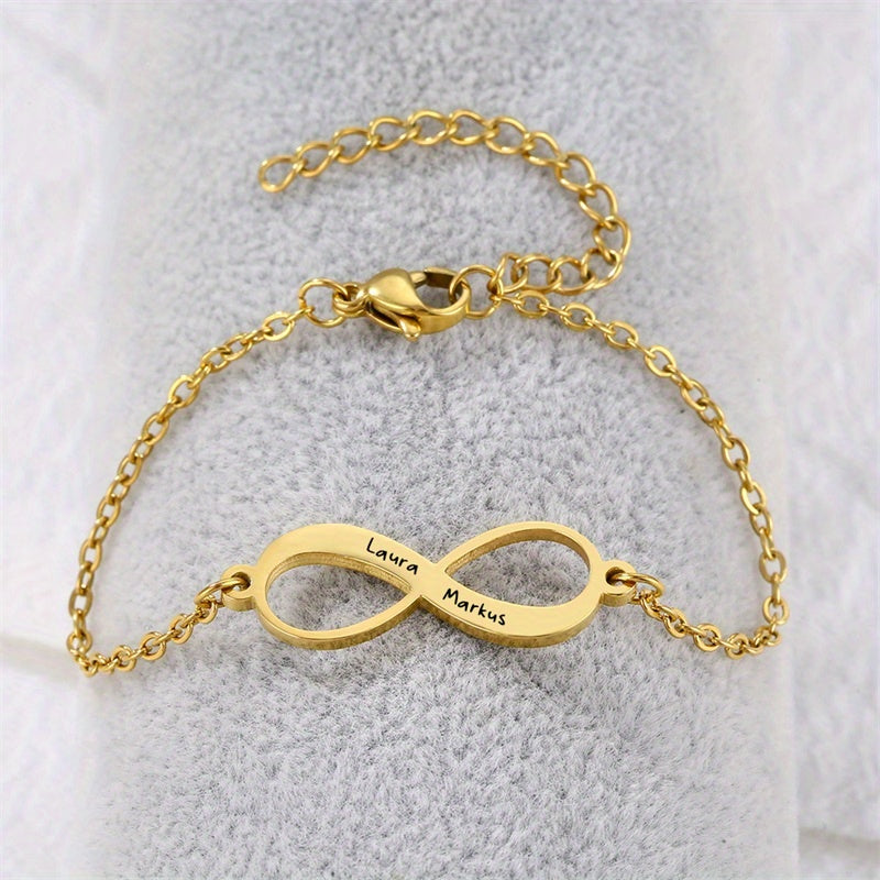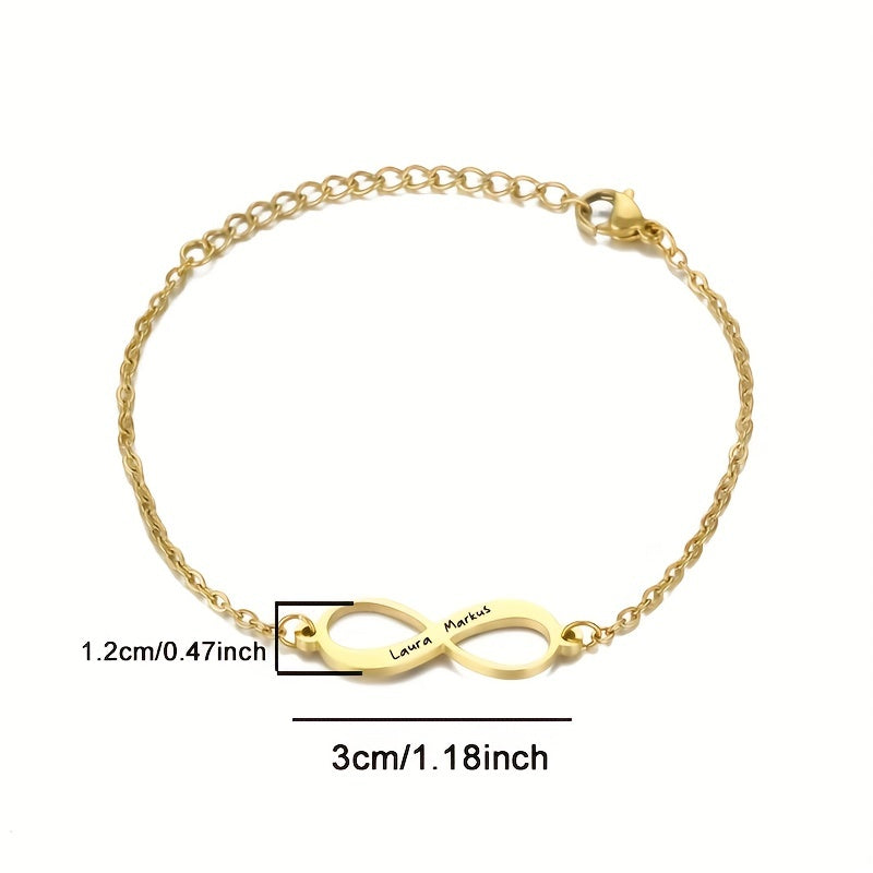 This bracelet is a perfect promise gift for her with a customized name engraving. Made of high-quality stainless steel, it exudes elegance and charm.